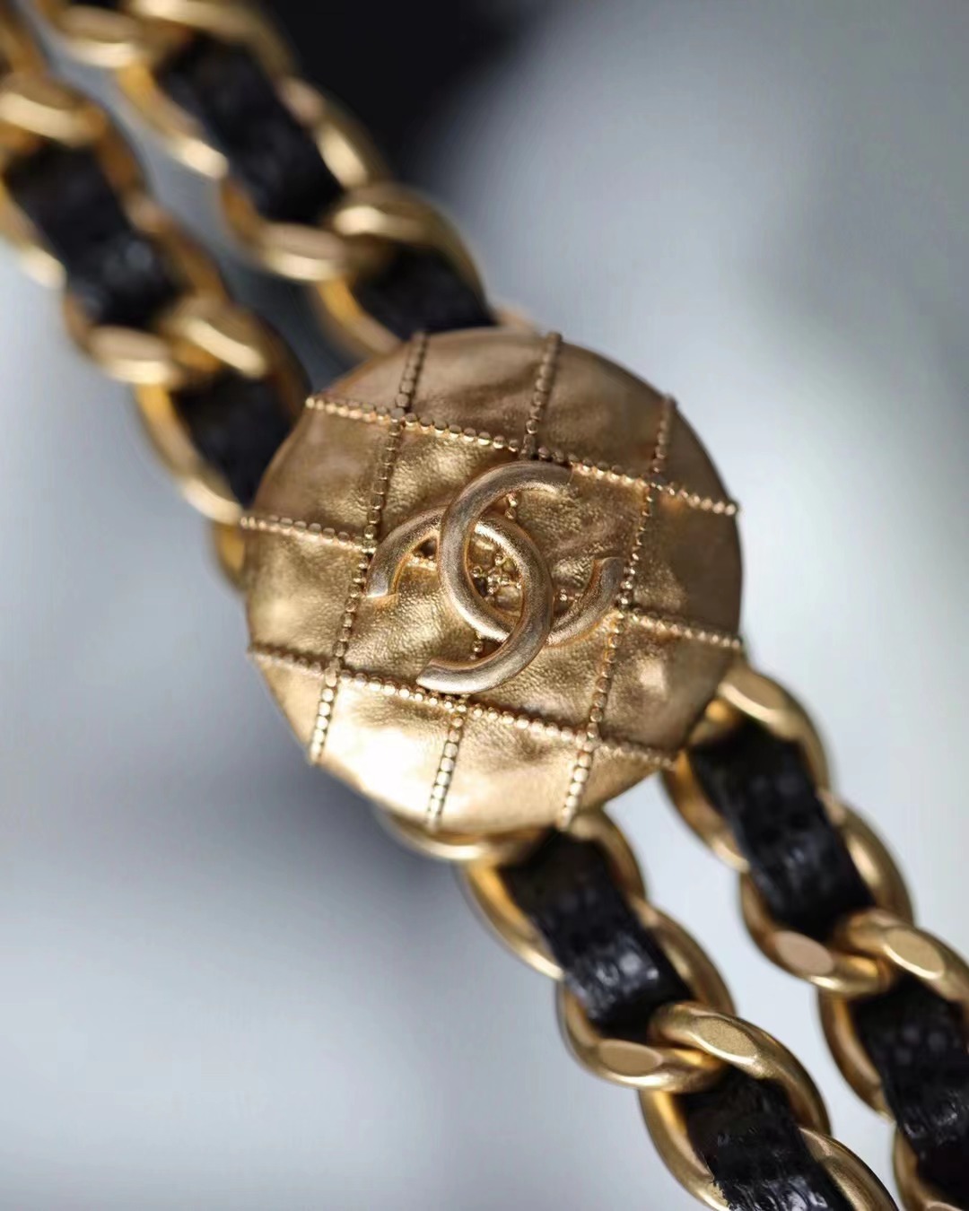 • CHANEL 22 gold coin chain mini bucket bag badge Calfskin & Gold-Tone Metal black