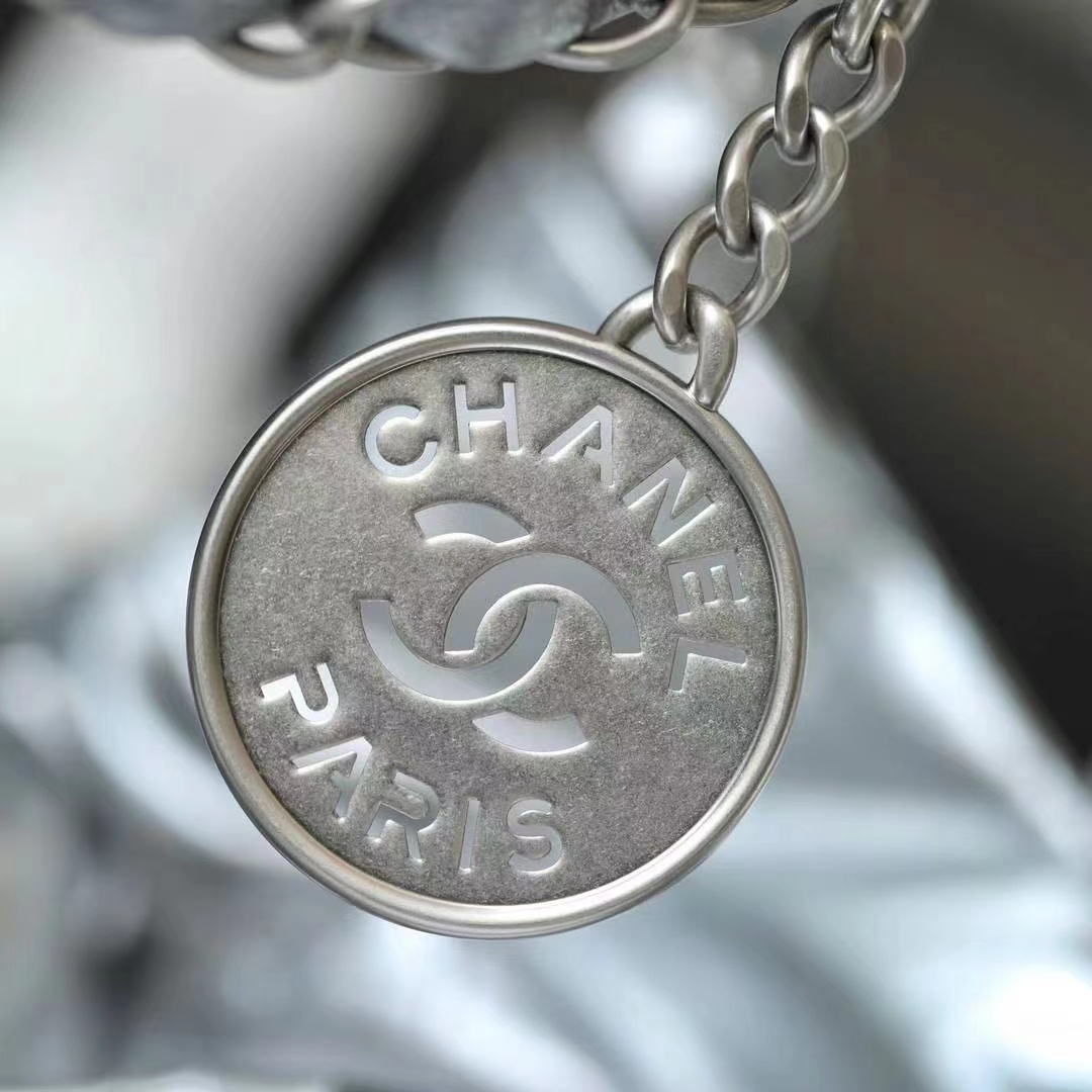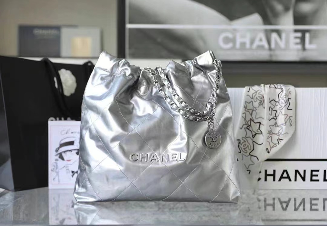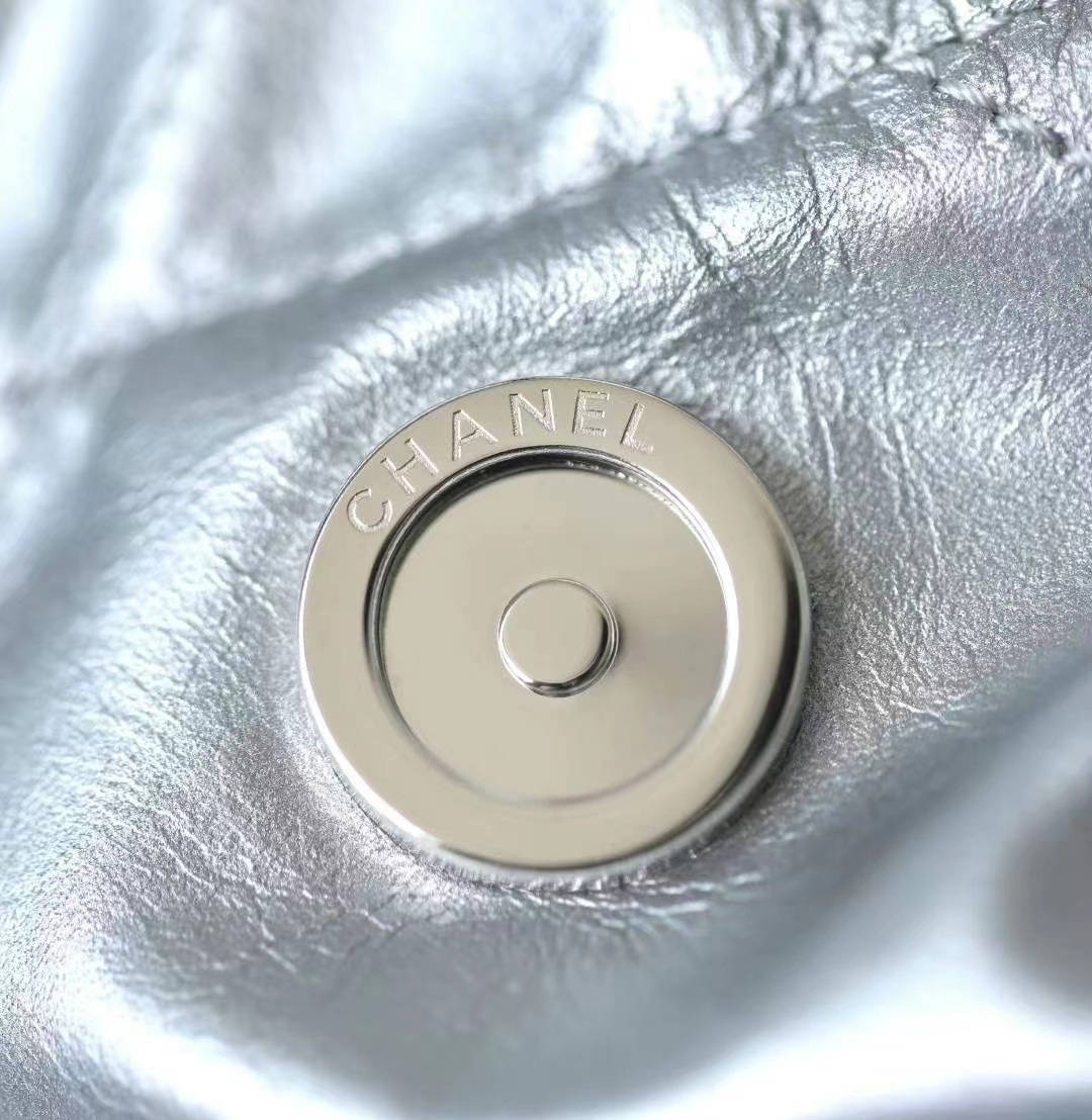 CHANEL 22 Handbag Metallic Calfskin & Silver-Tone Metal Silver 42CM