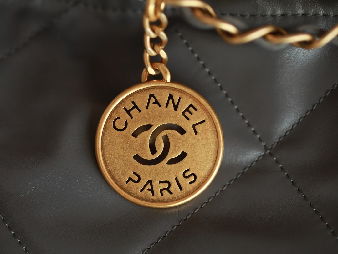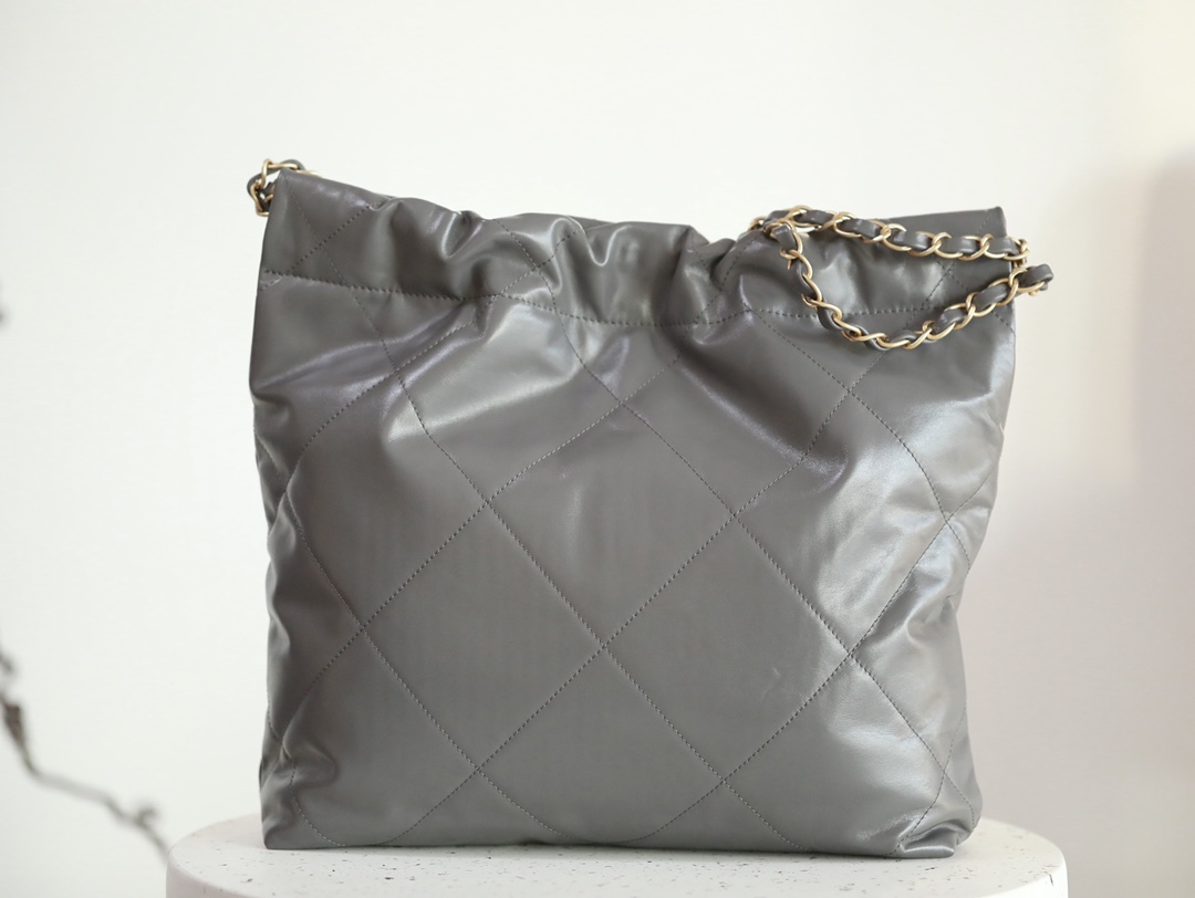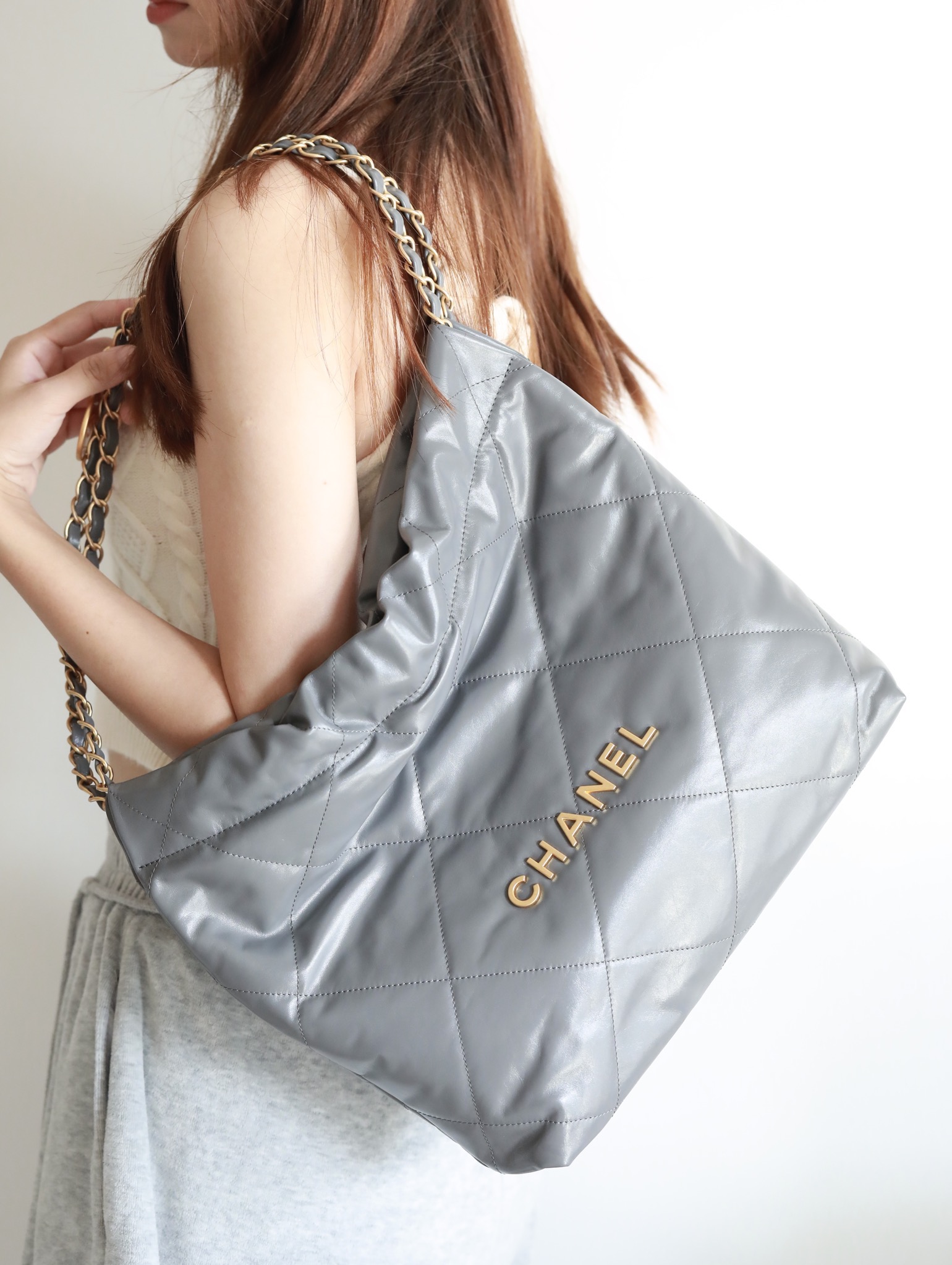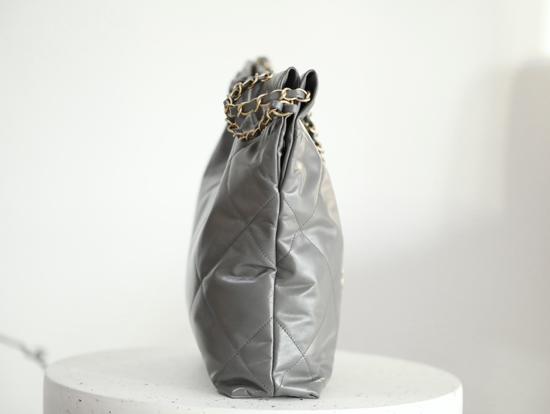 CHANEL 22 Handbag Shiny Calfskin & Gold-Tone Metal Advanced gray