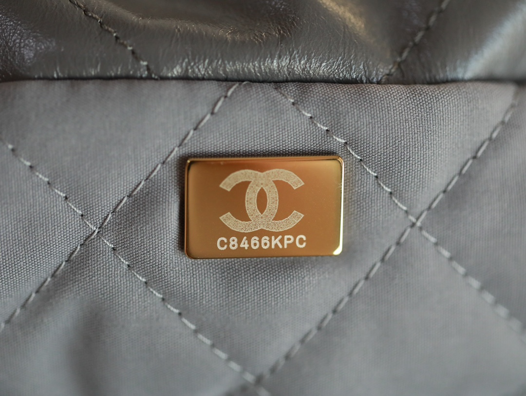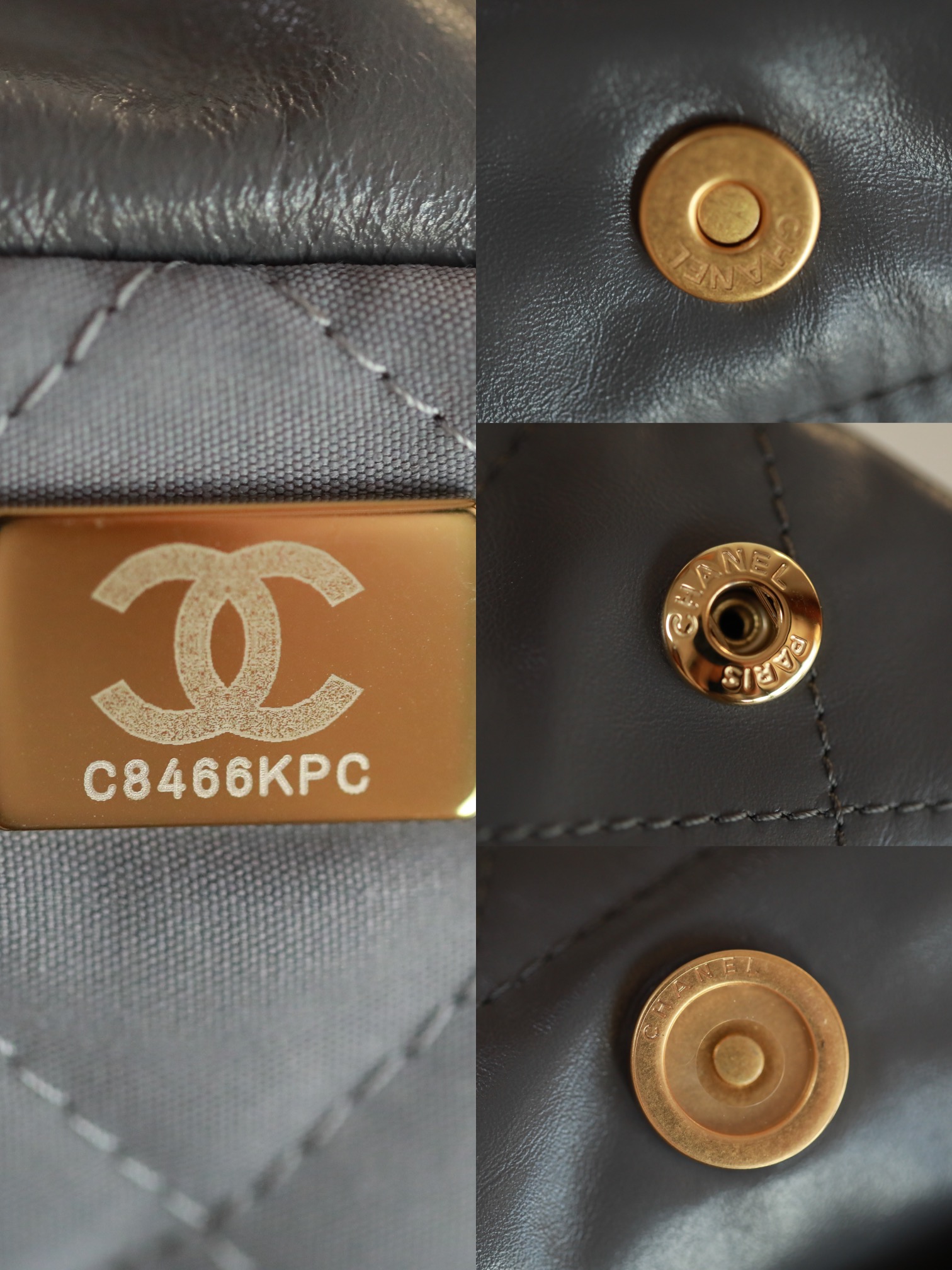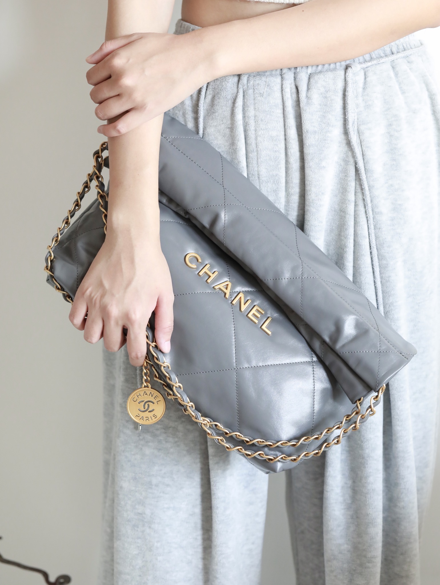 • CHANEL 22 Handbag Shiny Calfskin & Gold-Tone Metal Advanced gray