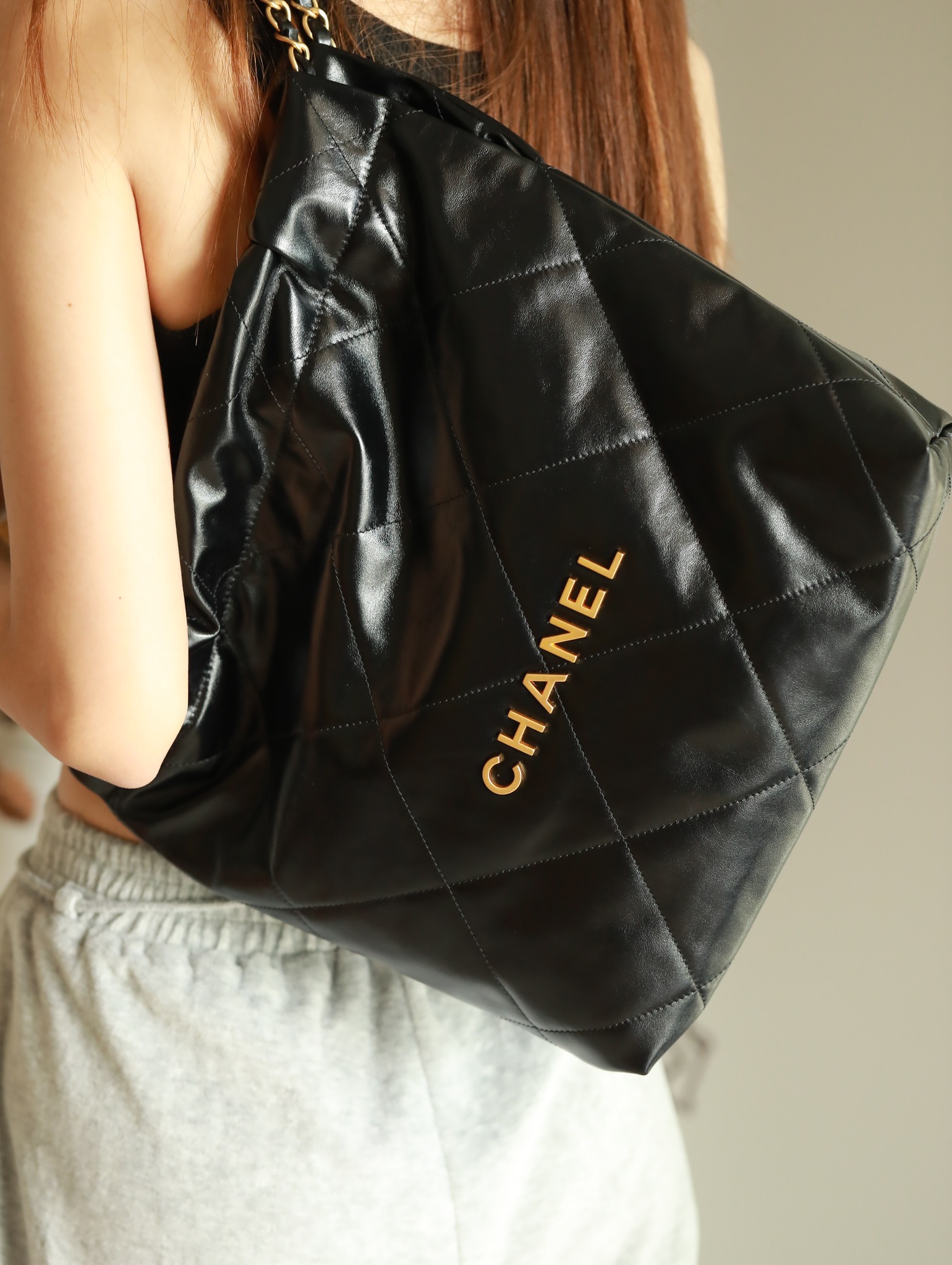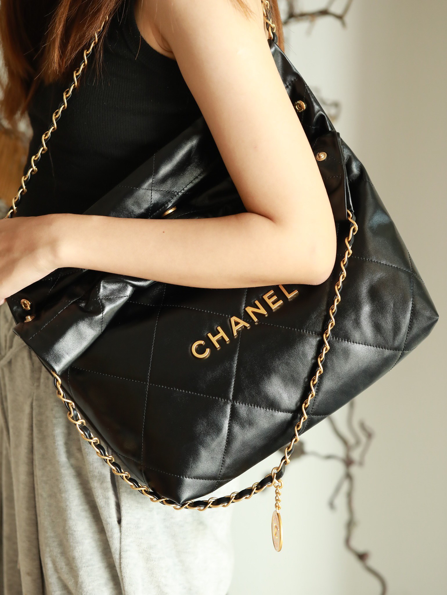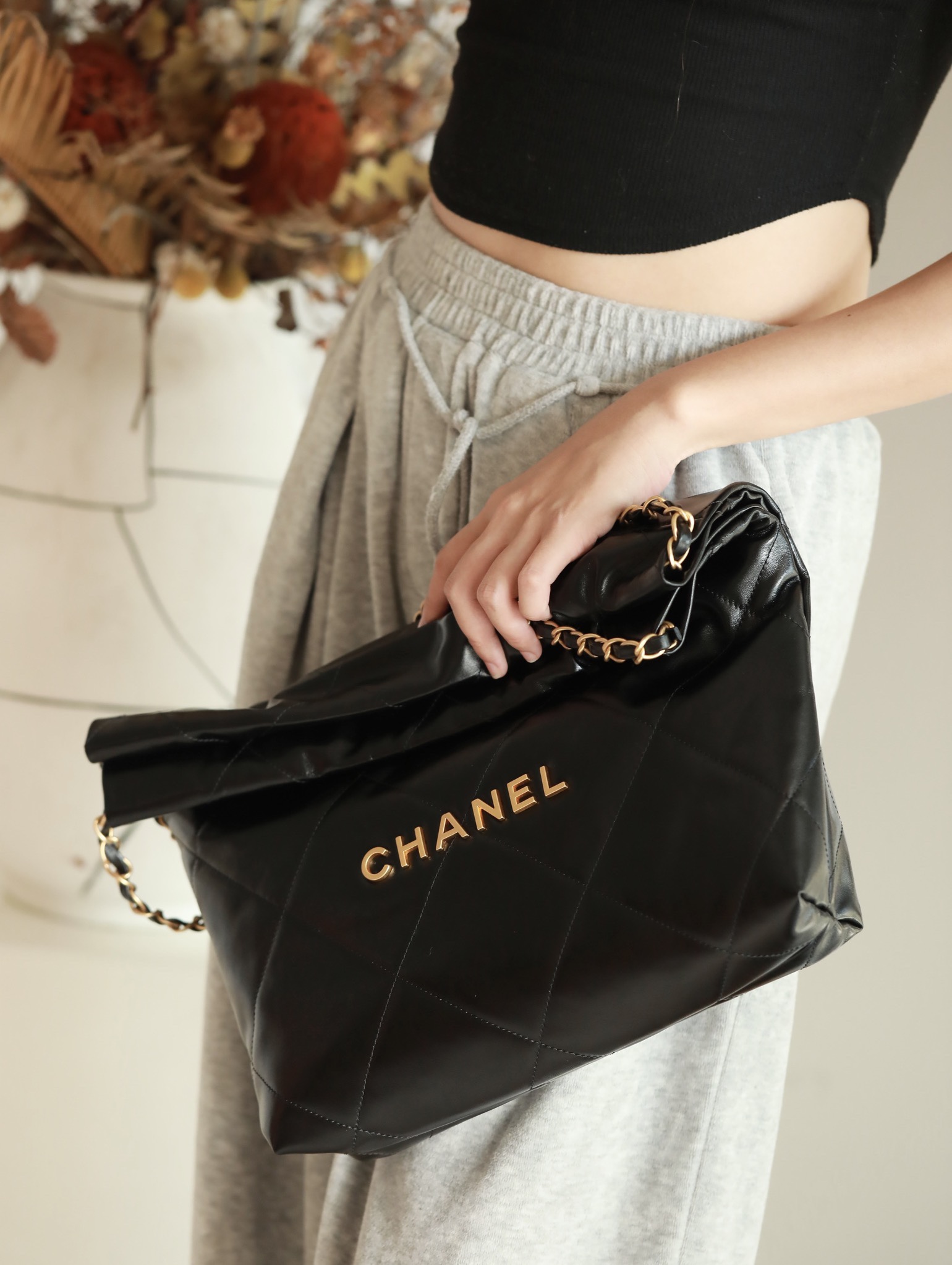 CHANEL 22 Handbag Shiny Calfskin & Gold-Tone Metal Black & White