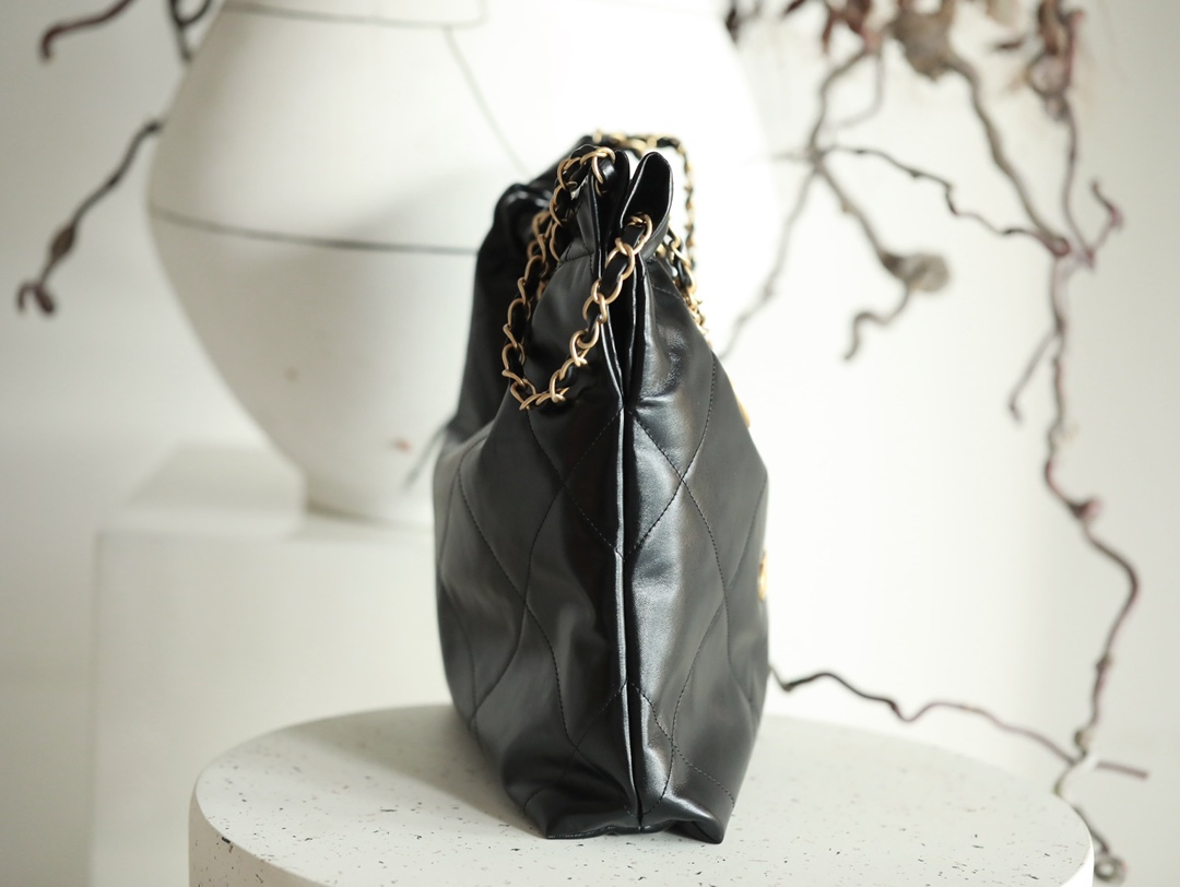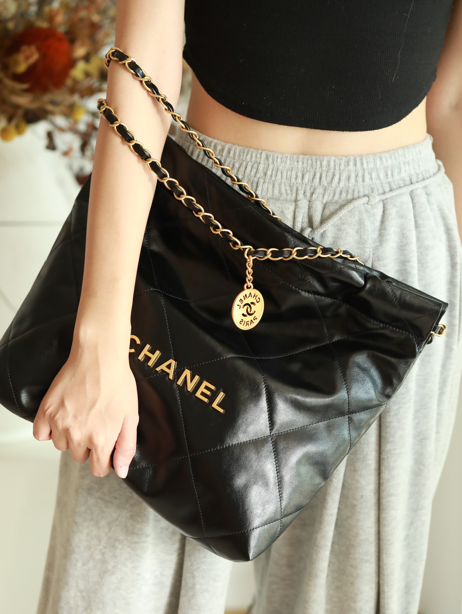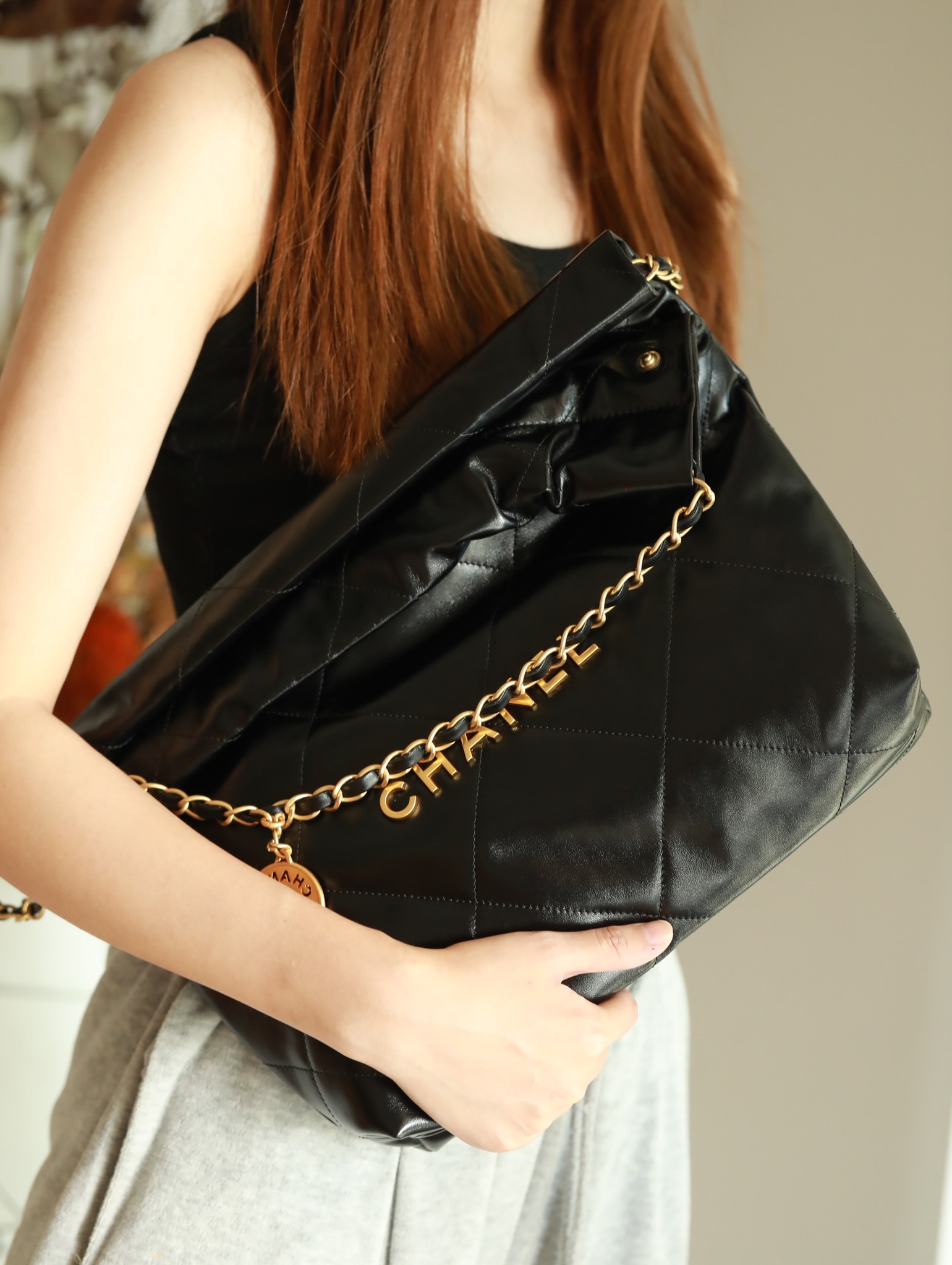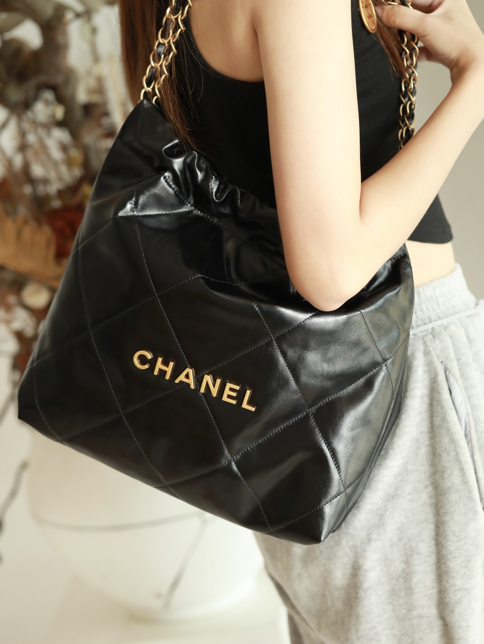 CHANEL 22 Handbag Shiny Calfskin & Gold-Tone Metal Black & White
