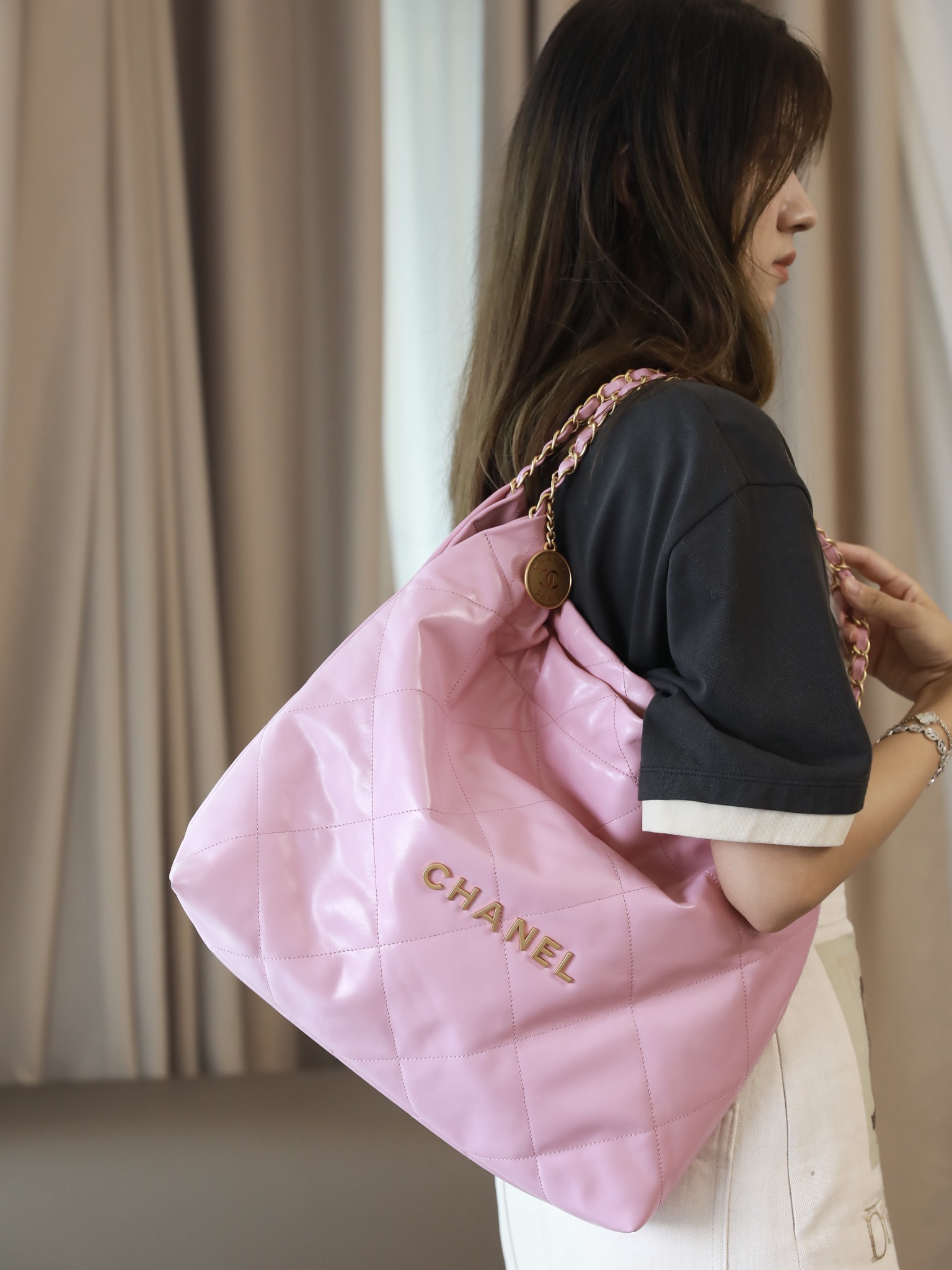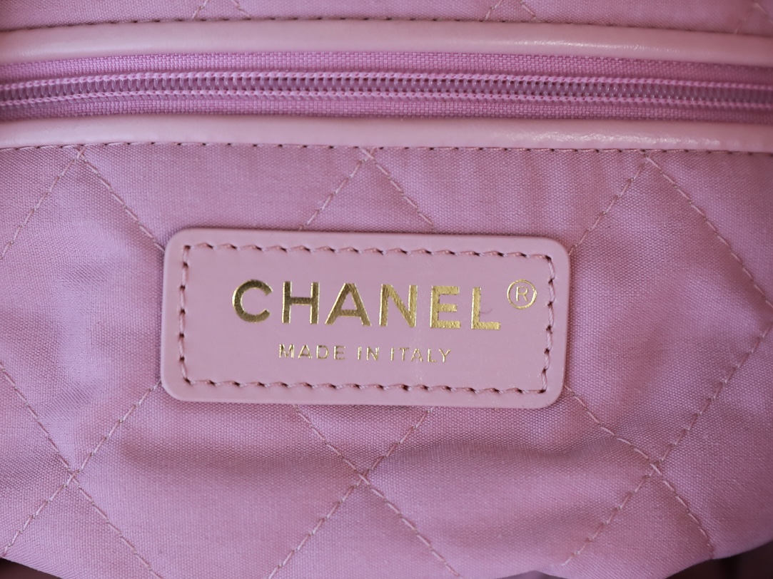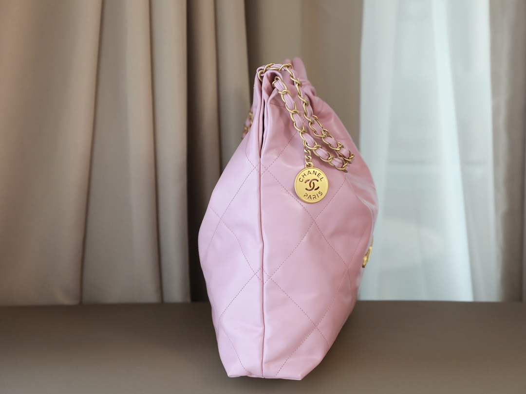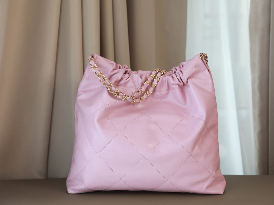 • CHANEL 22 Handbag Shiny Calfskin & Gold-Tone Metal pink