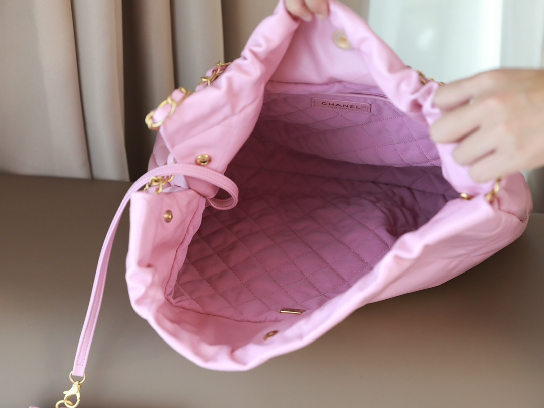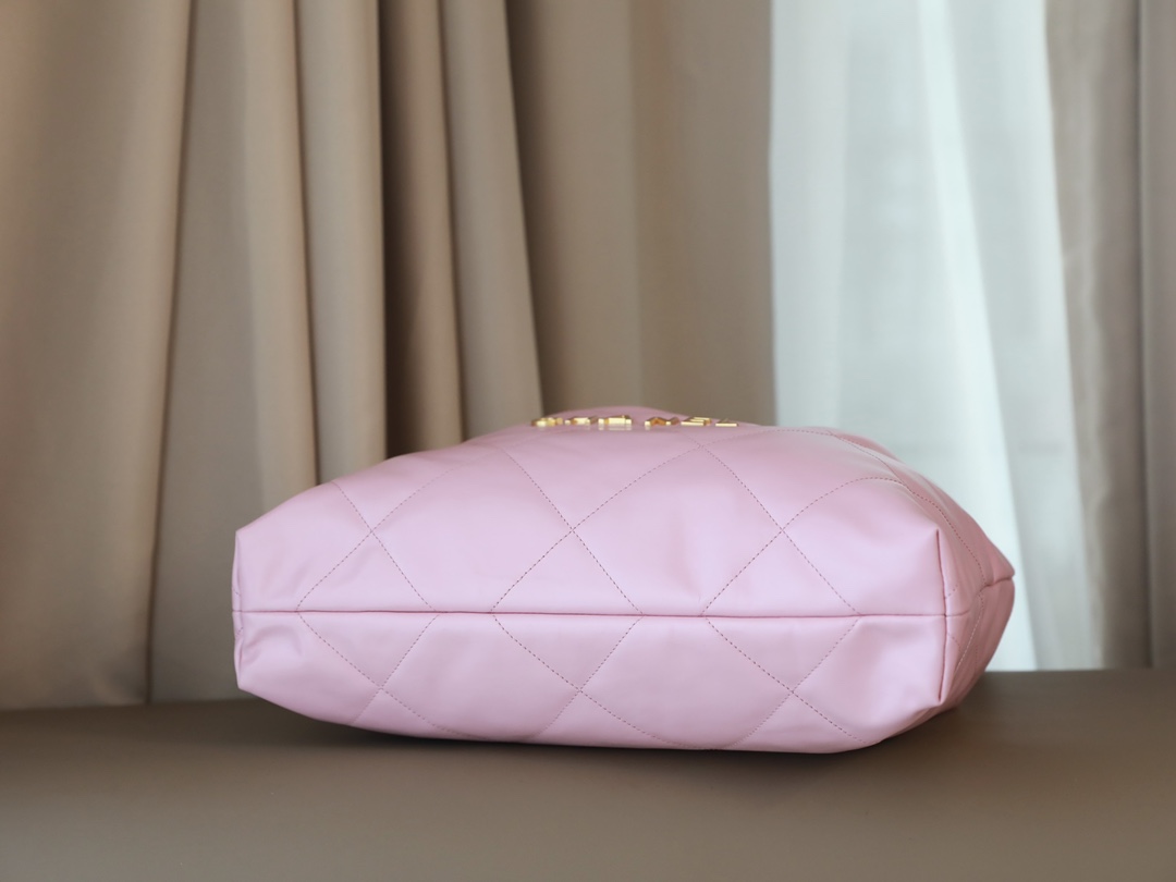 CHANEL 22 Handbag Shiny Calfskin & Gold-Tone Metal pink