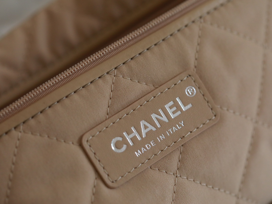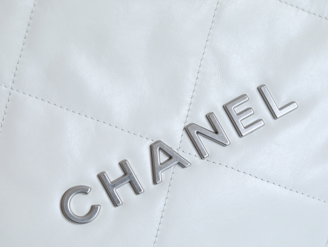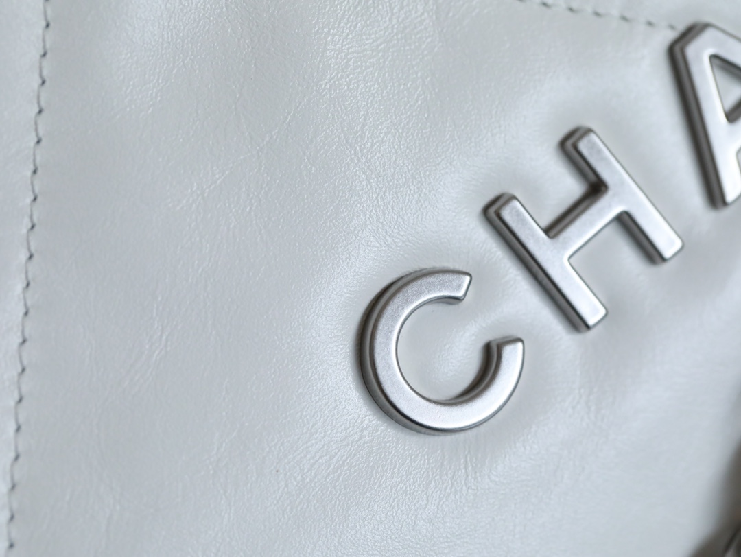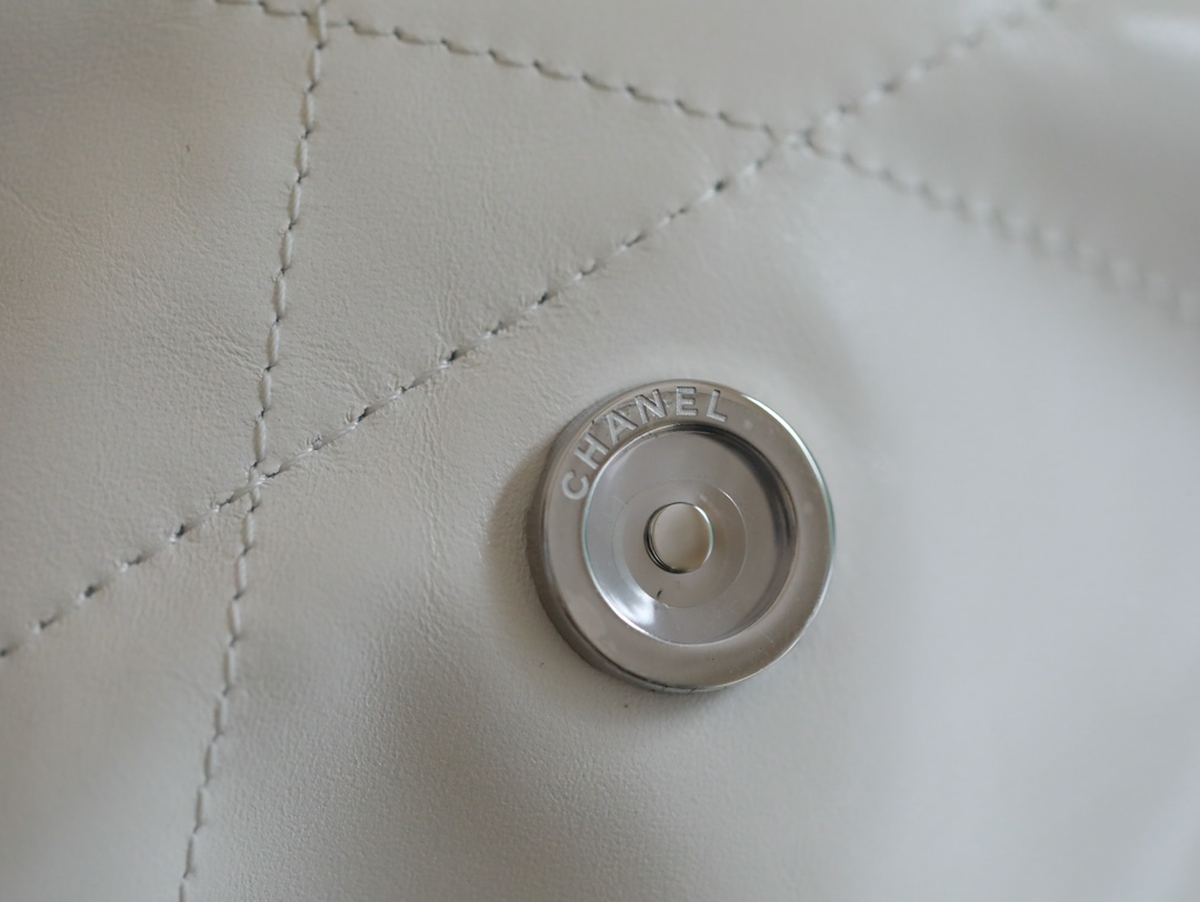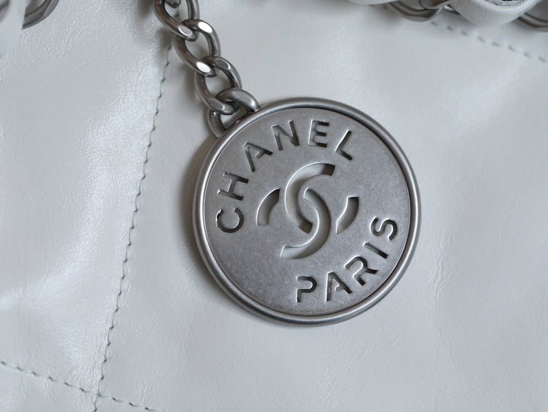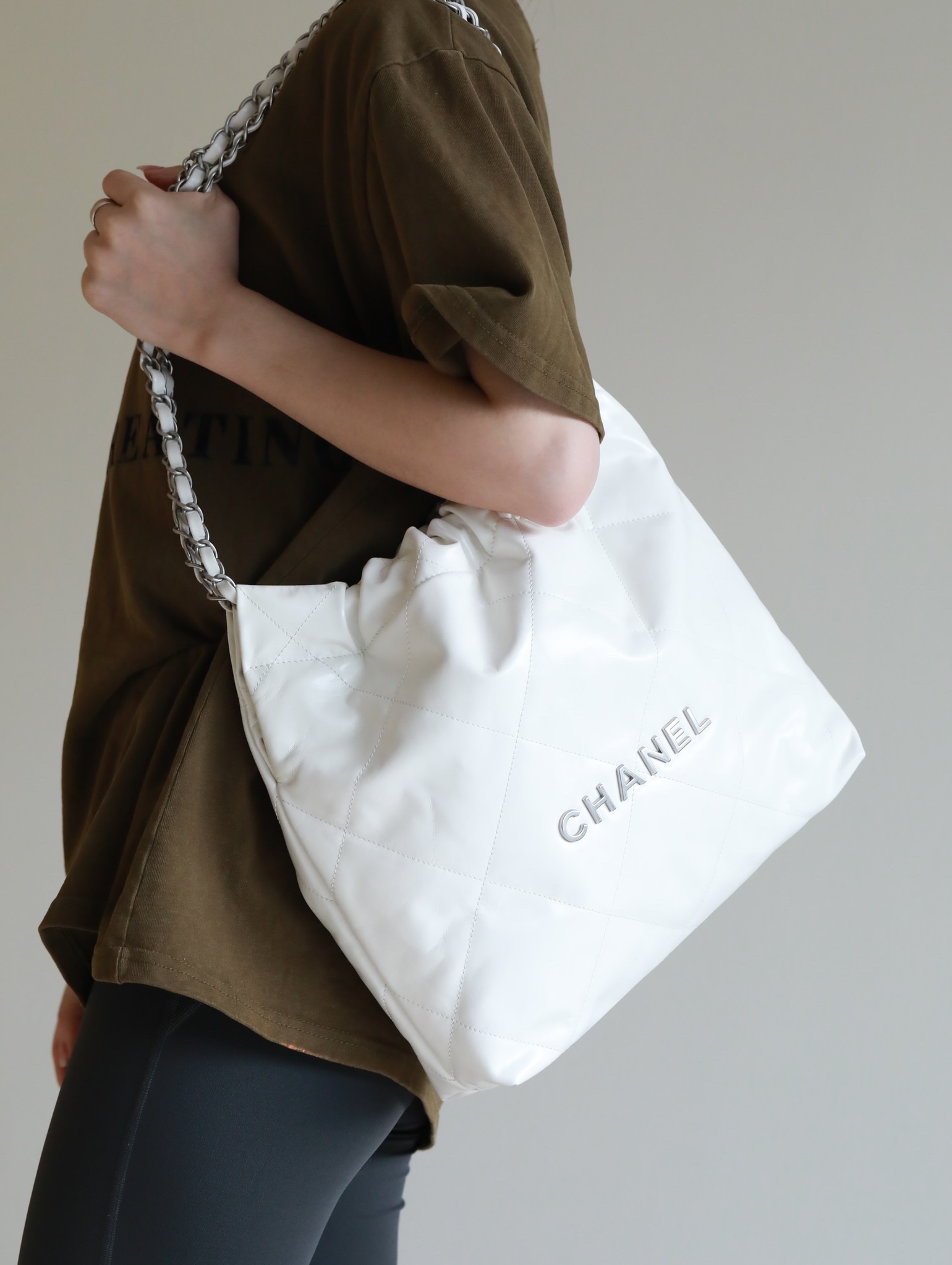 CHANEL 22 Handbag Shiny Calfskin & silver buckle Metal White