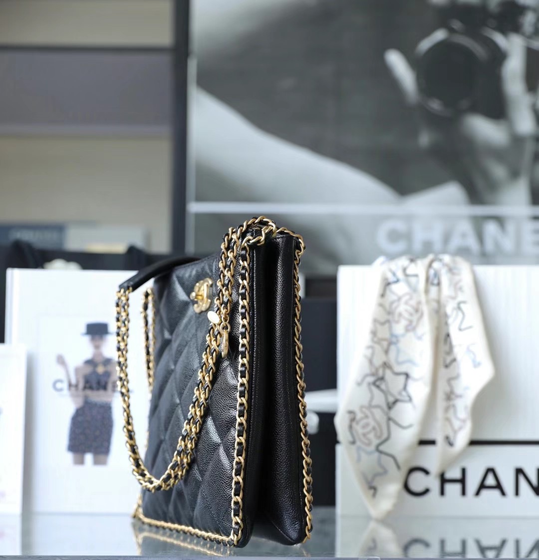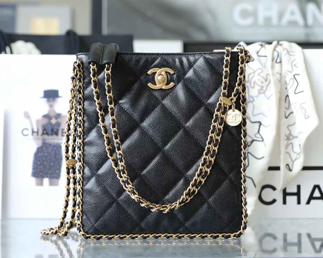 CHANEL 22 Shopping Bag Grained Calfskin & Gold-Tone Metal Black