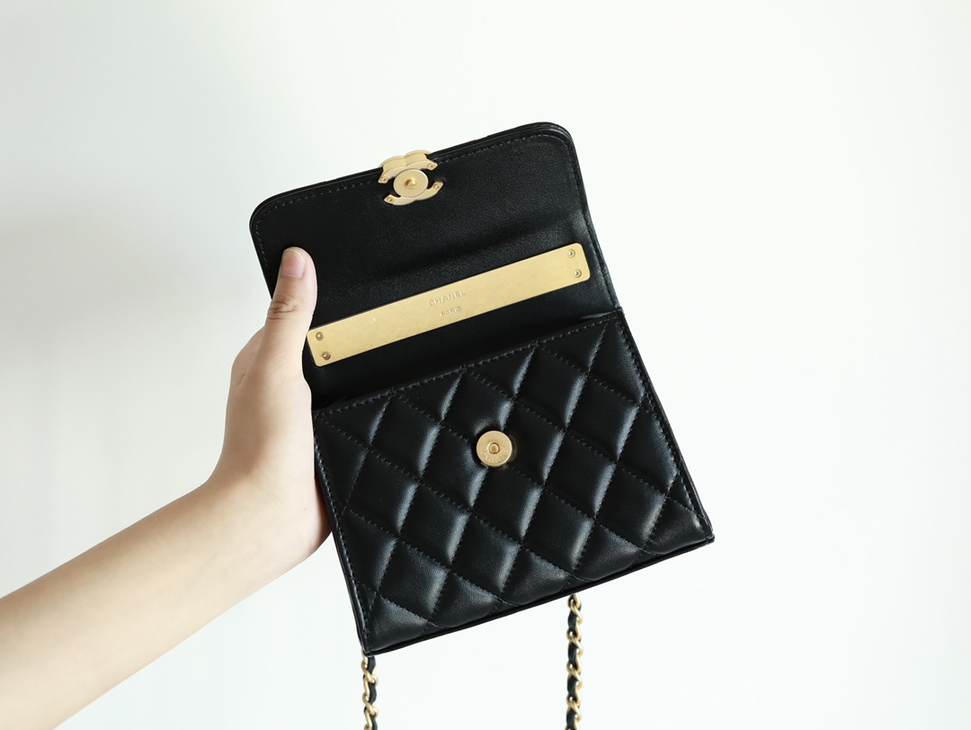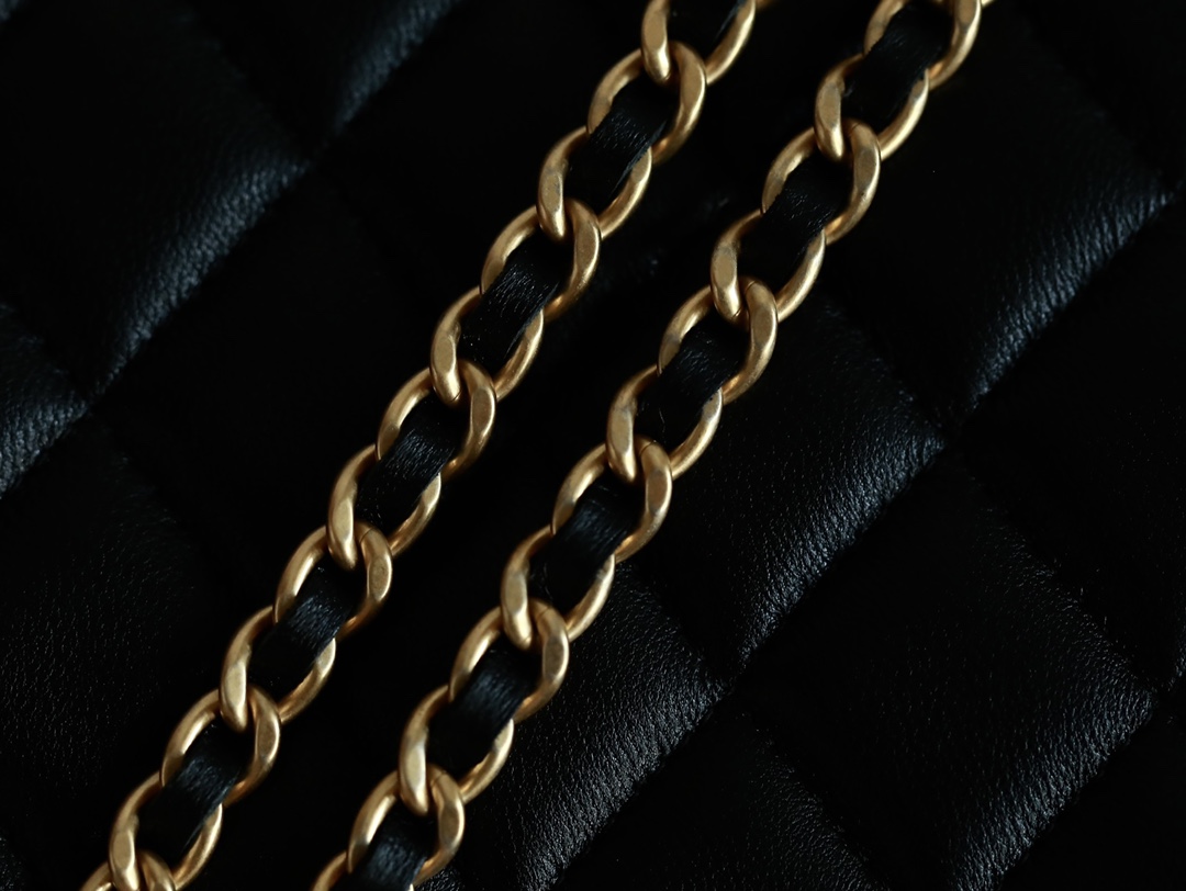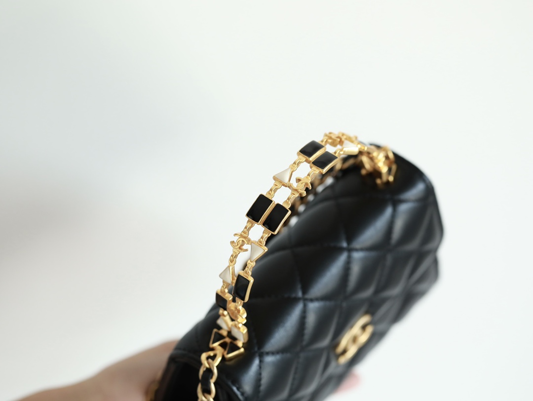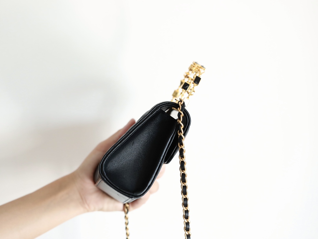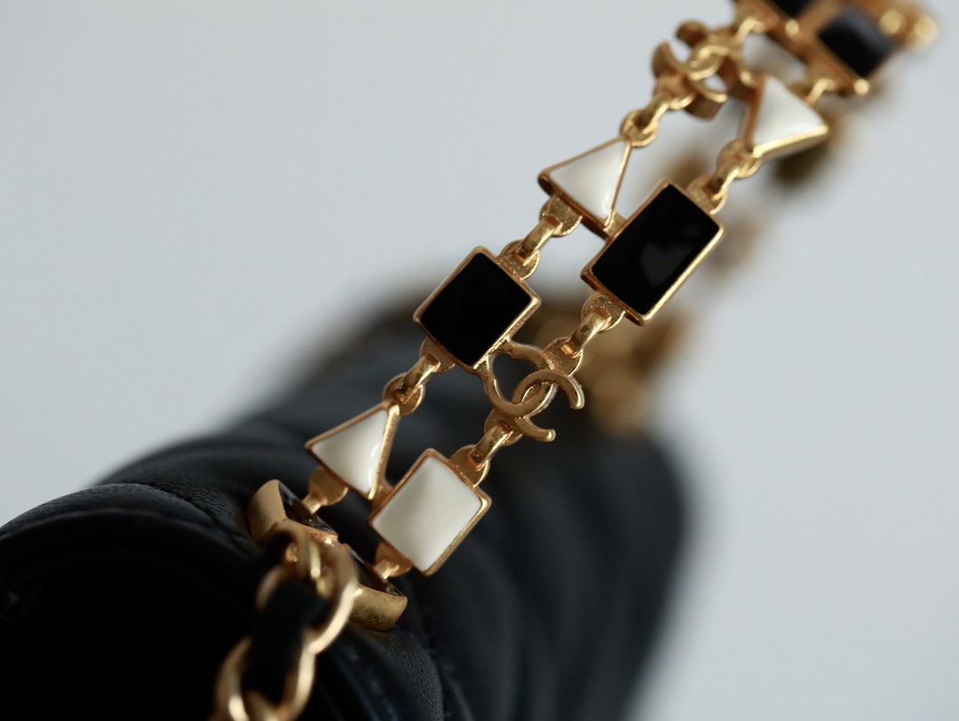 • CHANEL 22B Enamel buckle Kelly Medium Black Chain bag