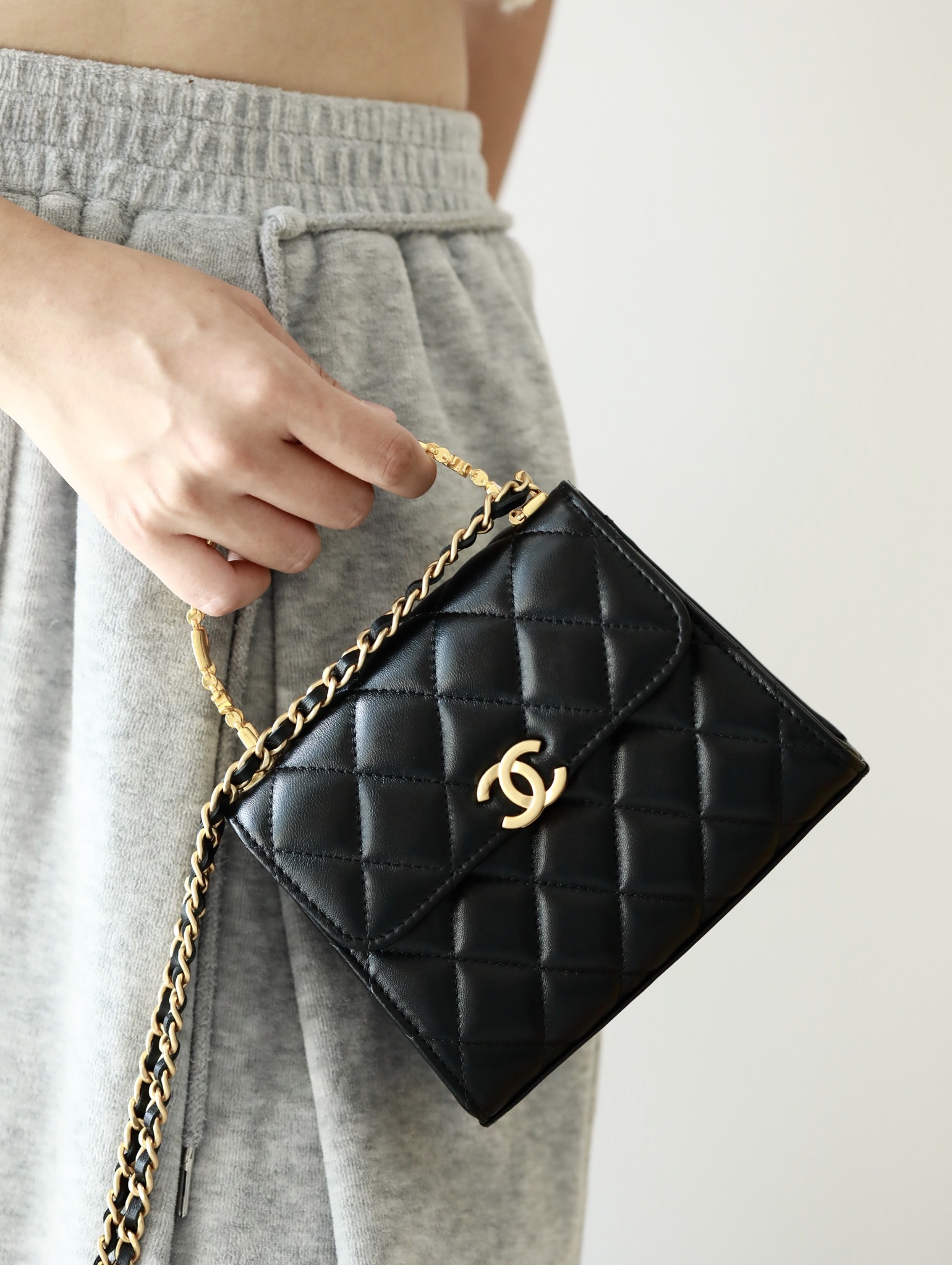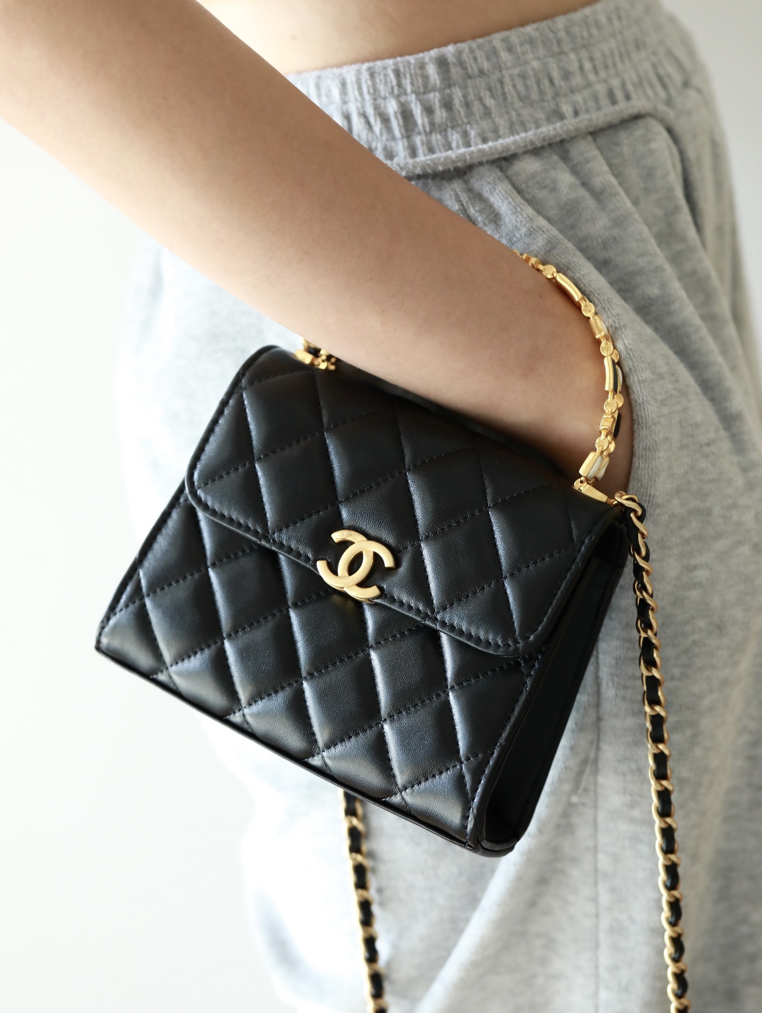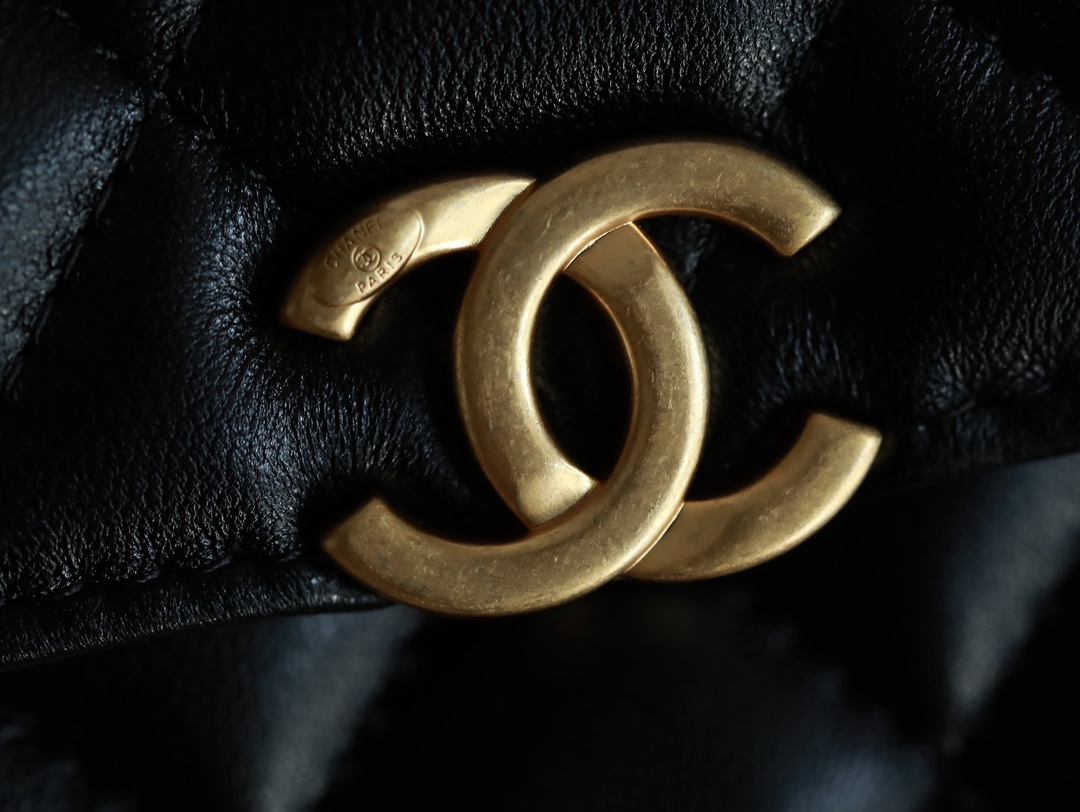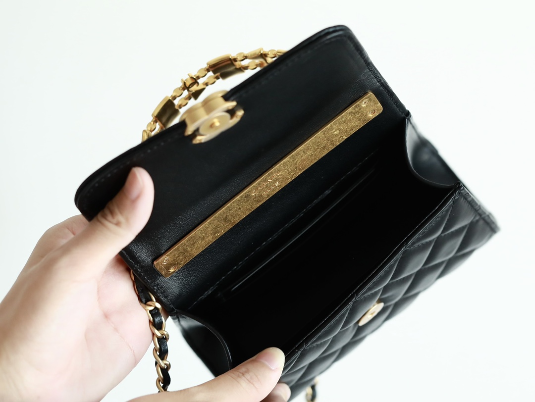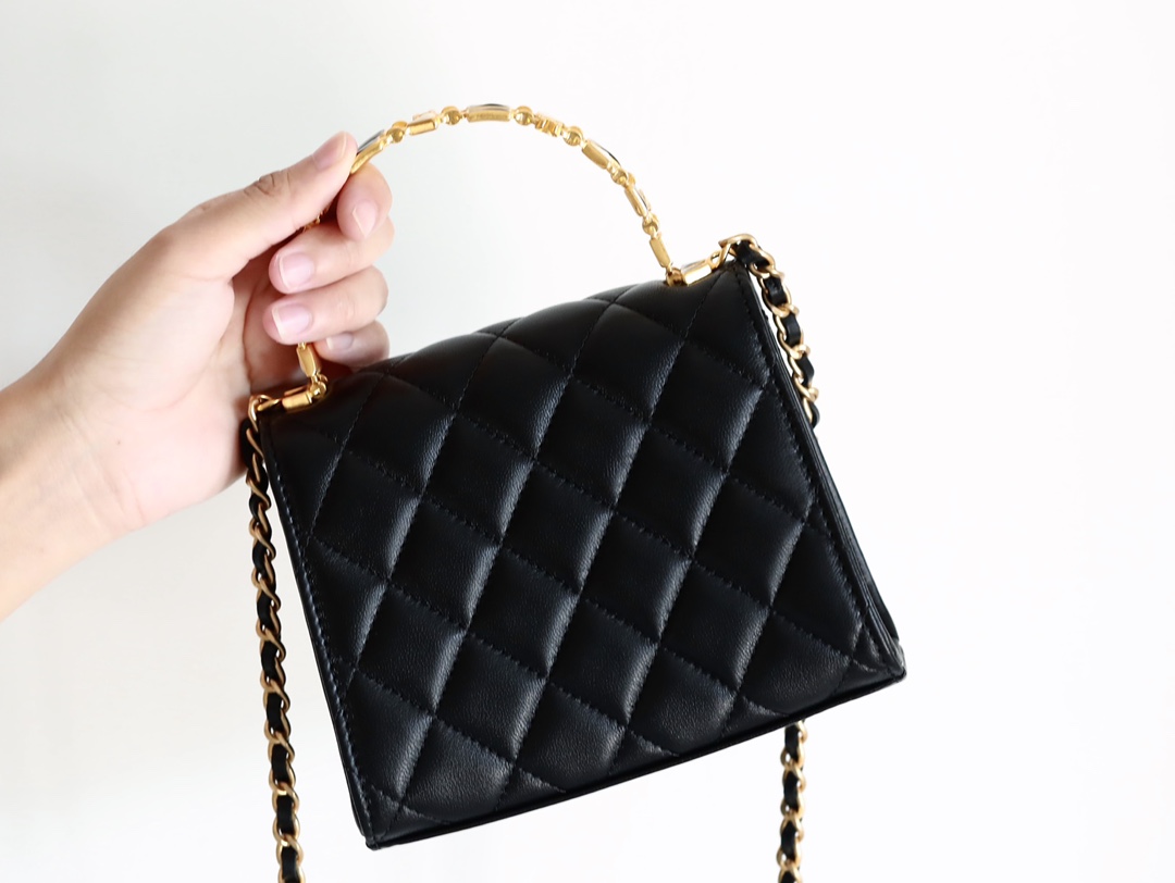 • CHANEL 22B Enamel buckle Kelly Medium Black Chain bag