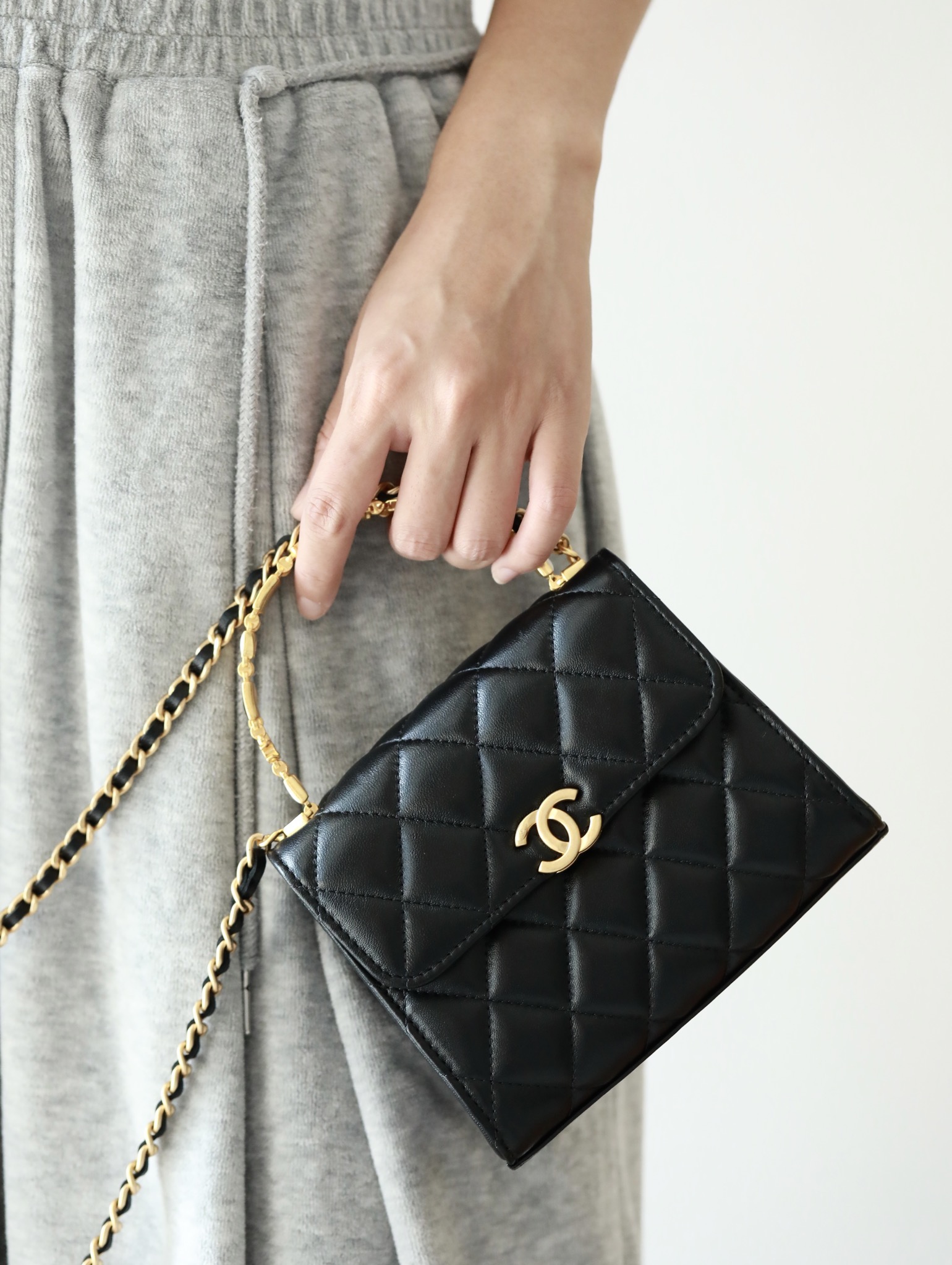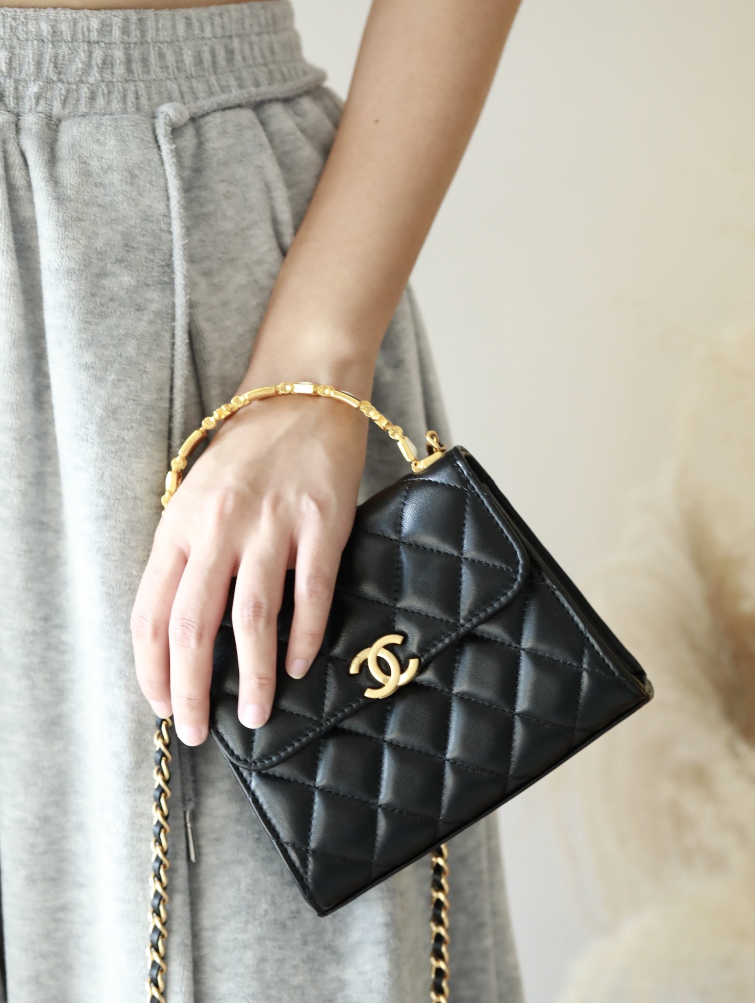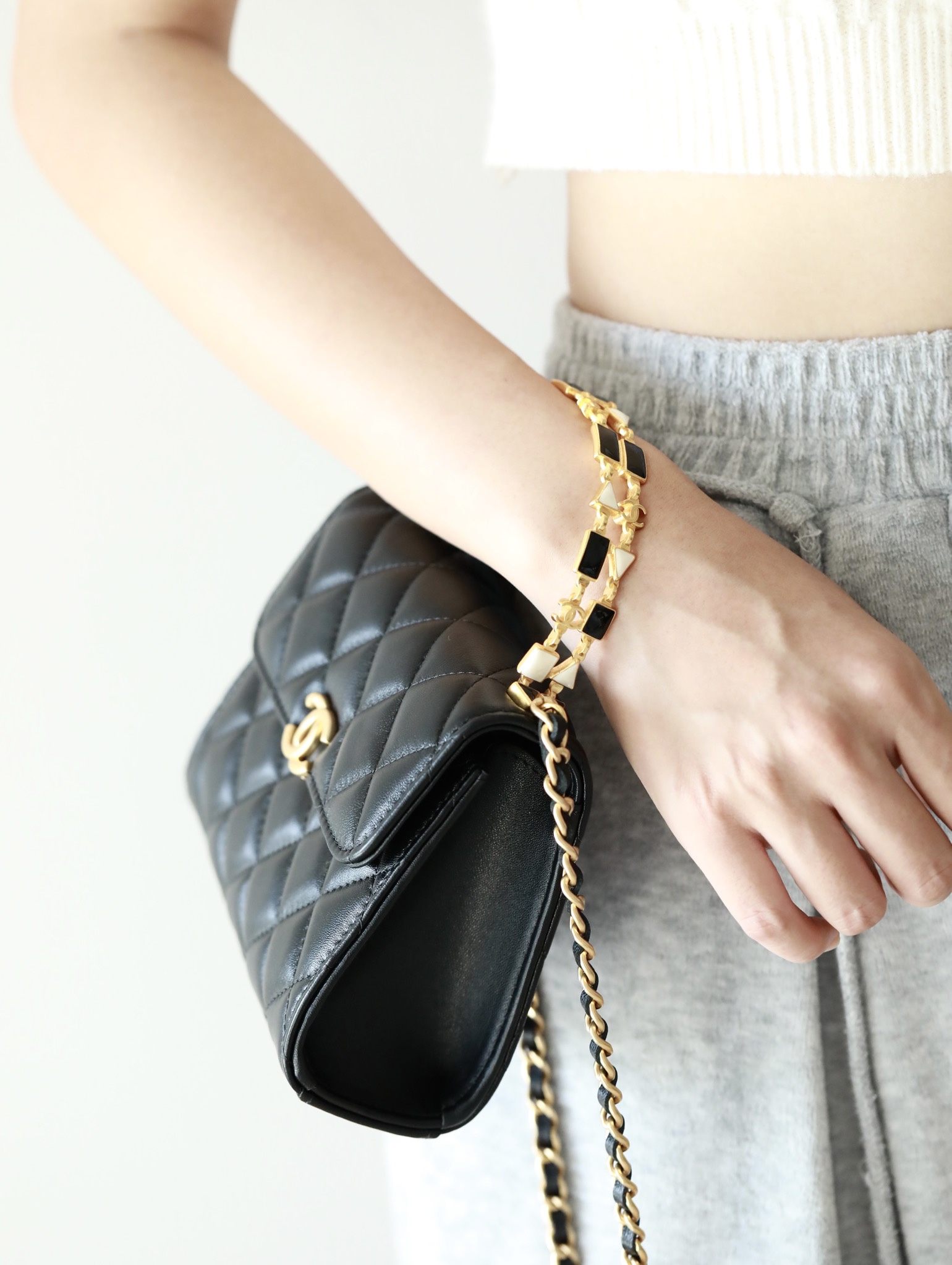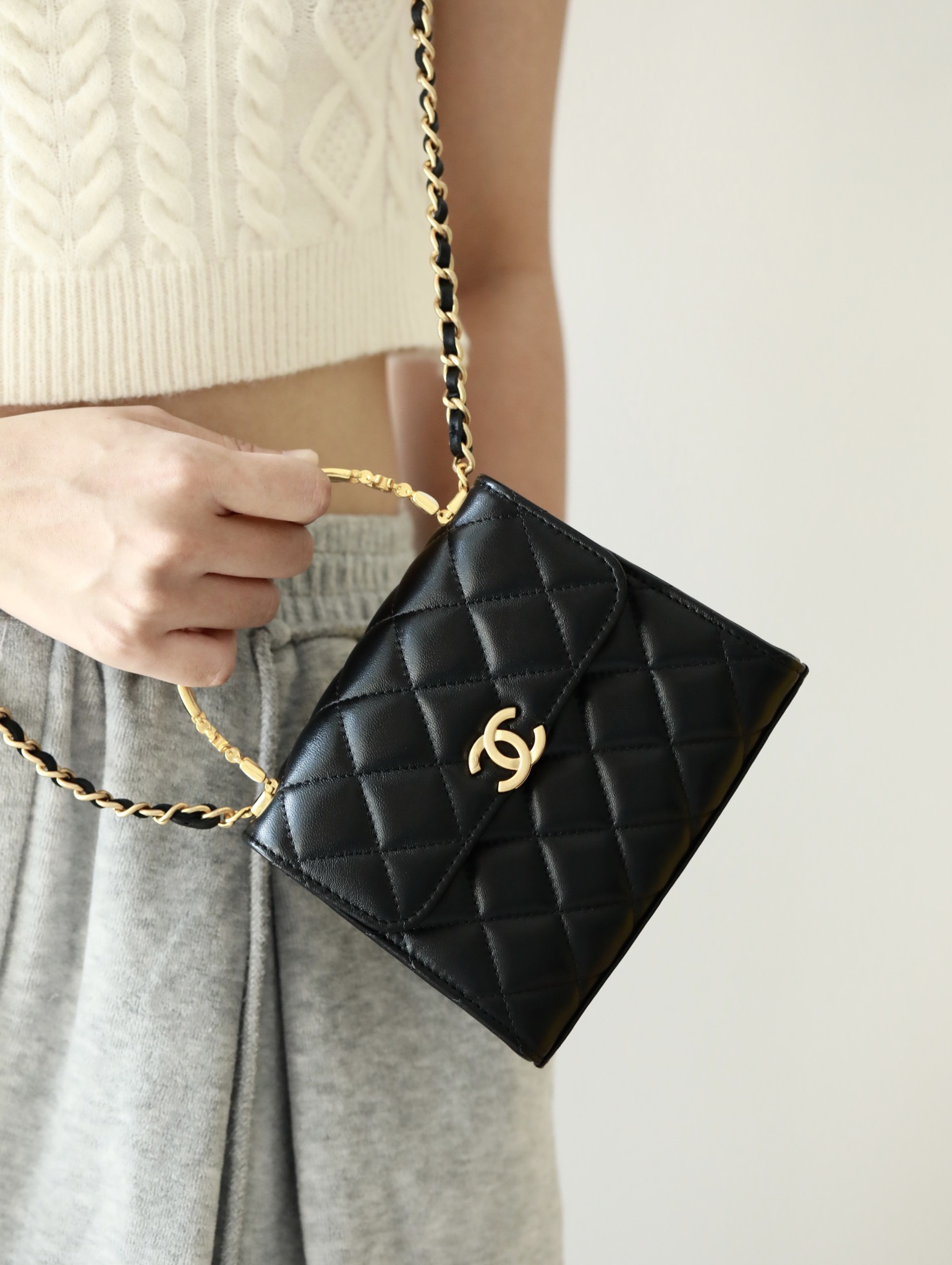 • CHANEL 22B Enamel buckle Kelly Medium Black Chain bag