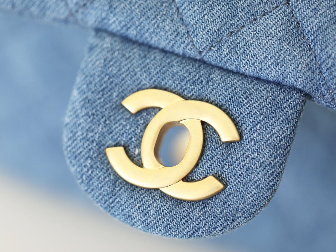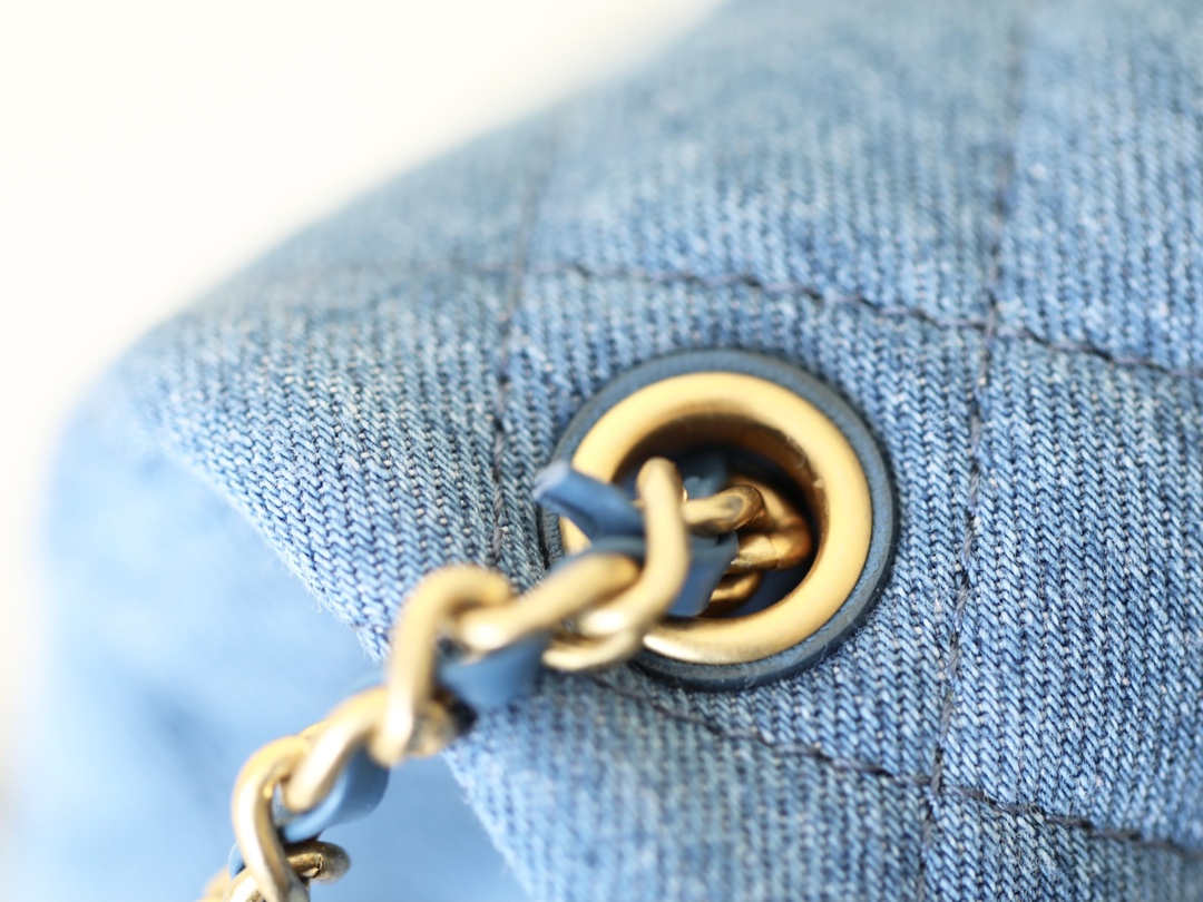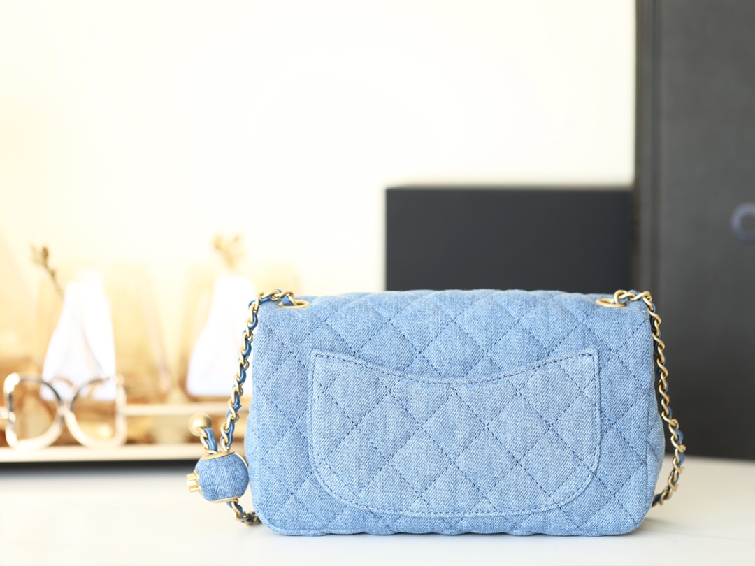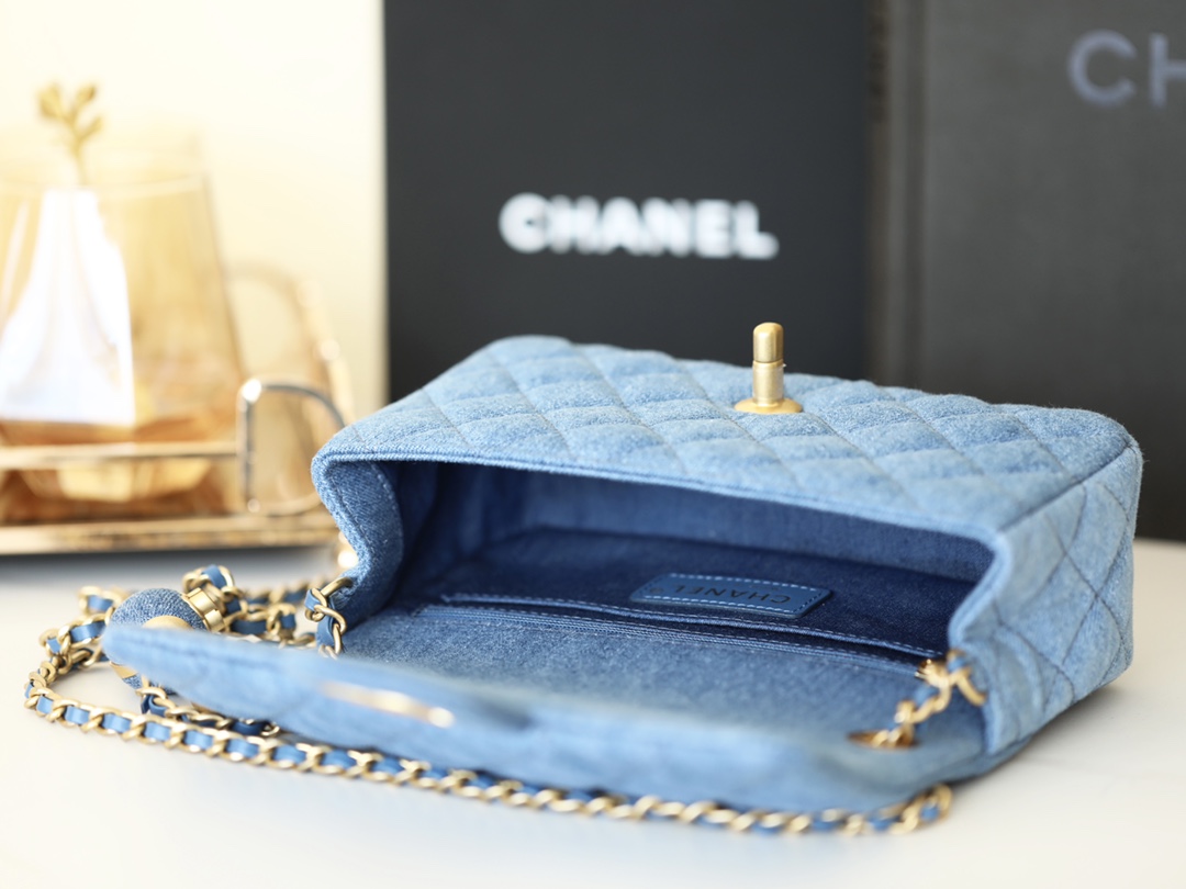 CHANEL 22C Denim Pearl Crush Rectangular Mini GHW
