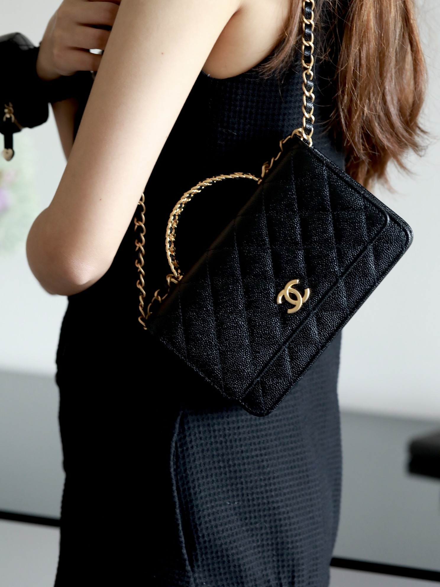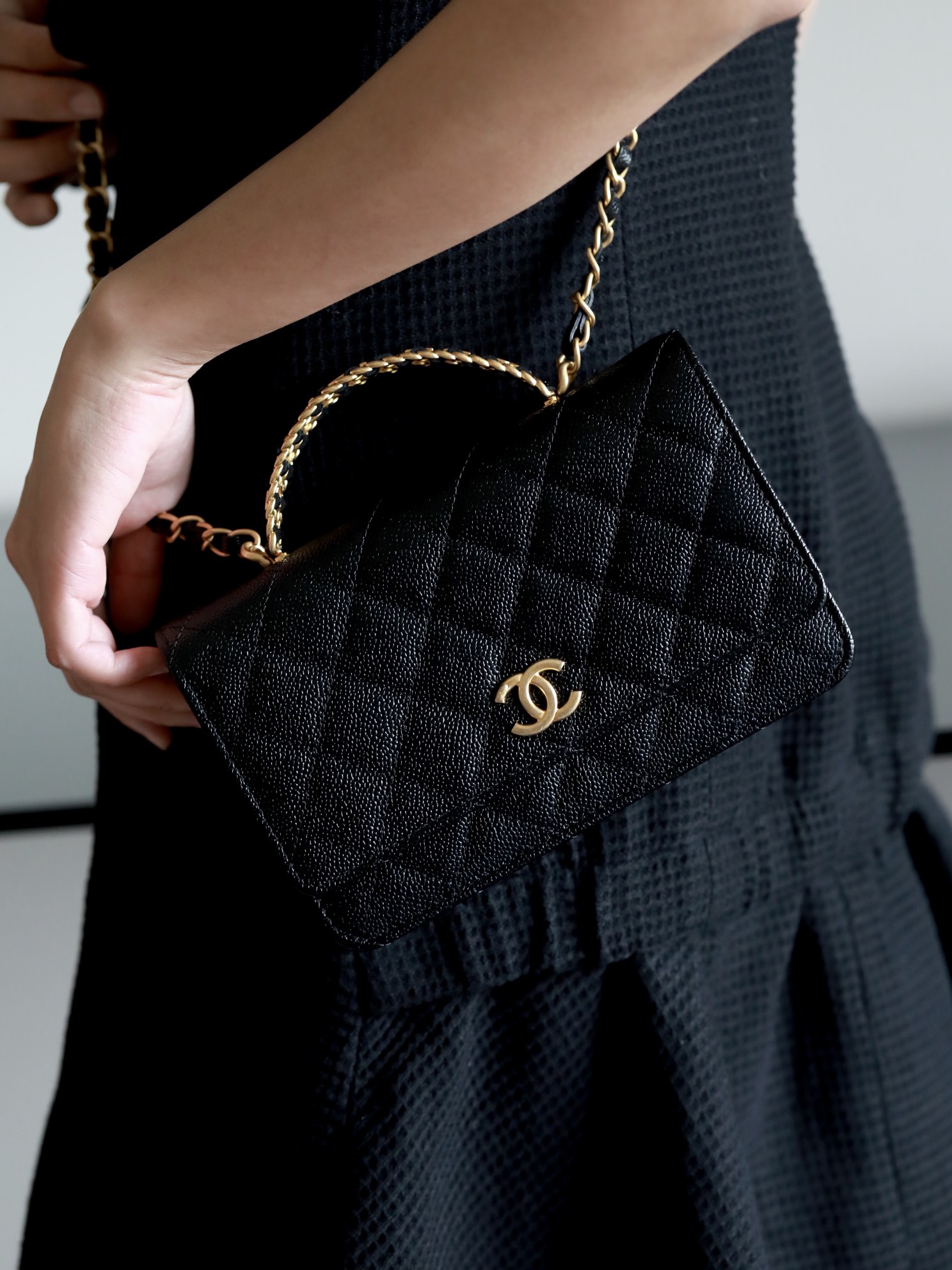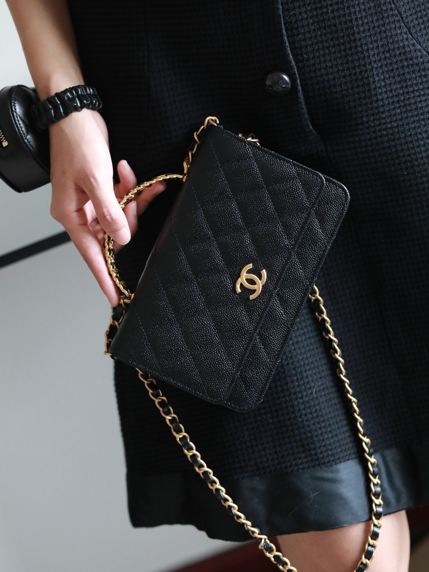 • CHANEL 22cc letter handle Woc fortune bag Lychee pattern black