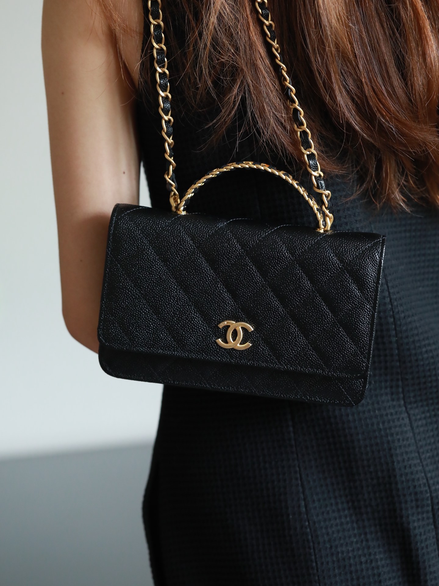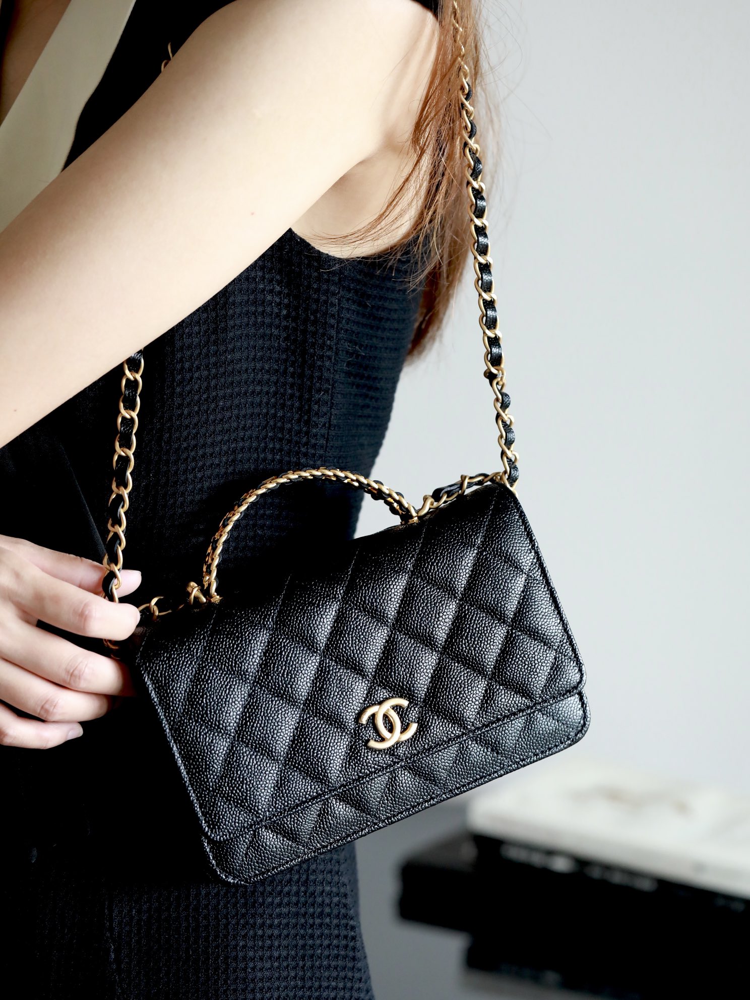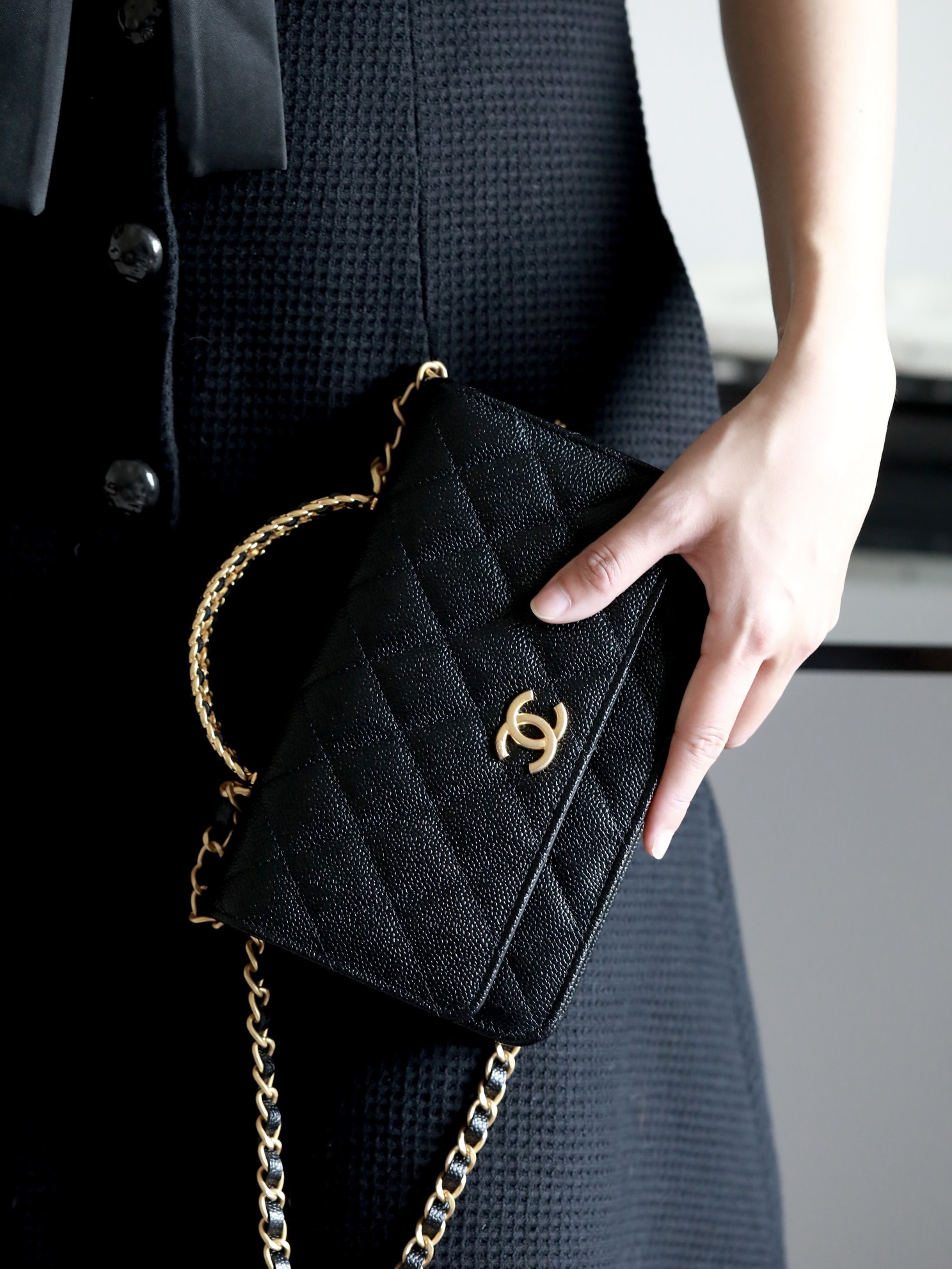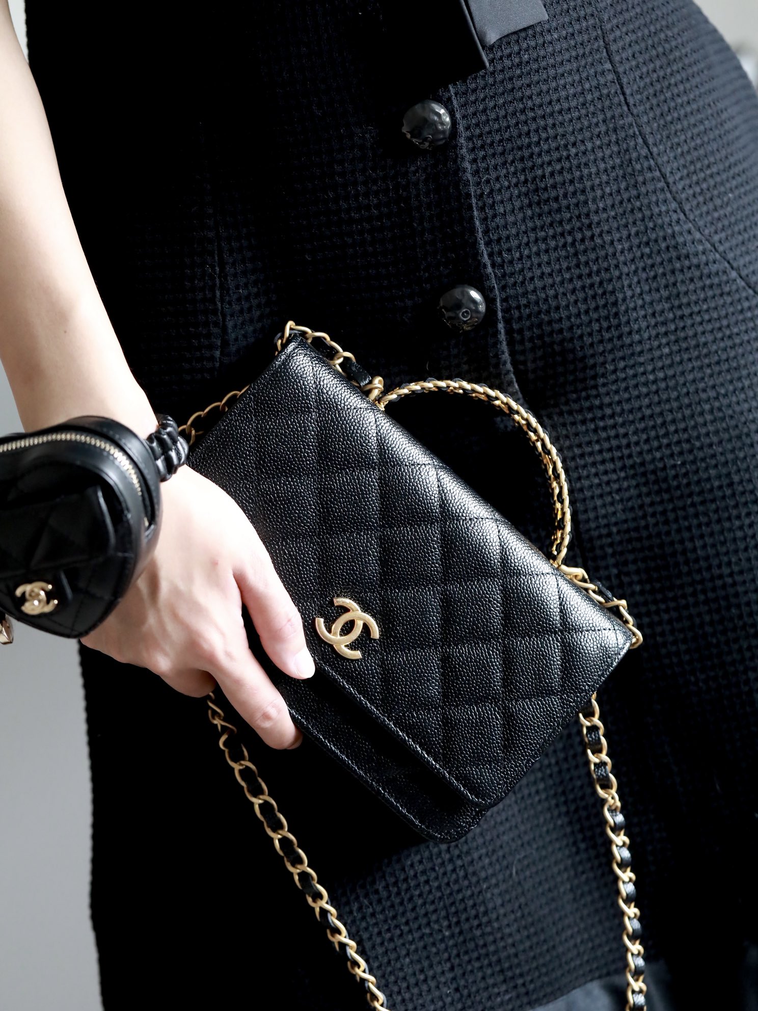 • CHANEL 22cc letter handle Woc fortune bag Lychee pattern black