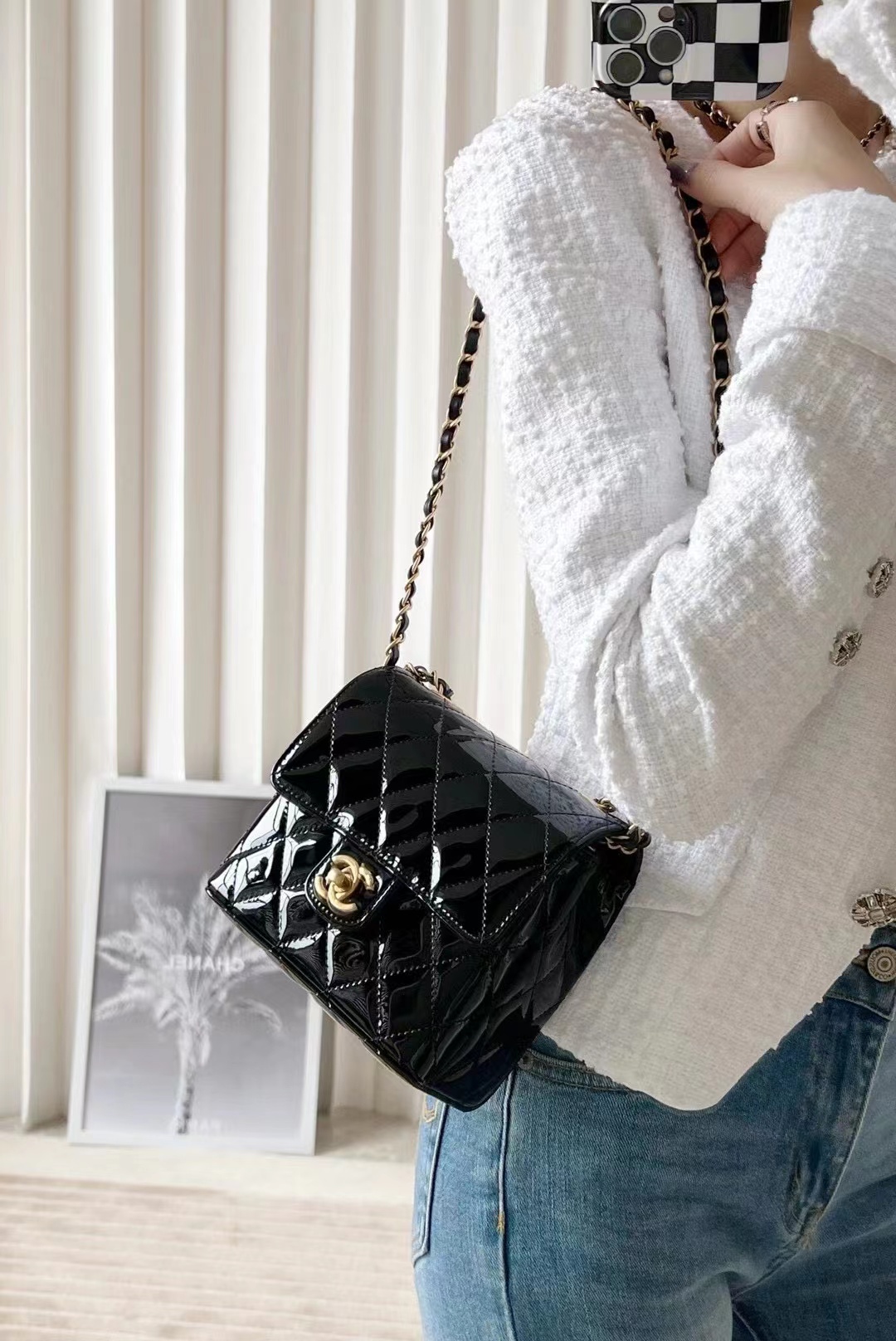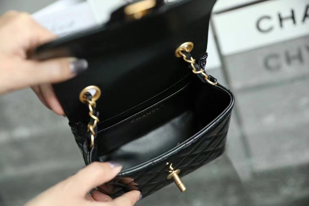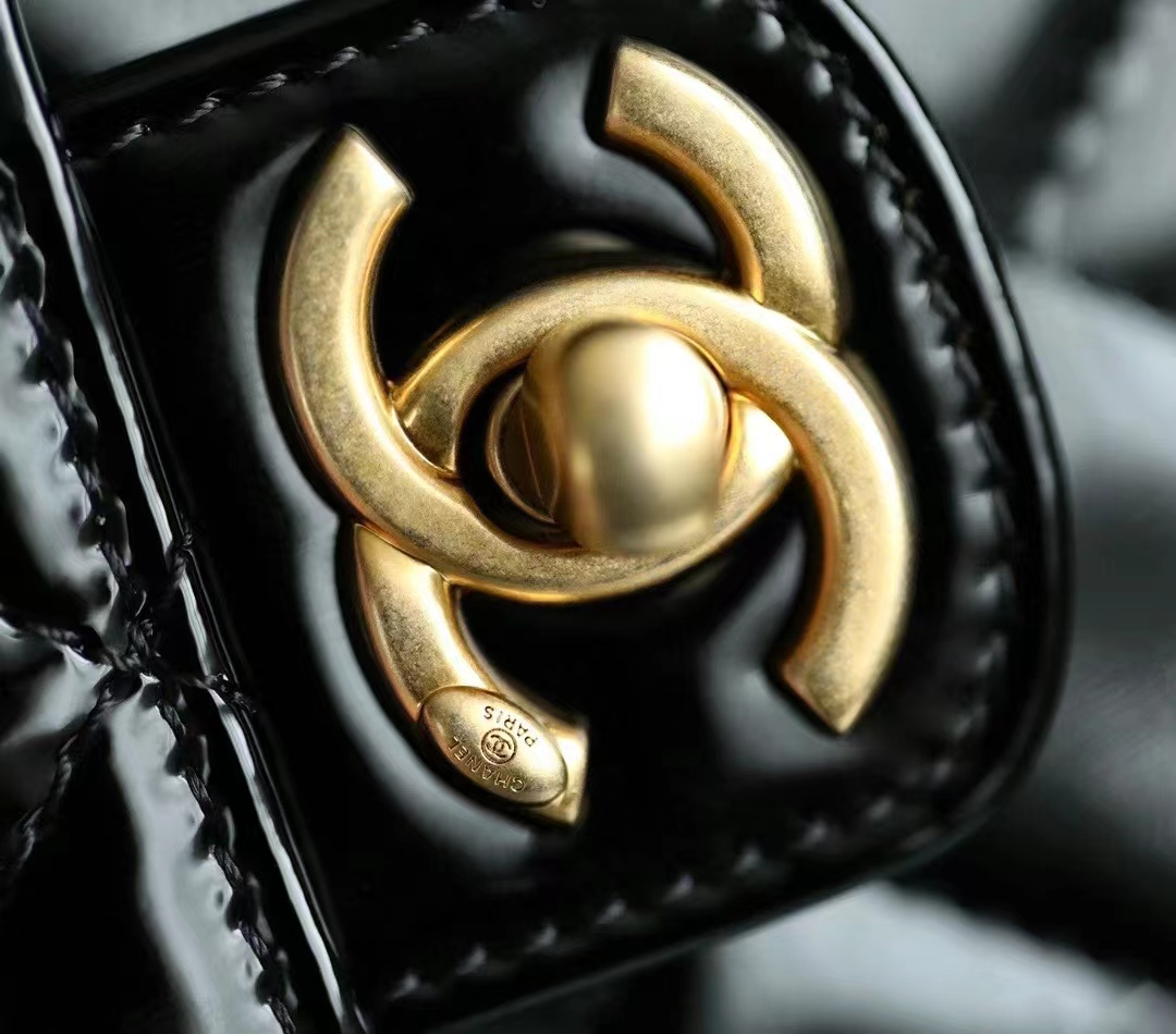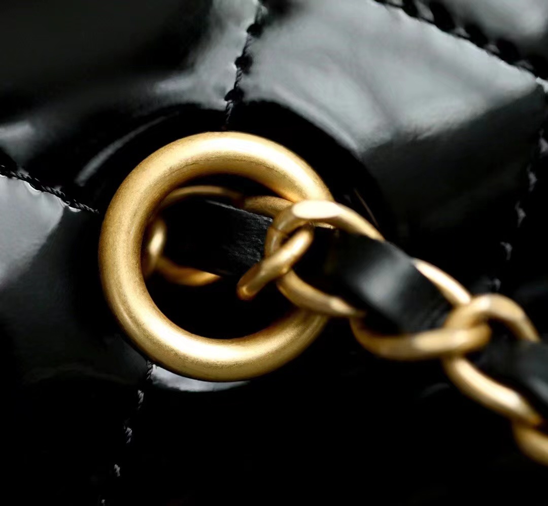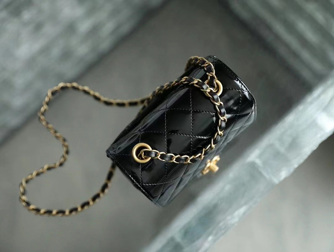 Chanel 22k MINI flap bag Fang Fatty Patent Leather Black