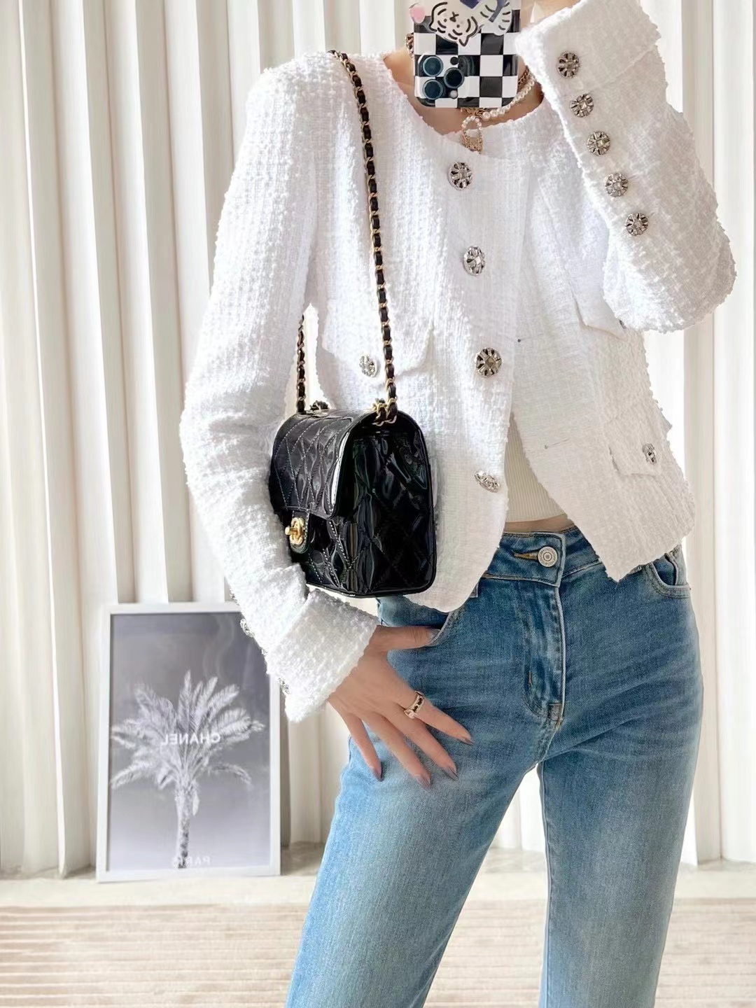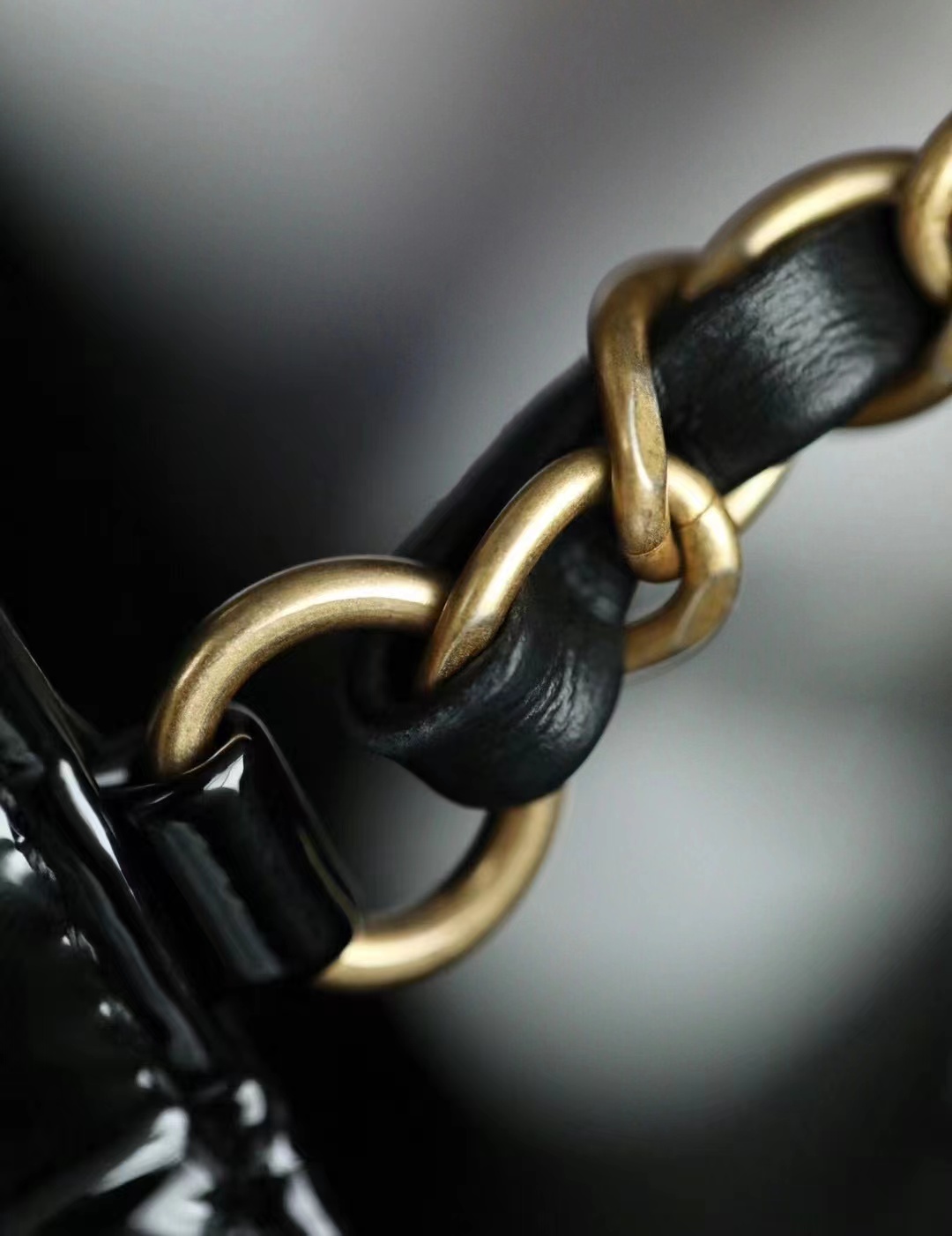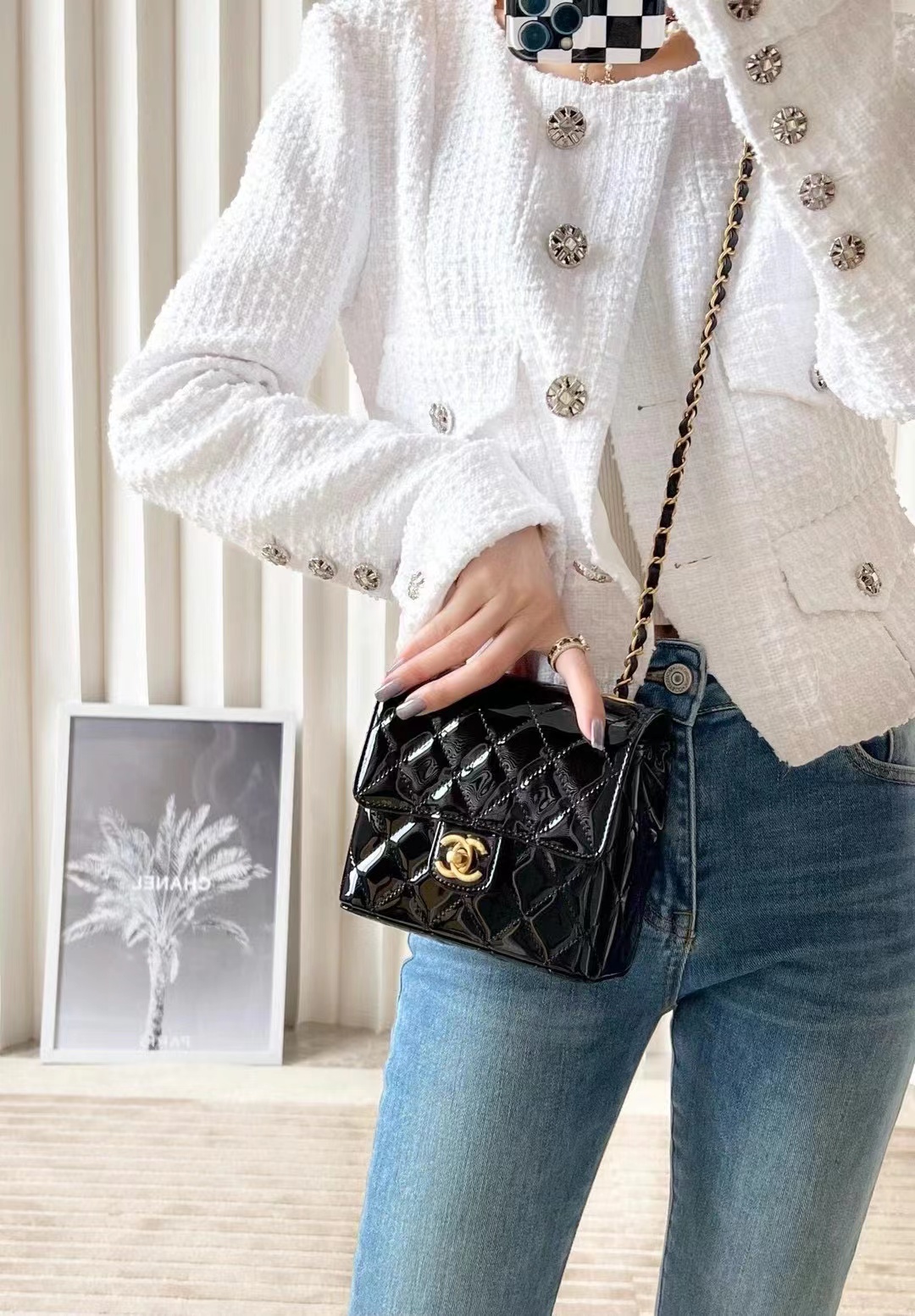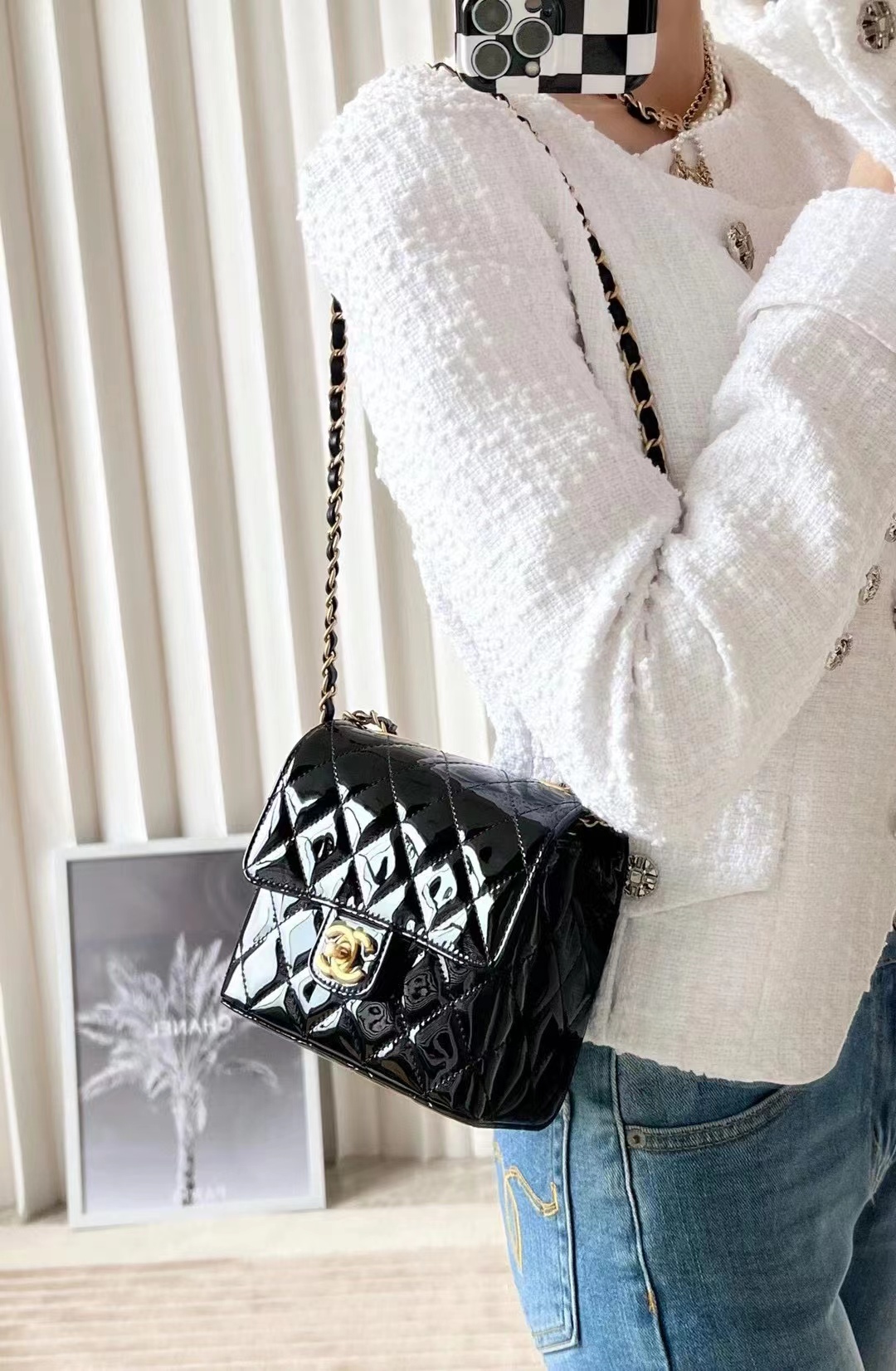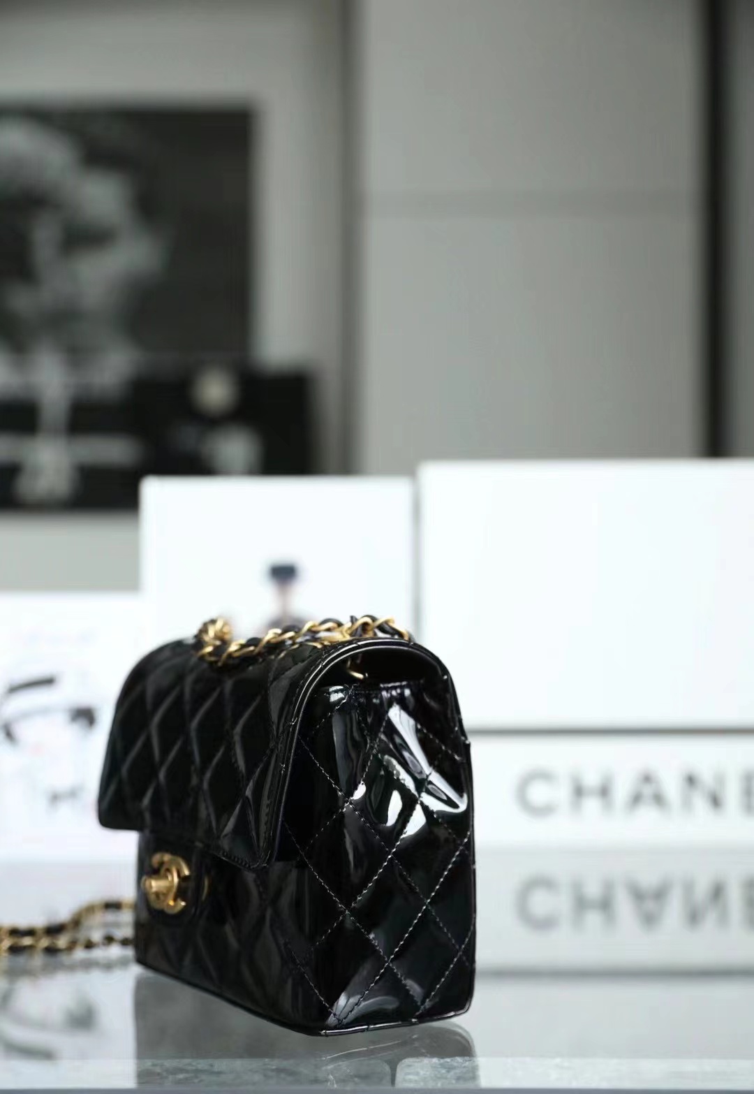 Chanel 22k MINI flap bag Fang Fatty Patent Leather Black