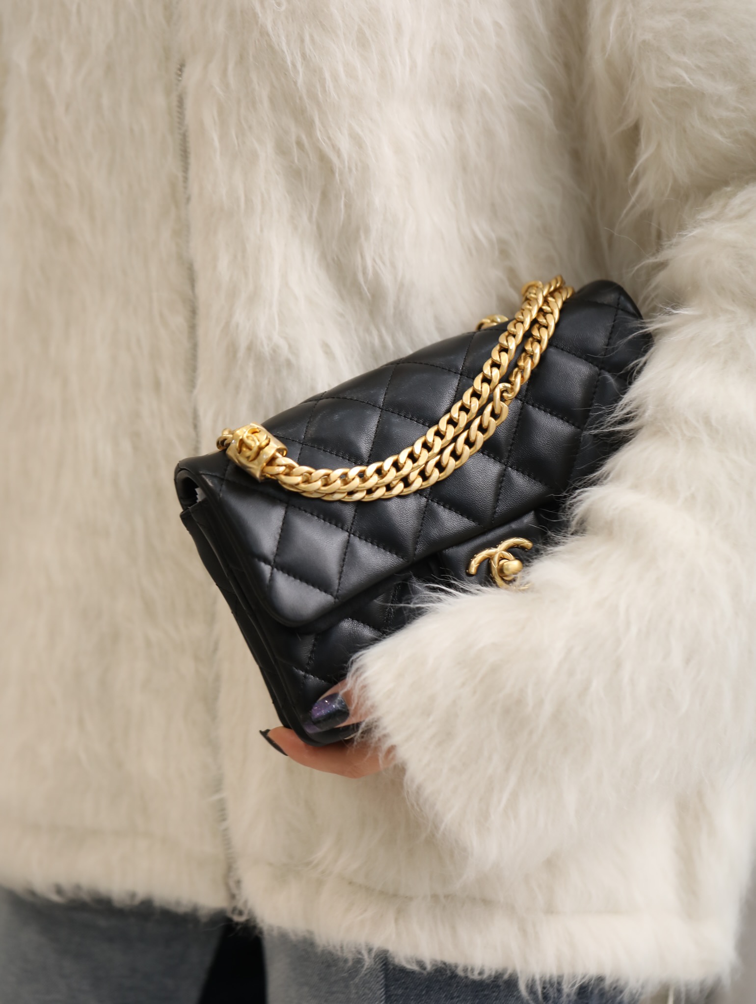 • CHANEL 22K New Model Adjustable Buckle Flap Bag black