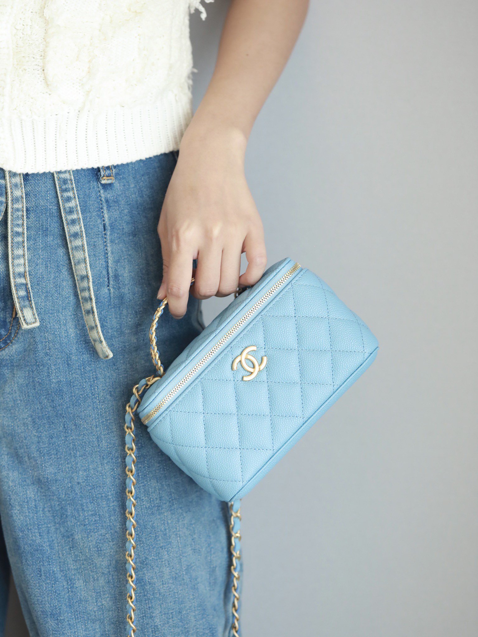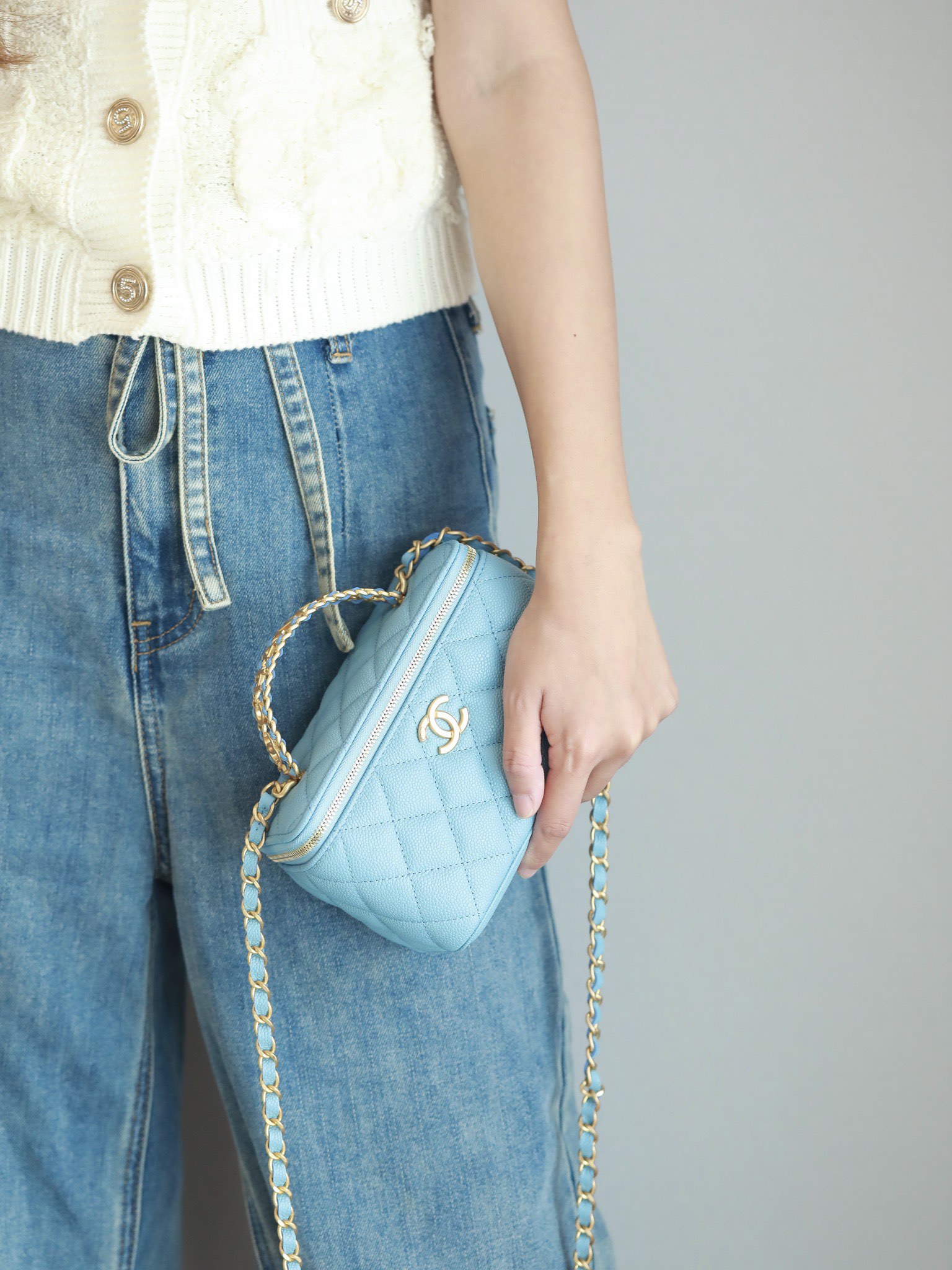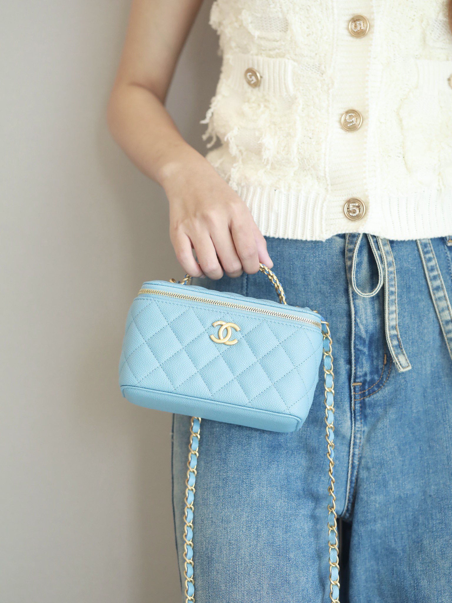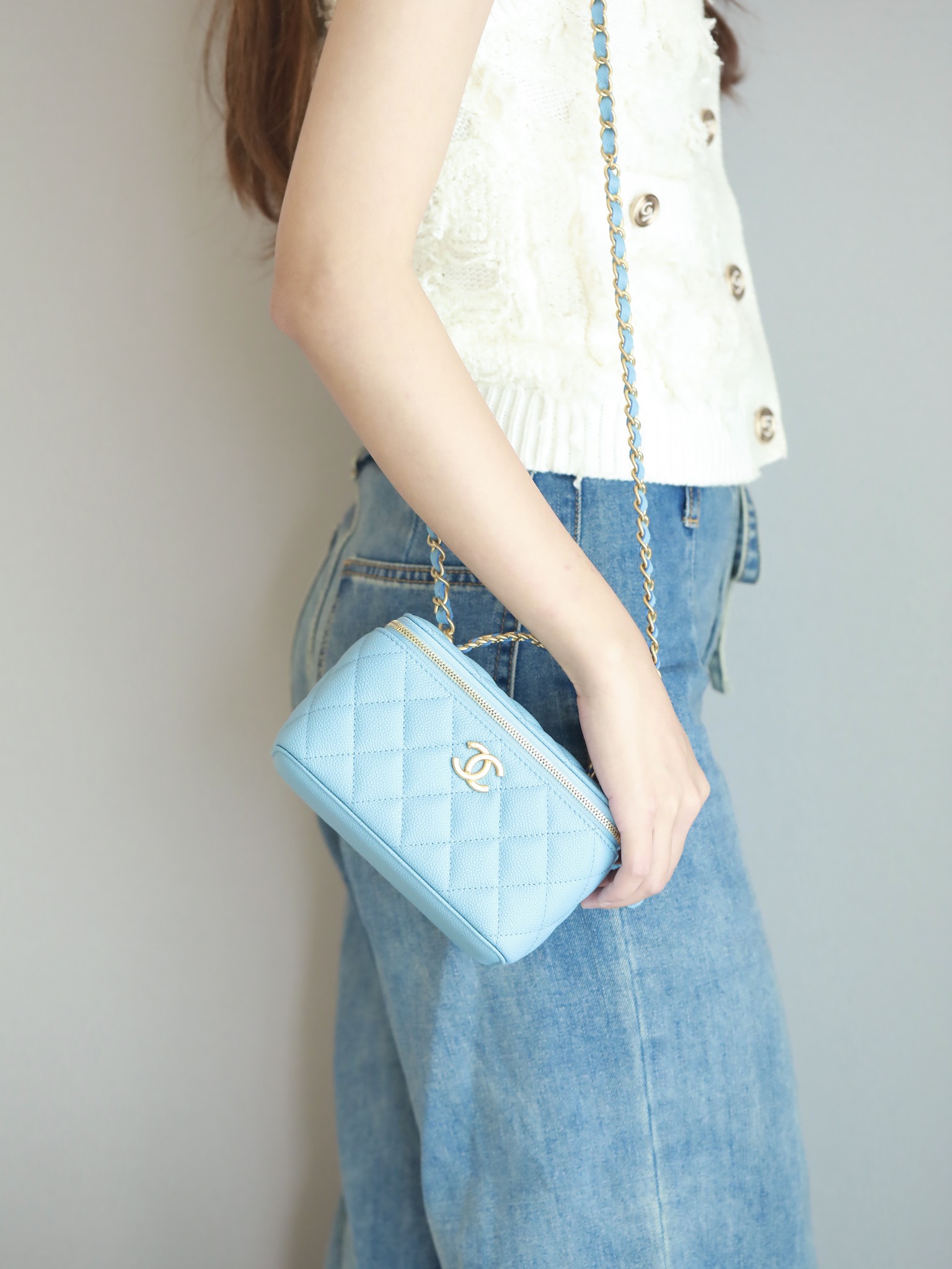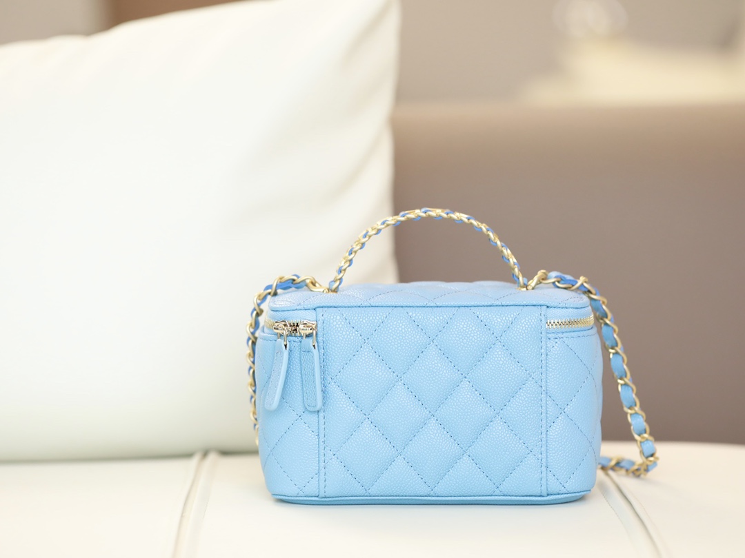 • CHANEL 22S baby bule long vanity case with handle long box caviar leather