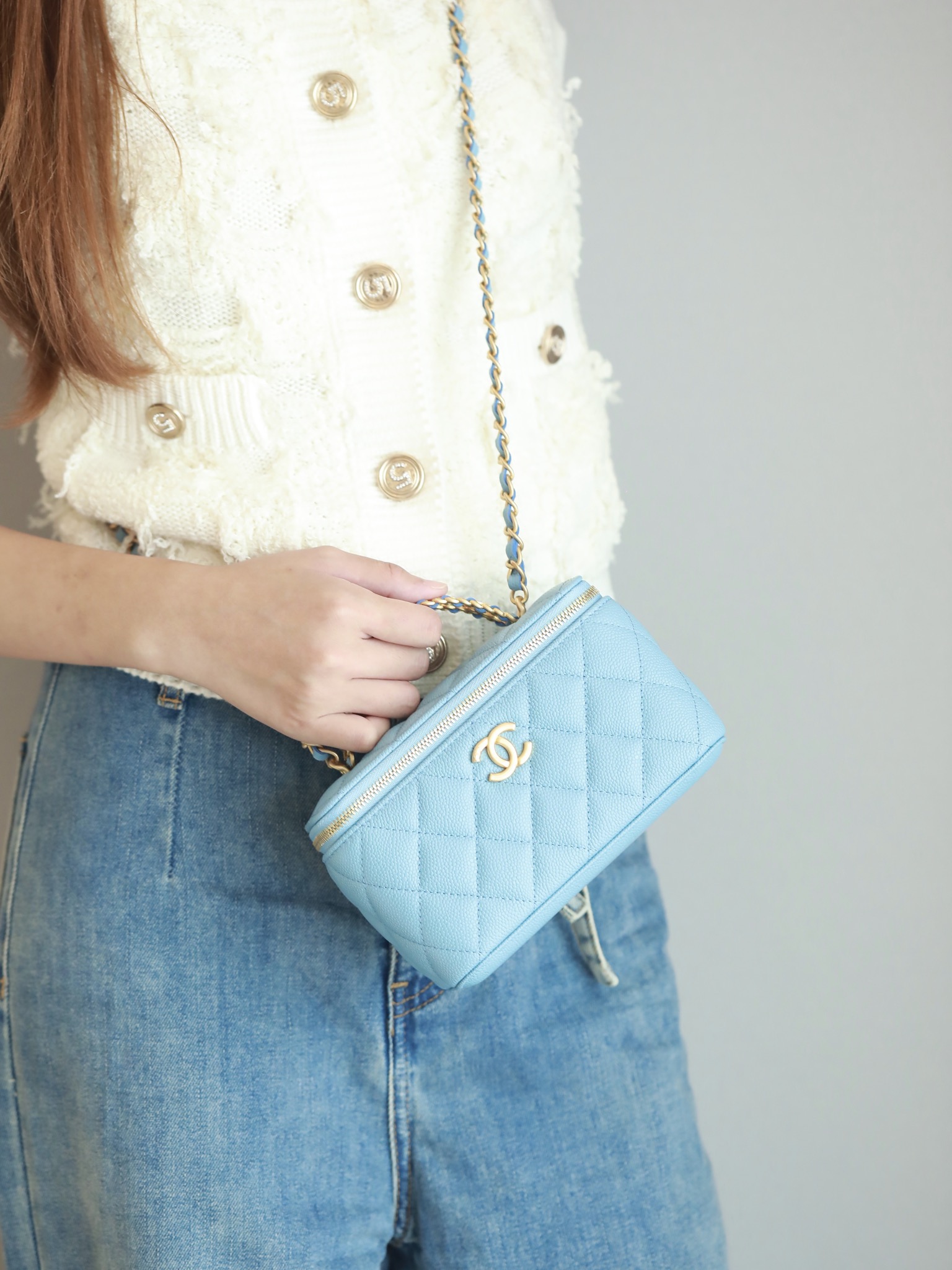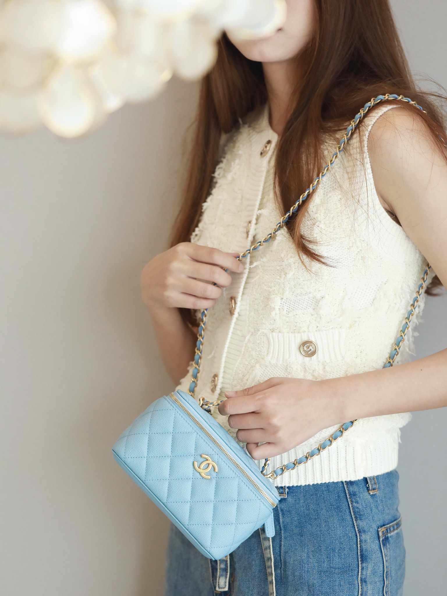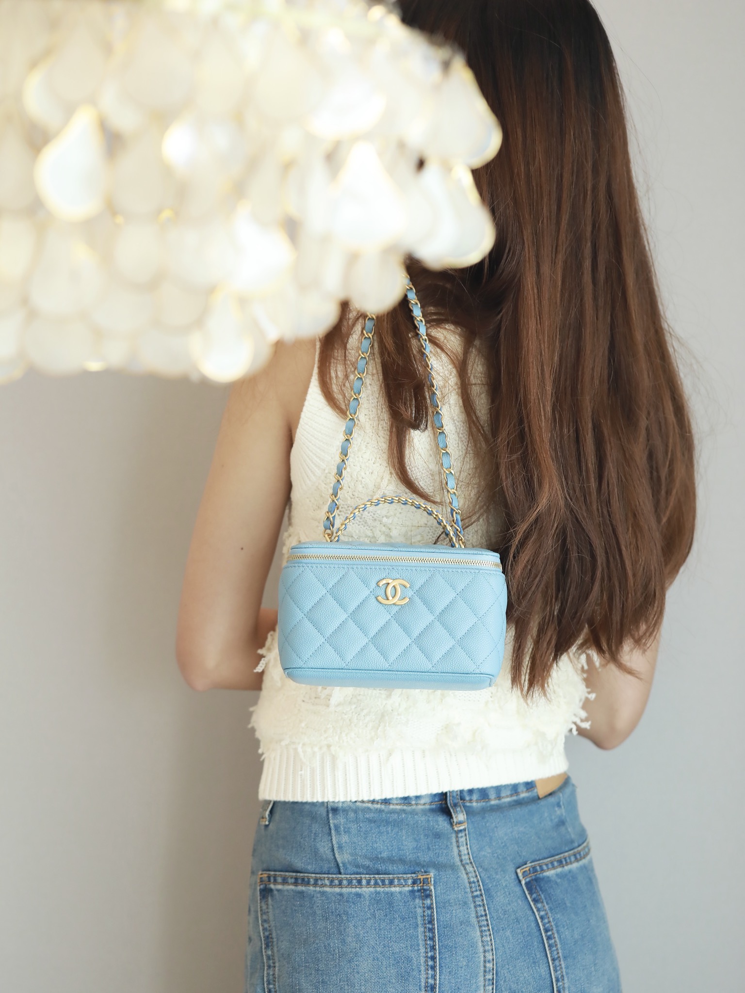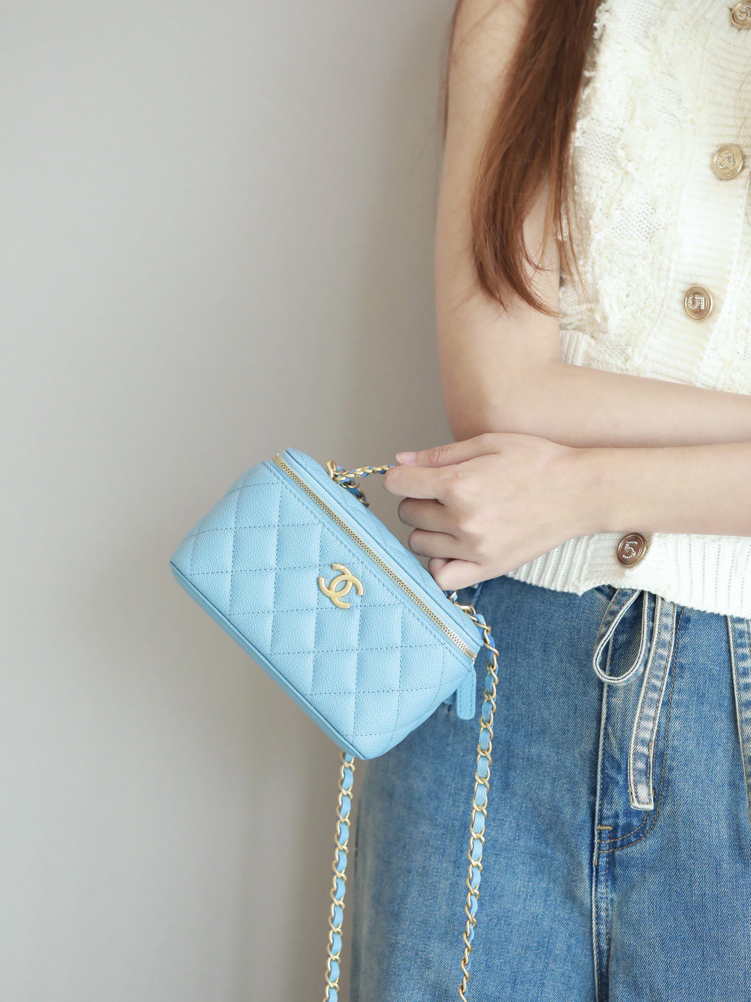 • CHANEL 22S baby bule long vanity case with handle long box caviar leather