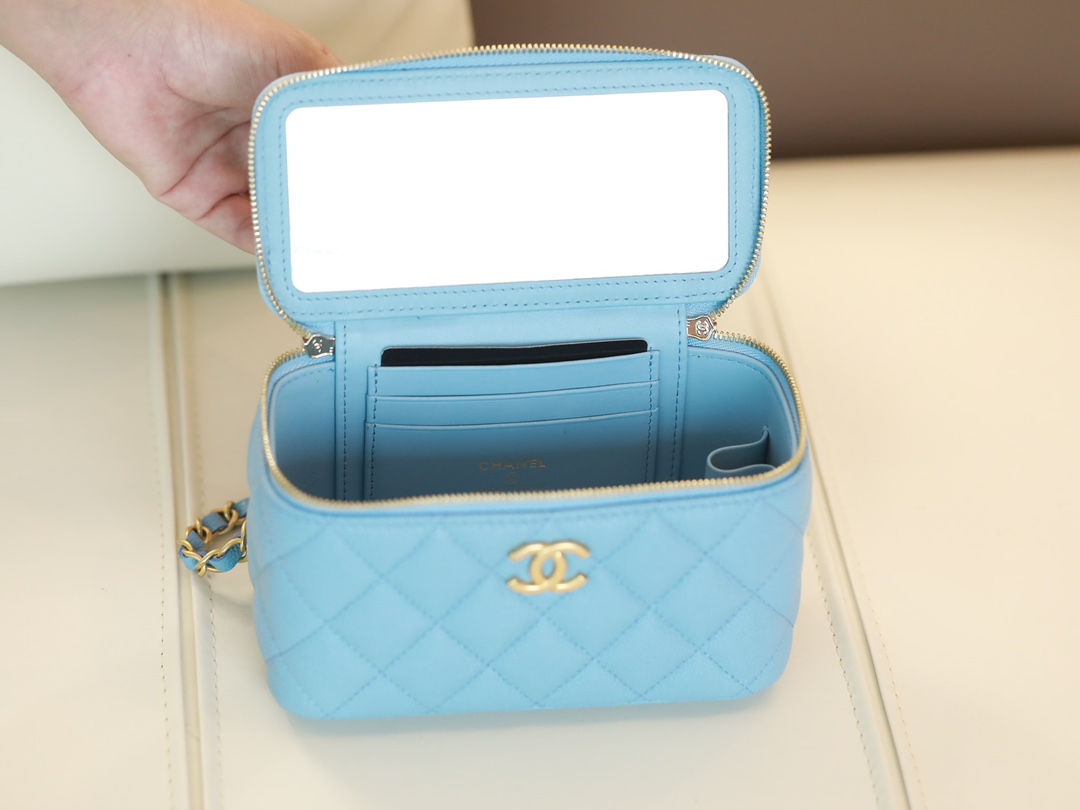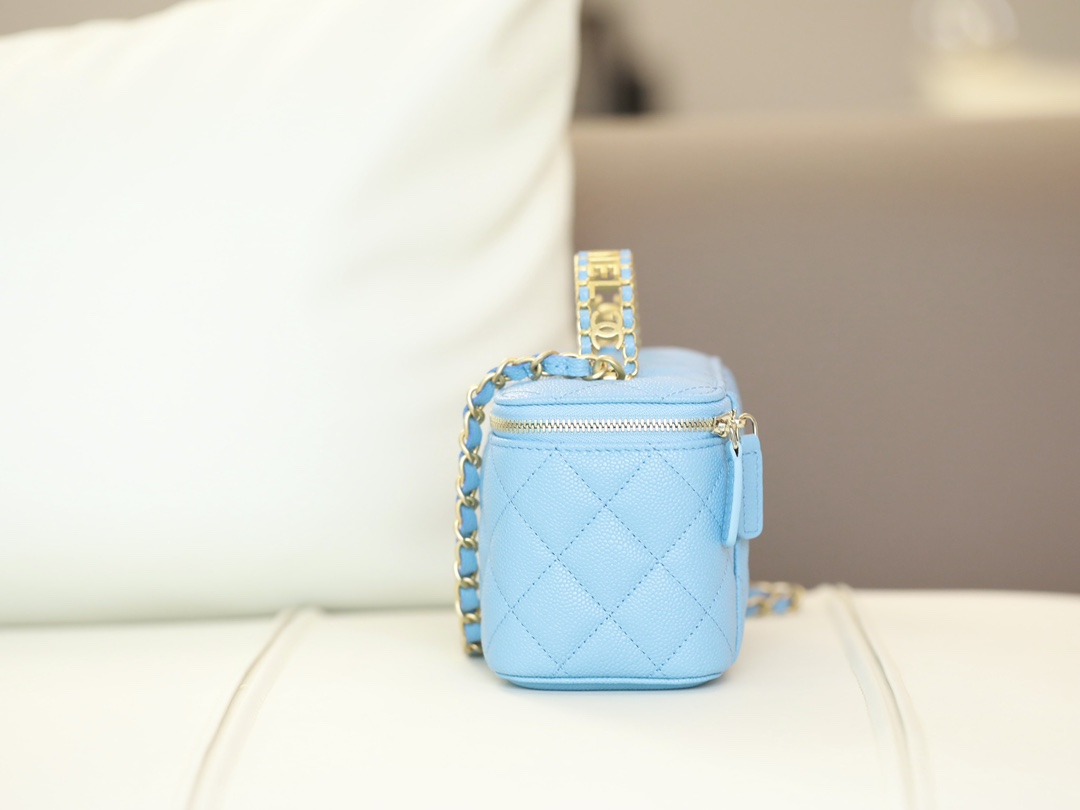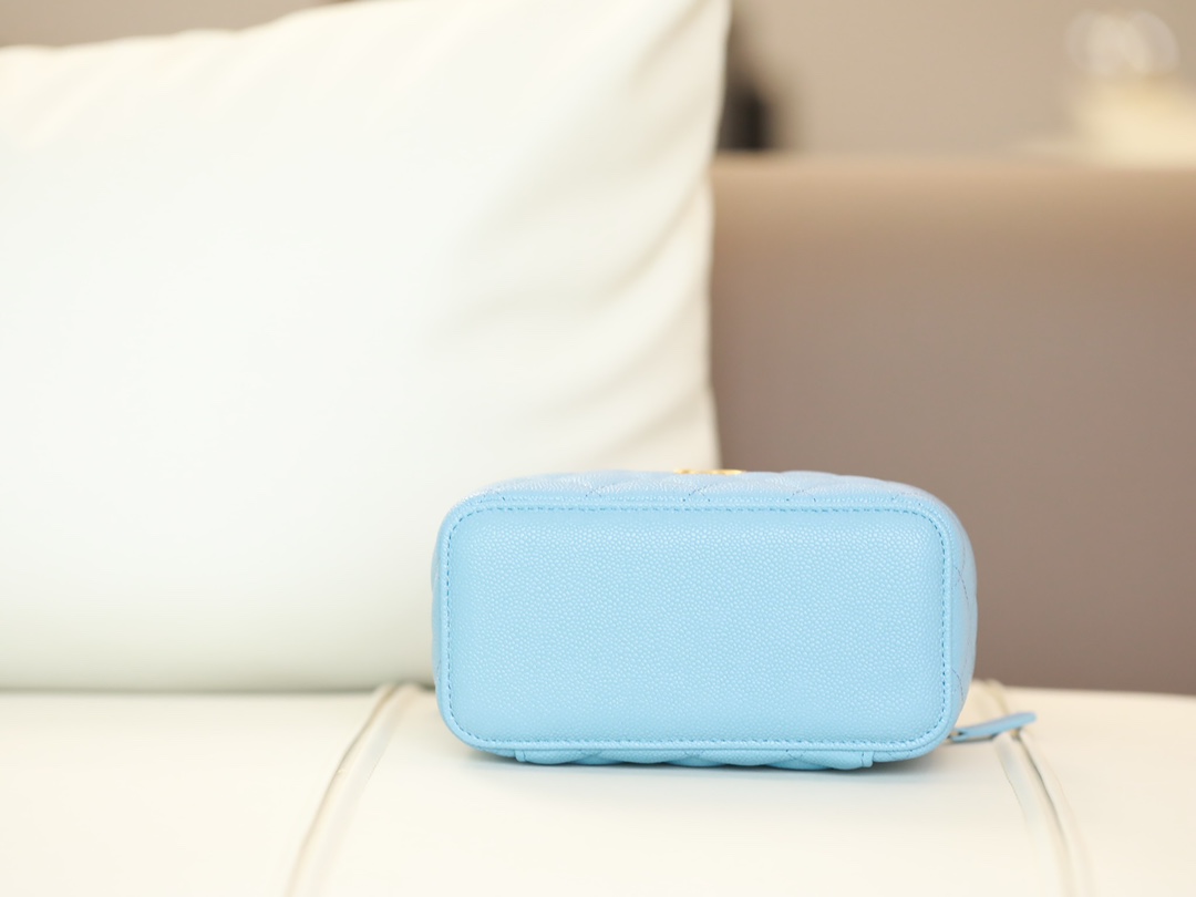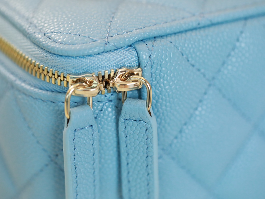 CHANEL 22S baby bule long vanity case with handle long box caviar leather