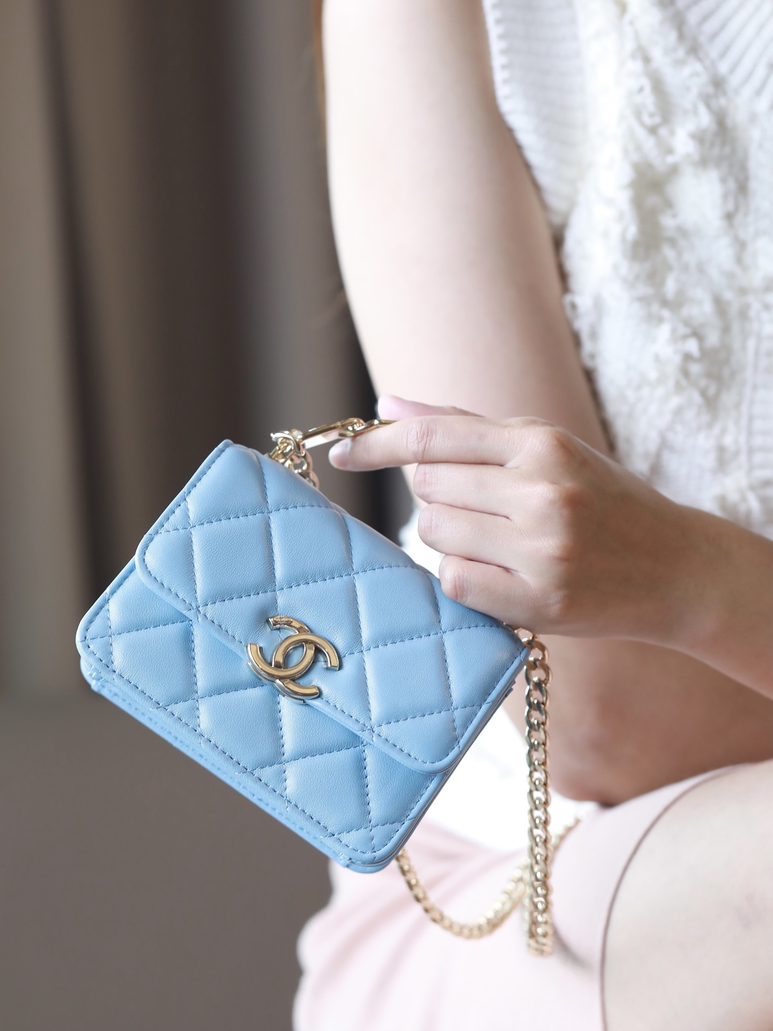 CHANEL 22S Mini WOC with handle Light Blue Lambskin