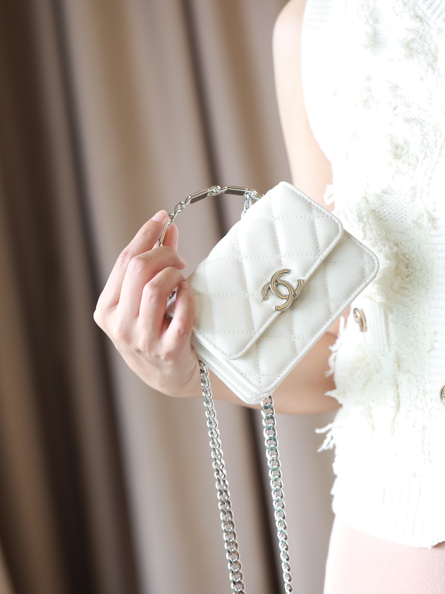 • CHANEL 22S Mini WOC with handle White Grained Shiny Calfskin