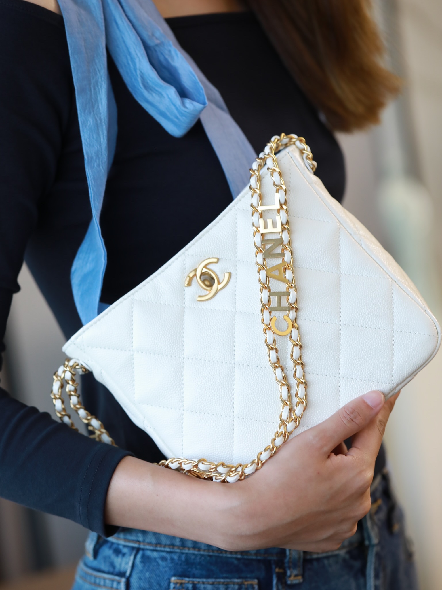 CHANEL 22S Pearl Crush Hobo Bag Shiny Calfskin White GHW