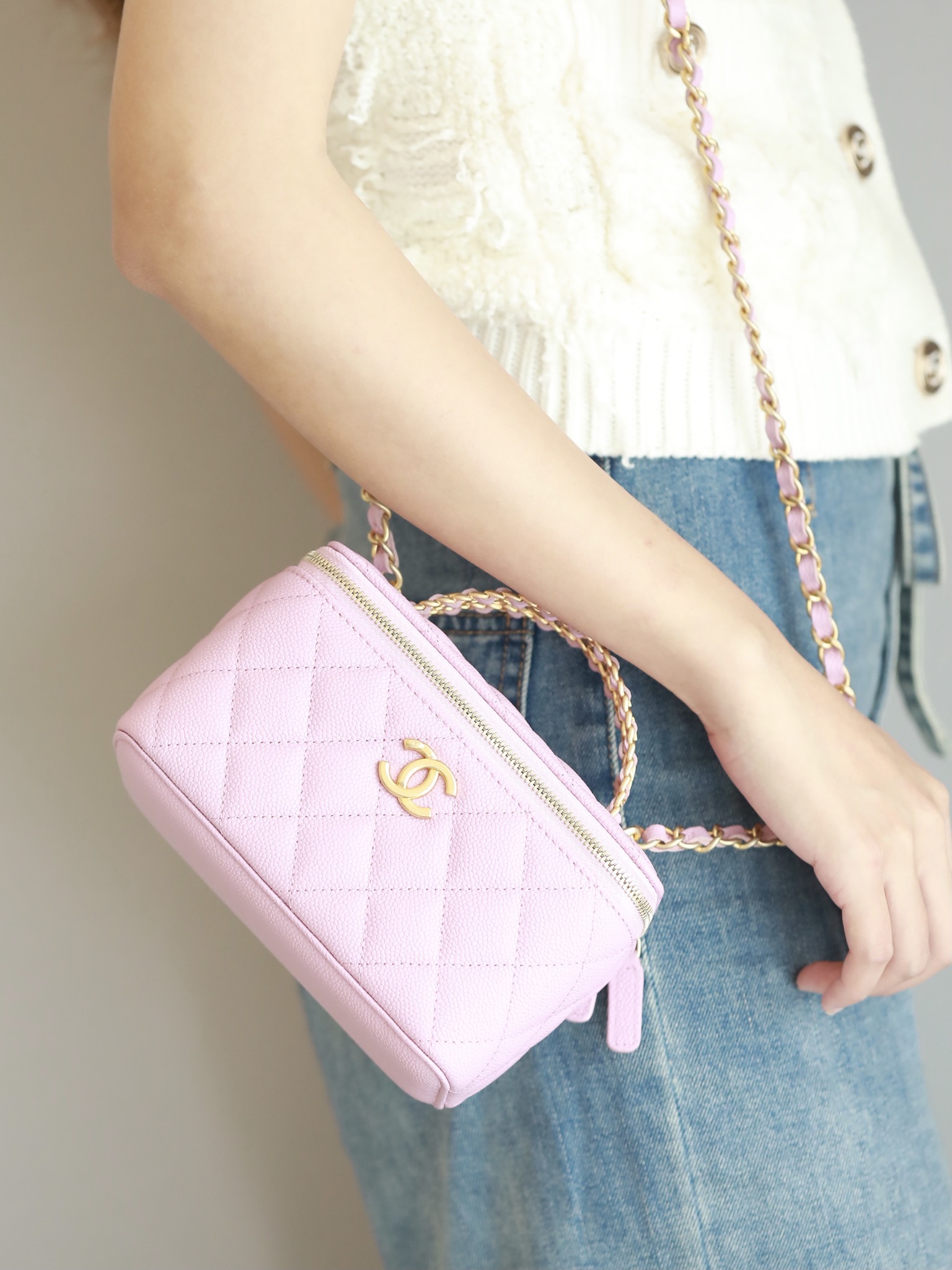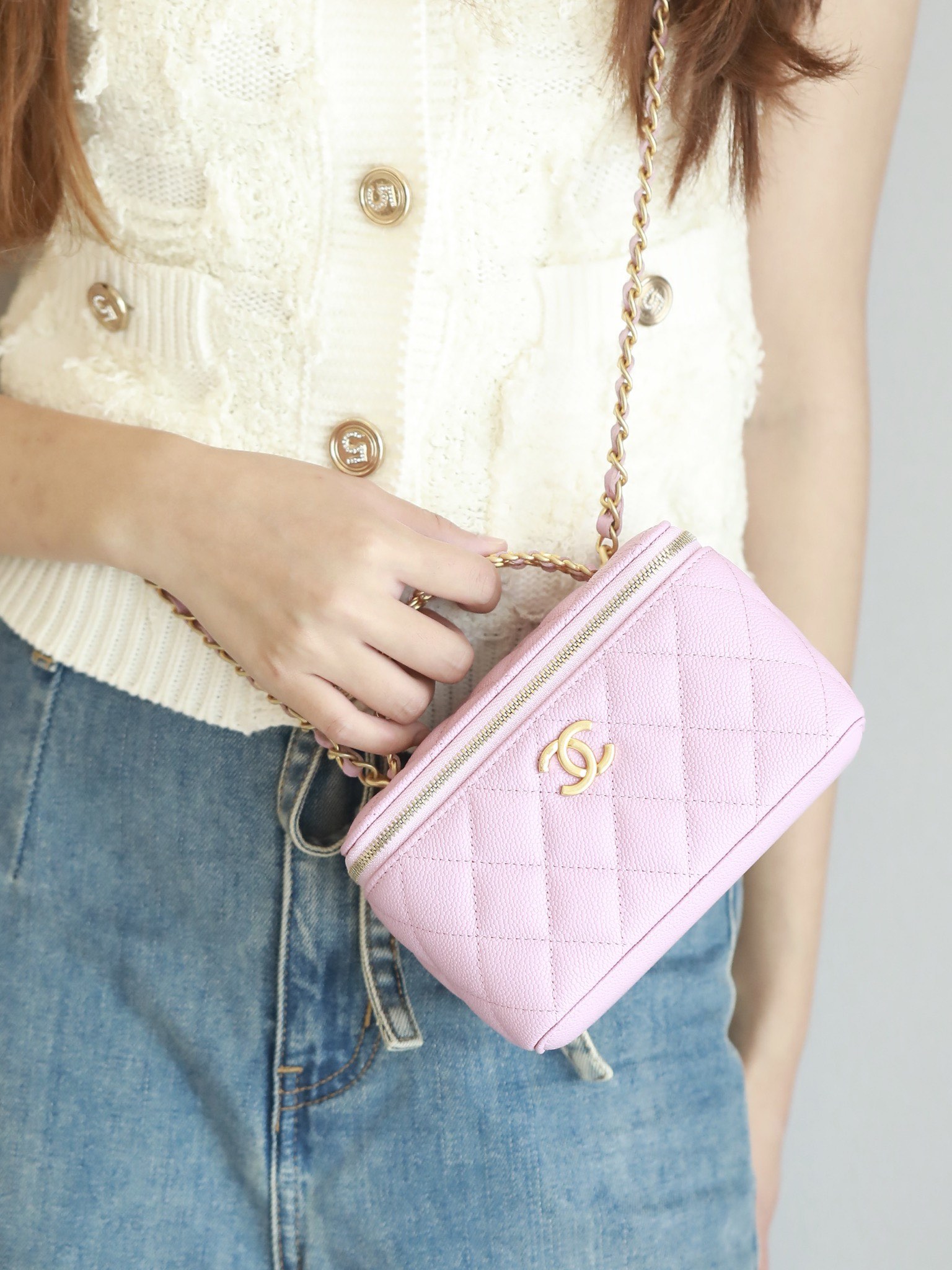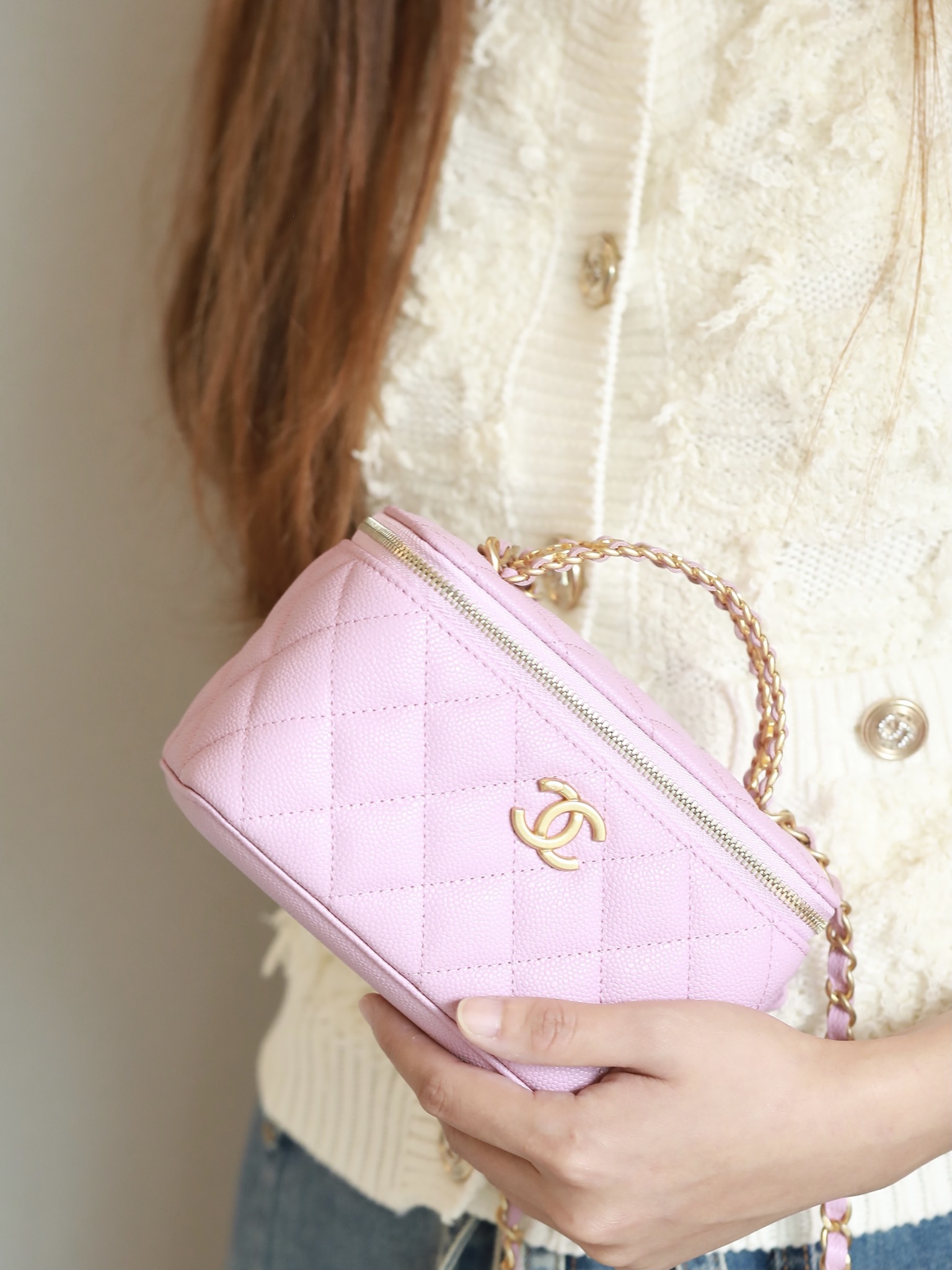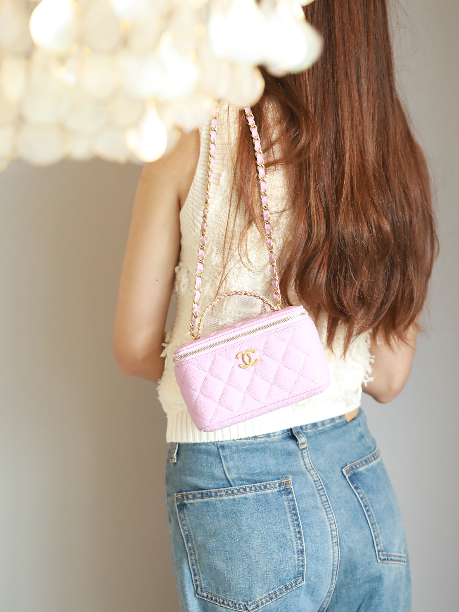 CHANEL 22S pink long vanity case with handle long box caviar leather