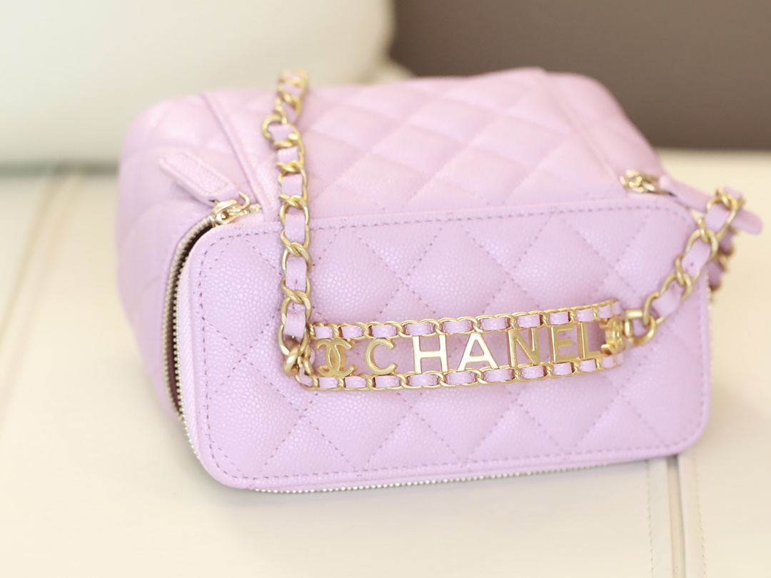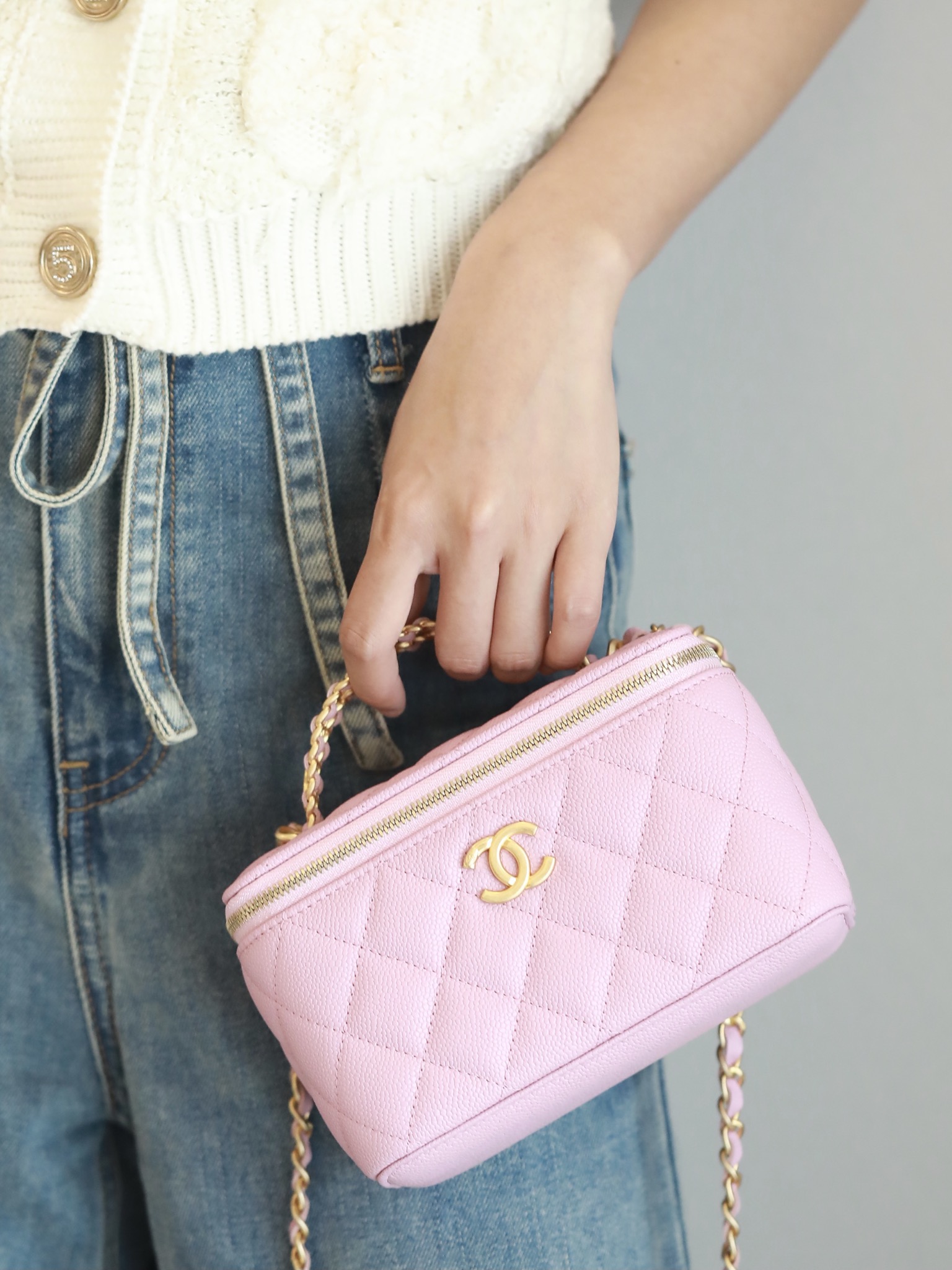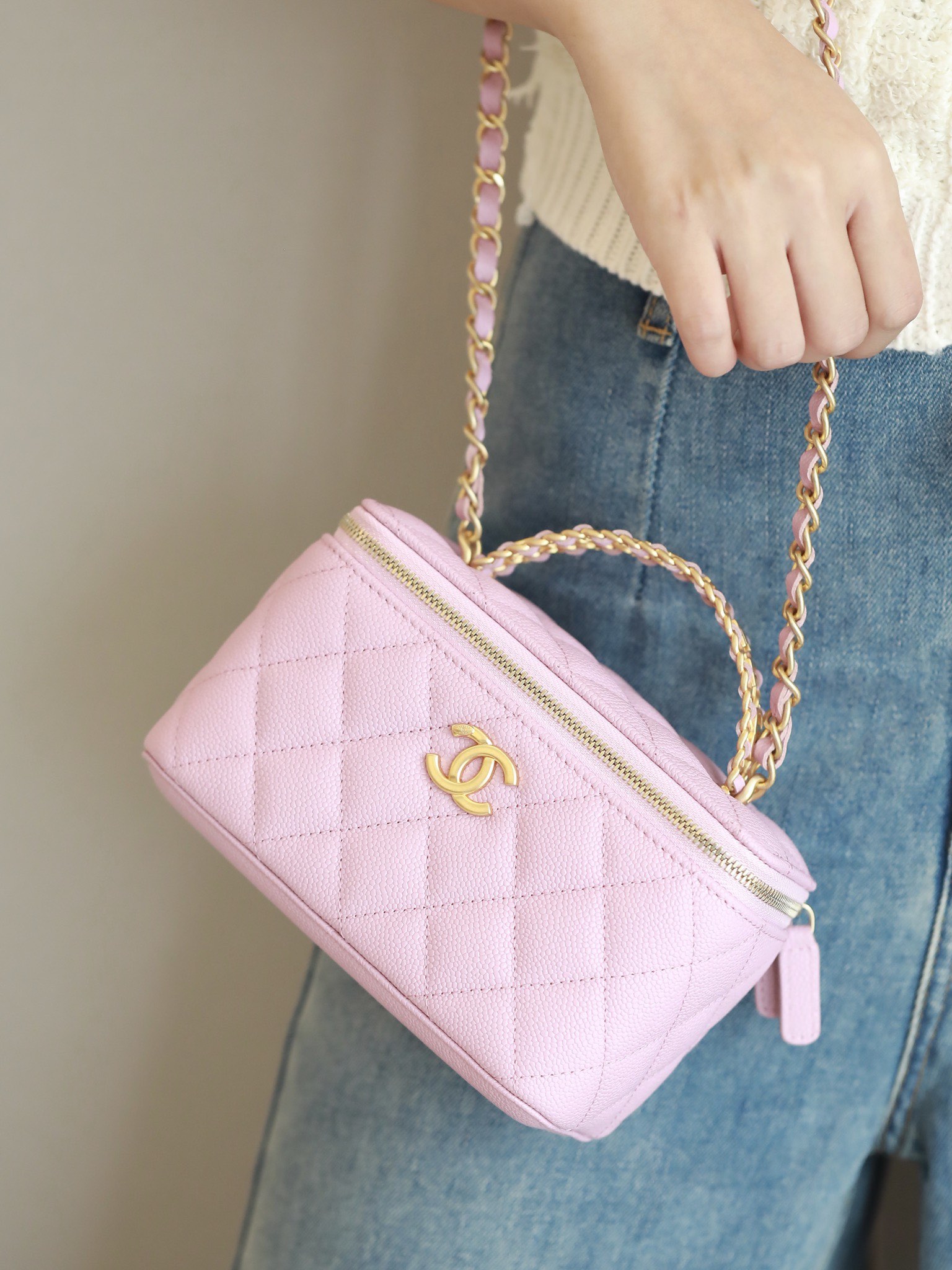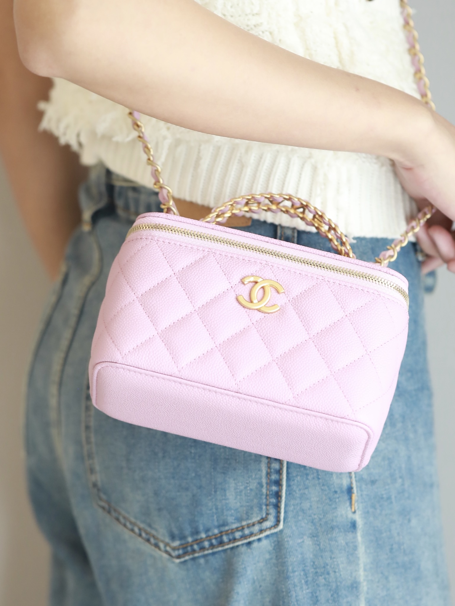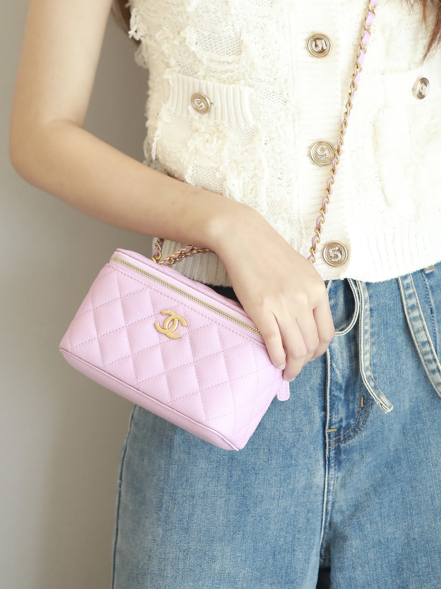 CHANEL 22S pink long vanity case with handle long box caviar leather