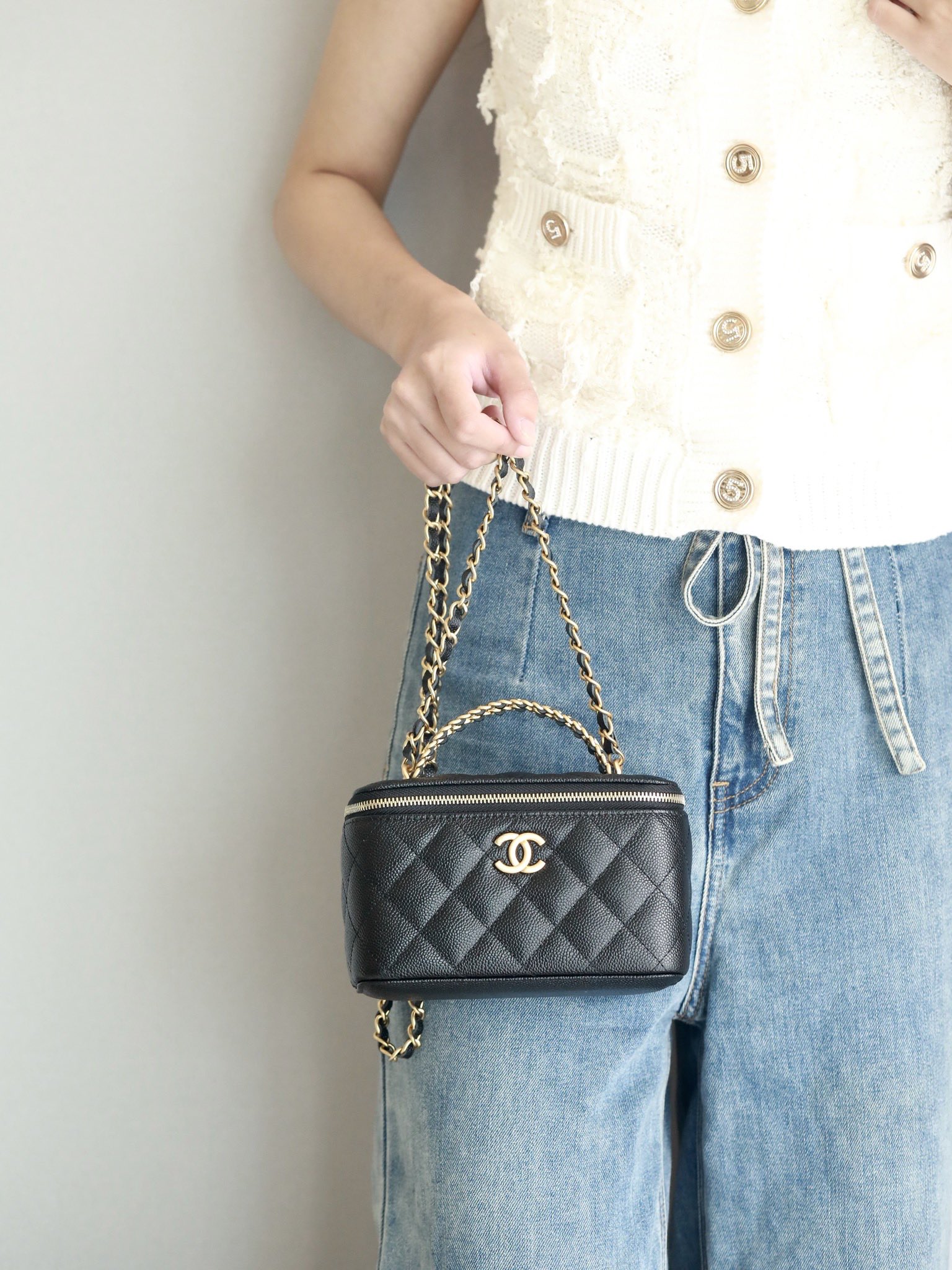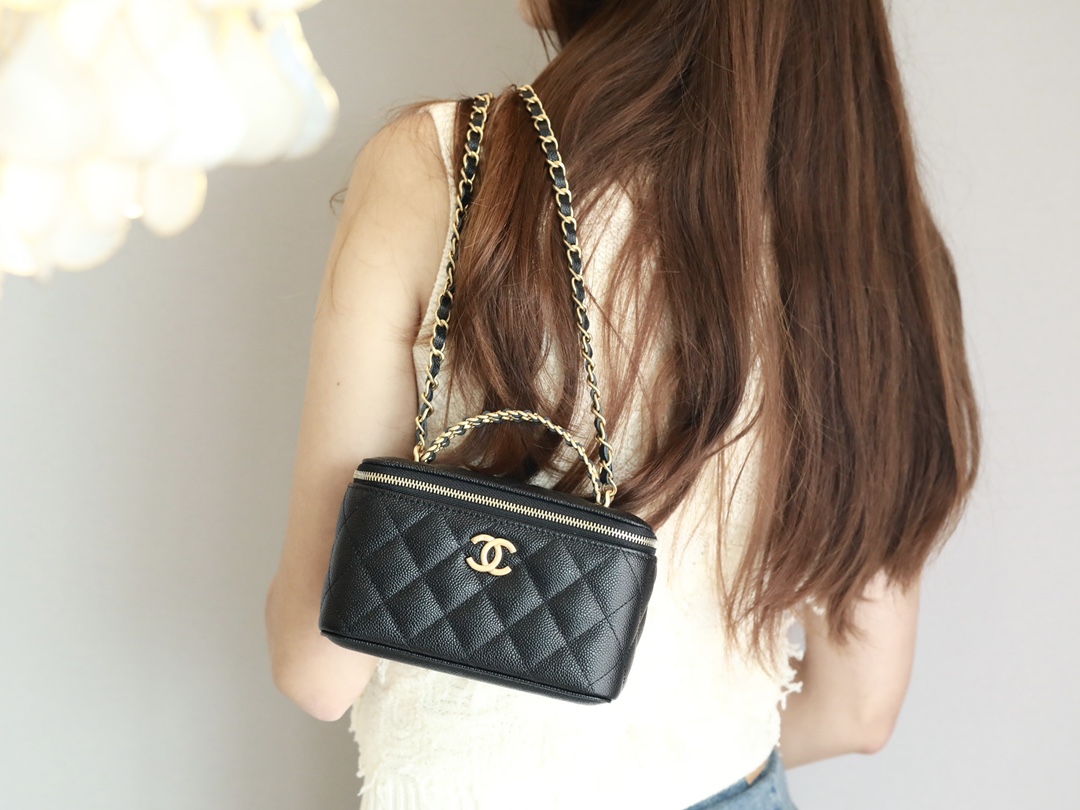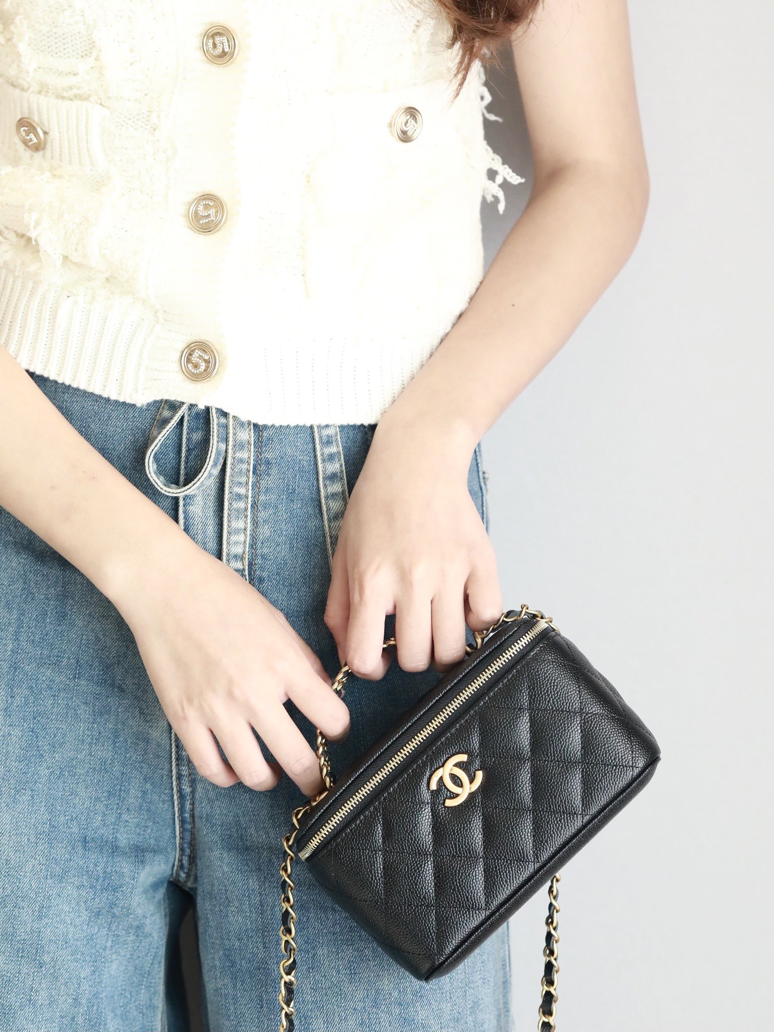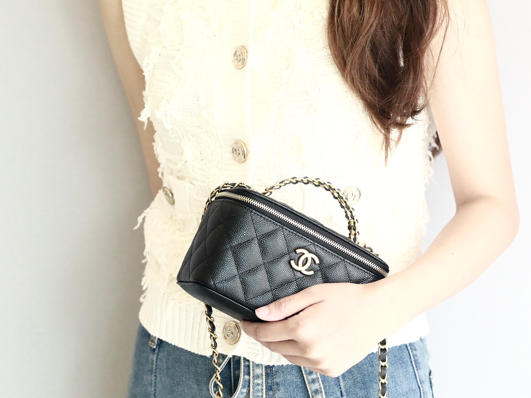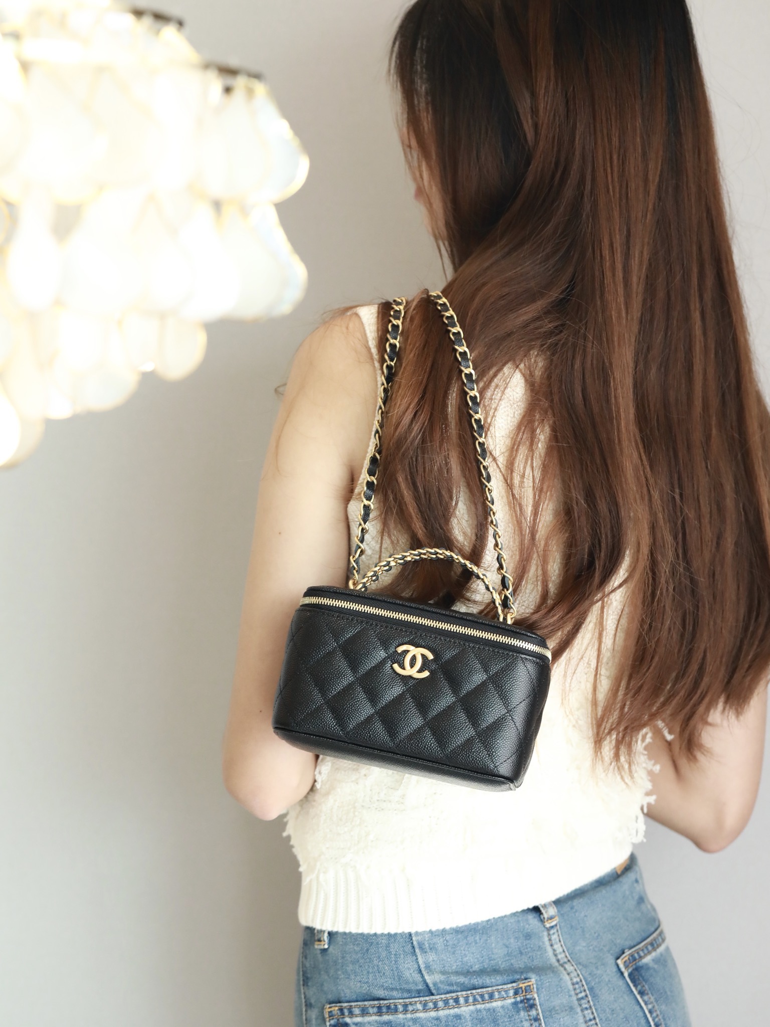 Chanel 22s vanity case Lemongrass bark long box BLACK