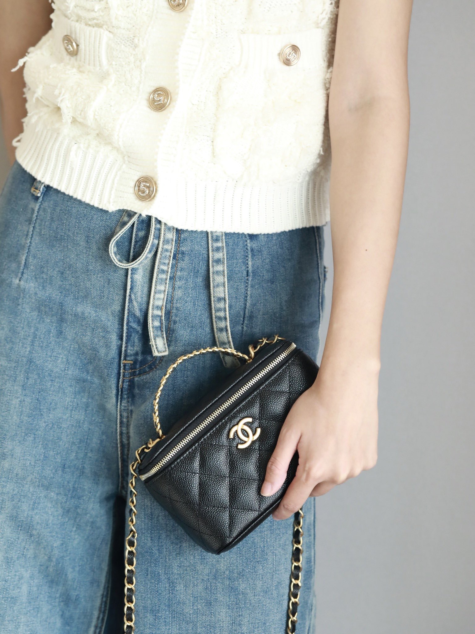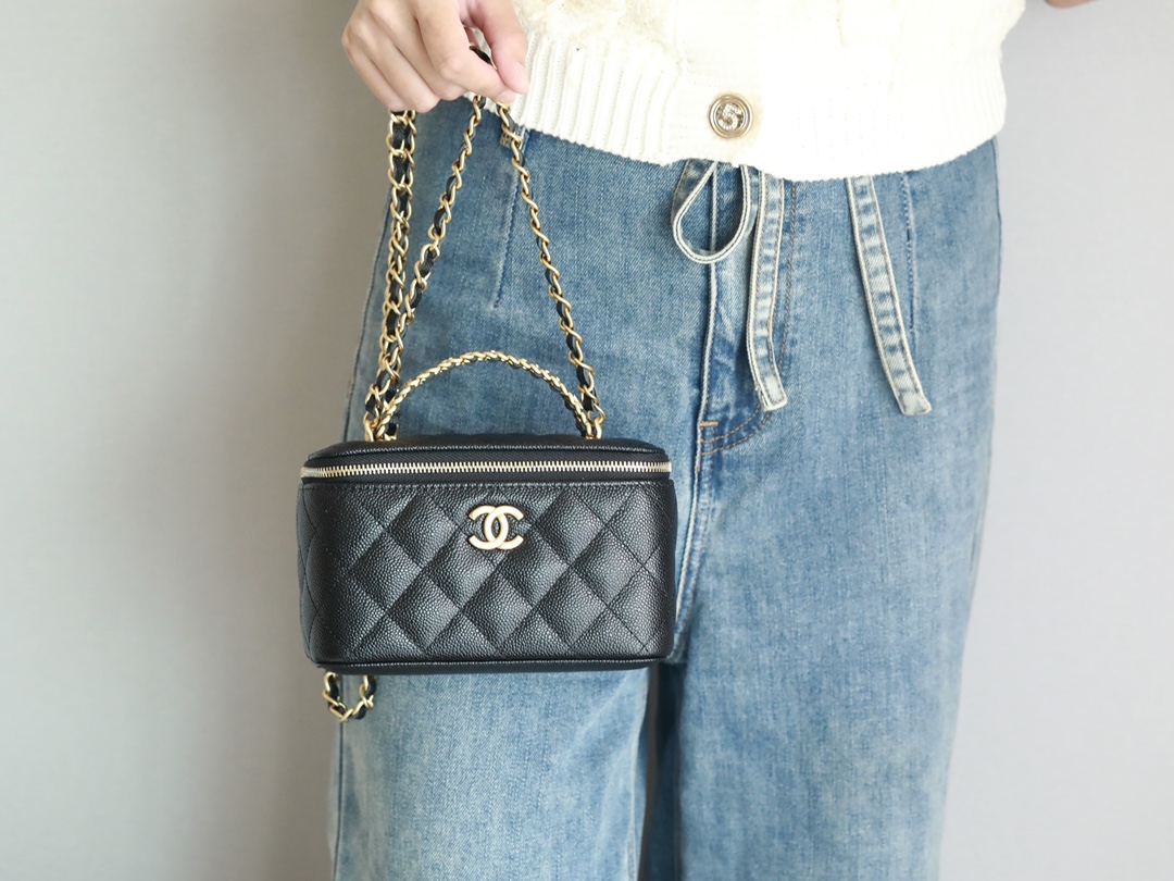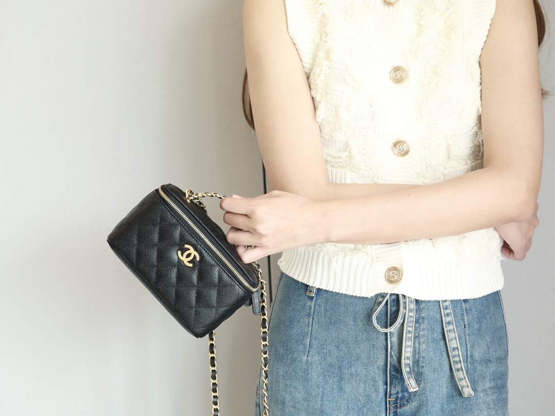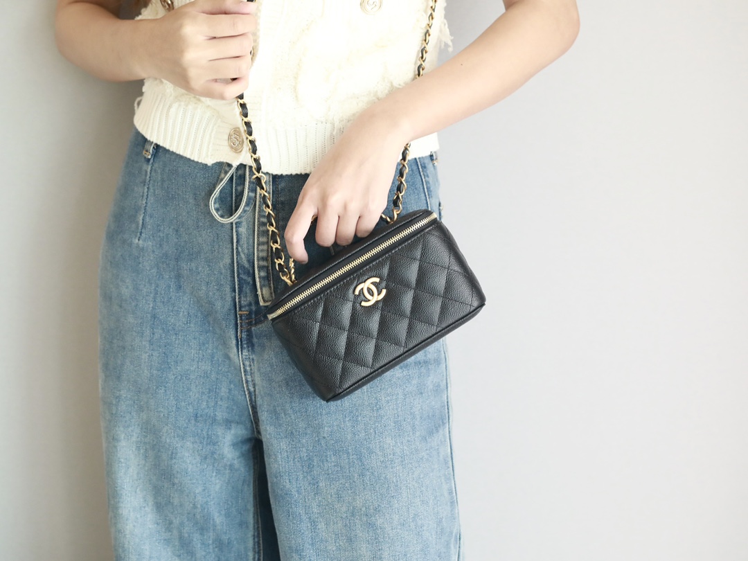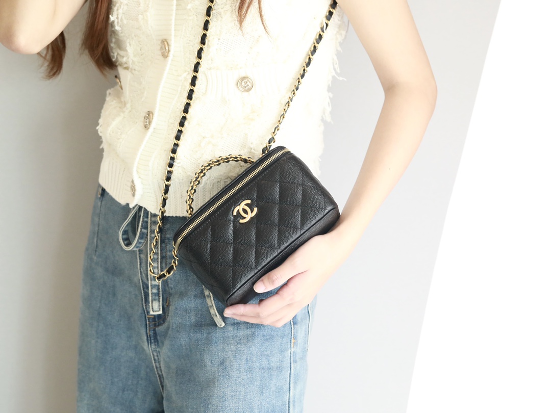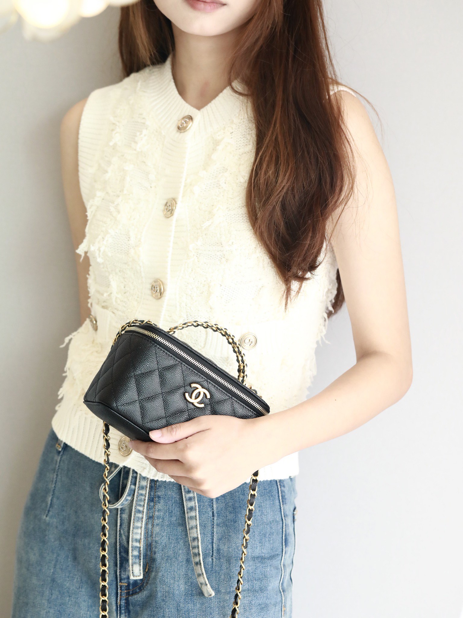 Chanel 22s vanity case Lemongrass bark long box BLACK