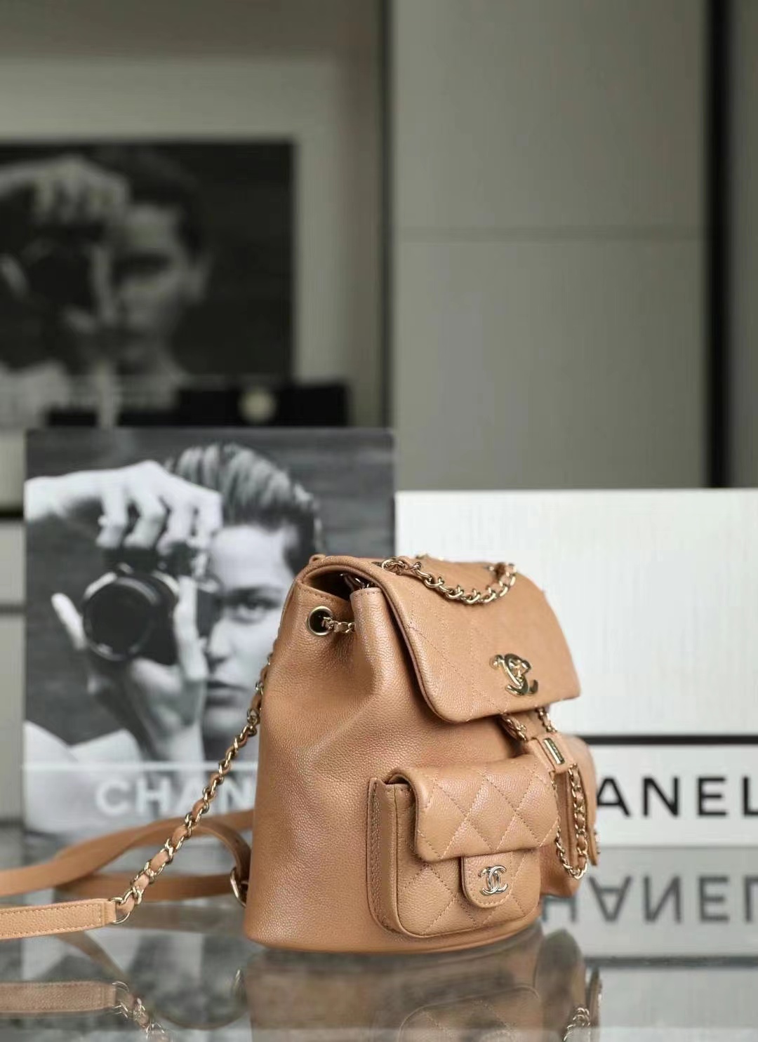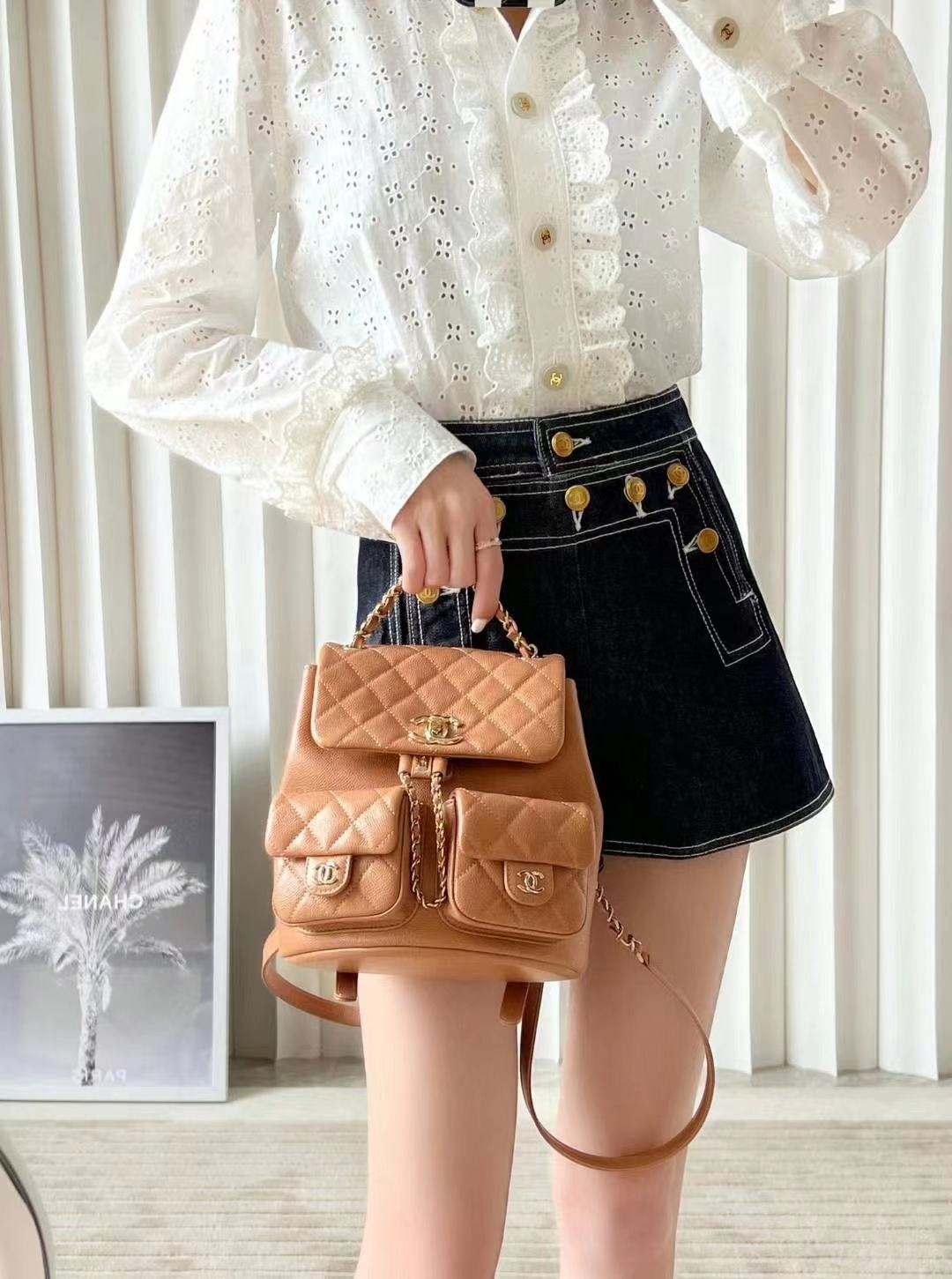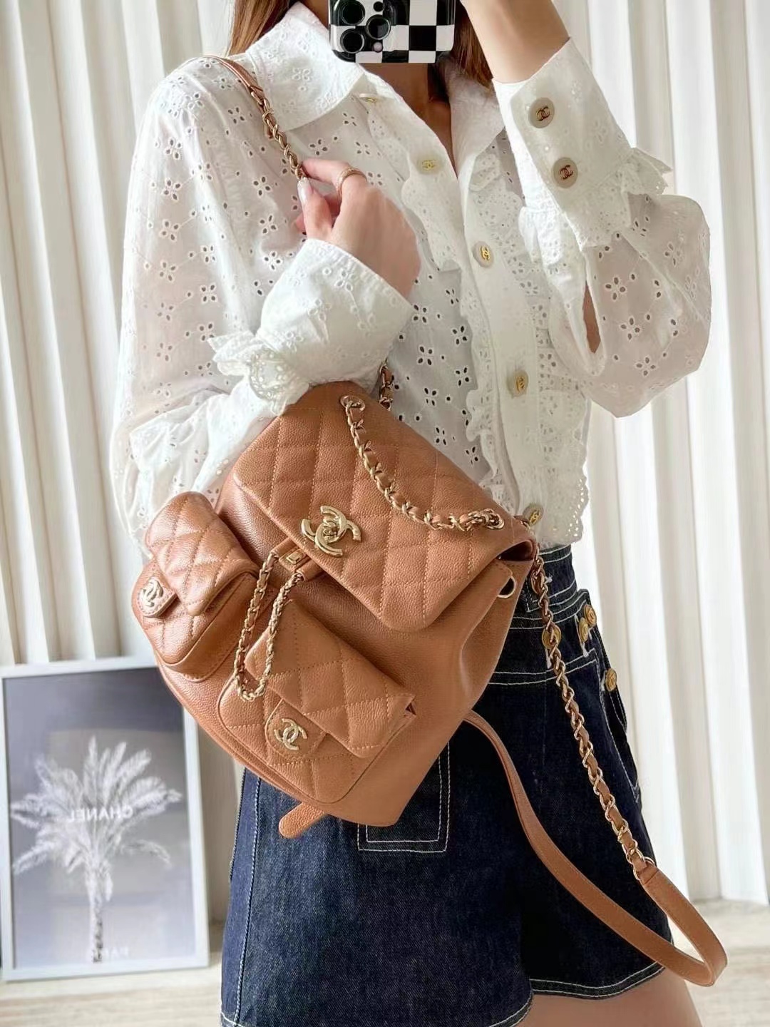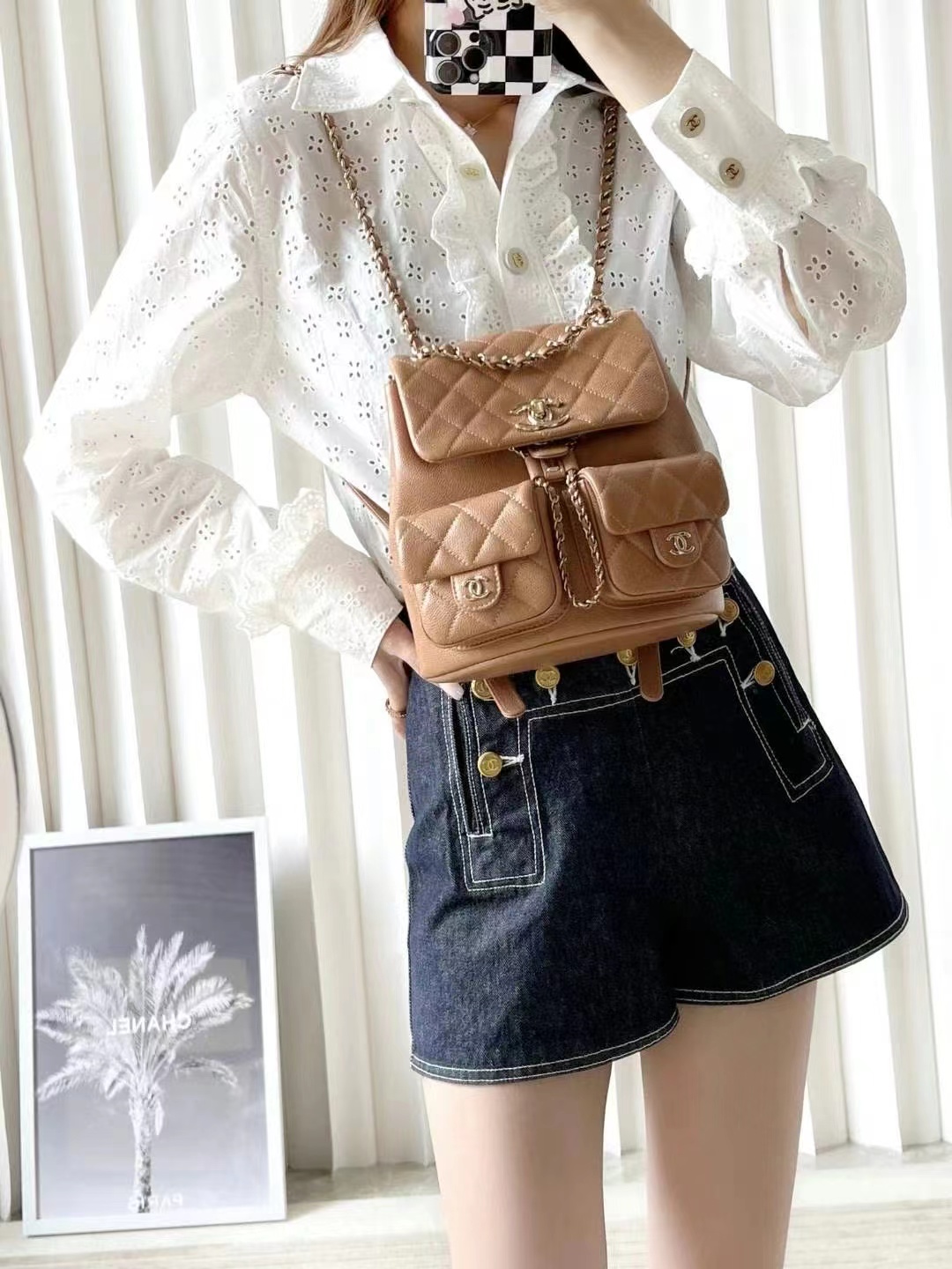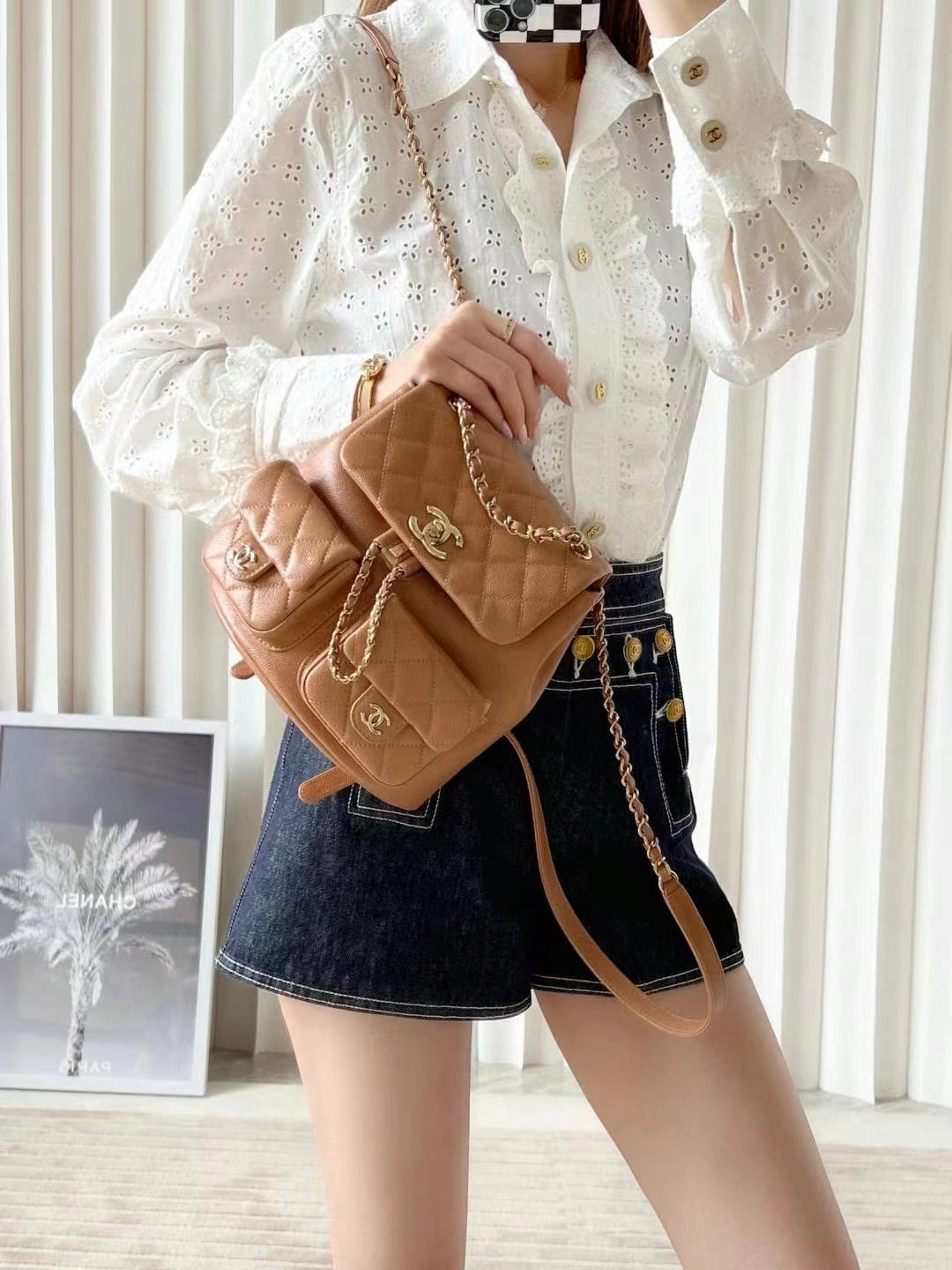 • Chanel 23P Two Pocket Vintage Bag caramel colour large