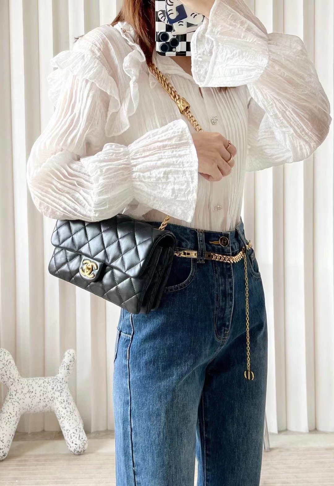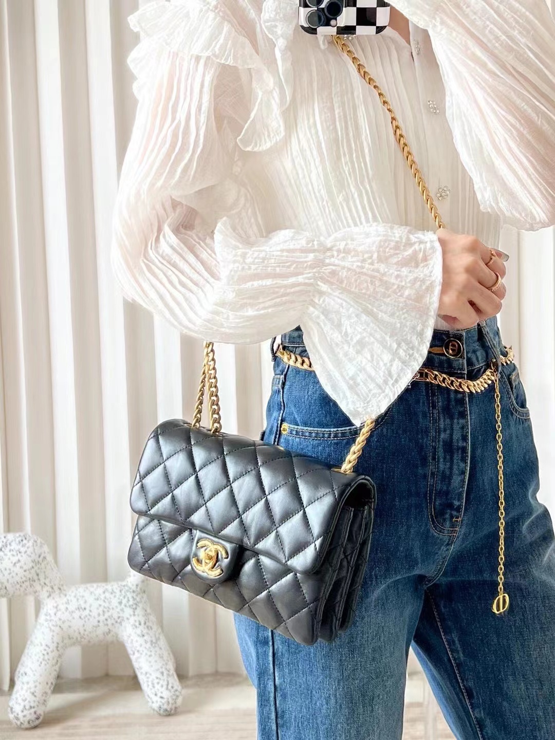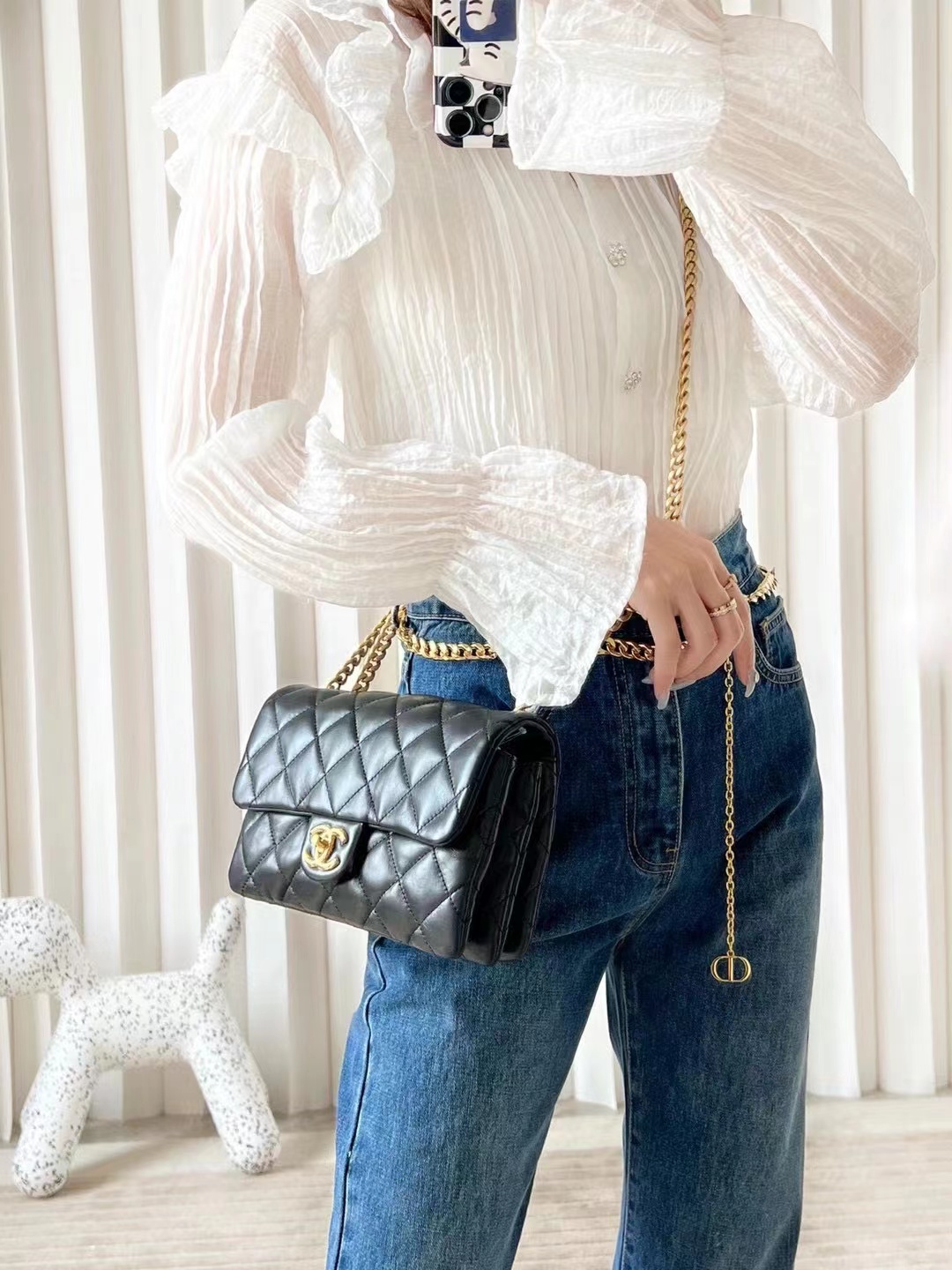 • Chanel classic flap bag small CF 22CM black sheepskin