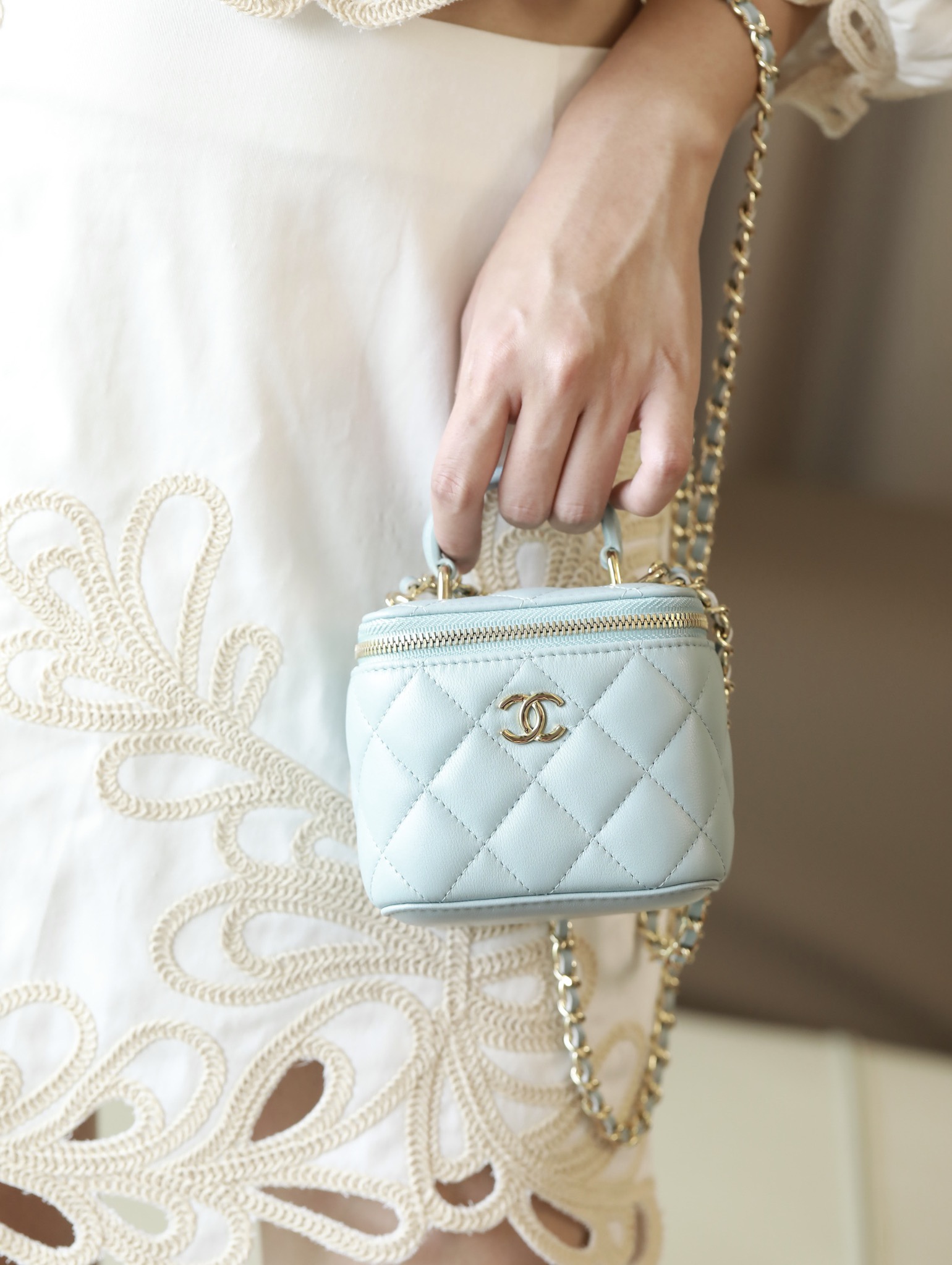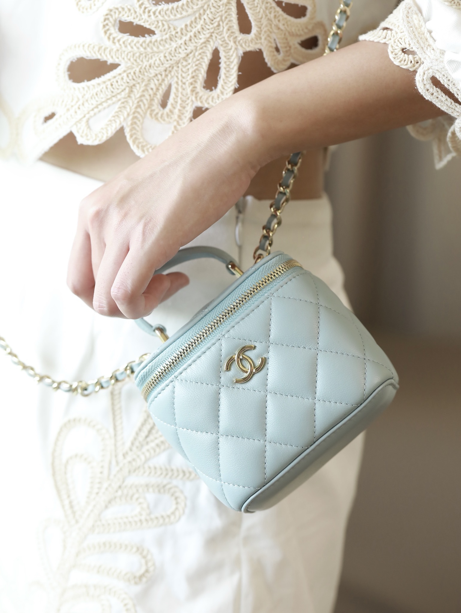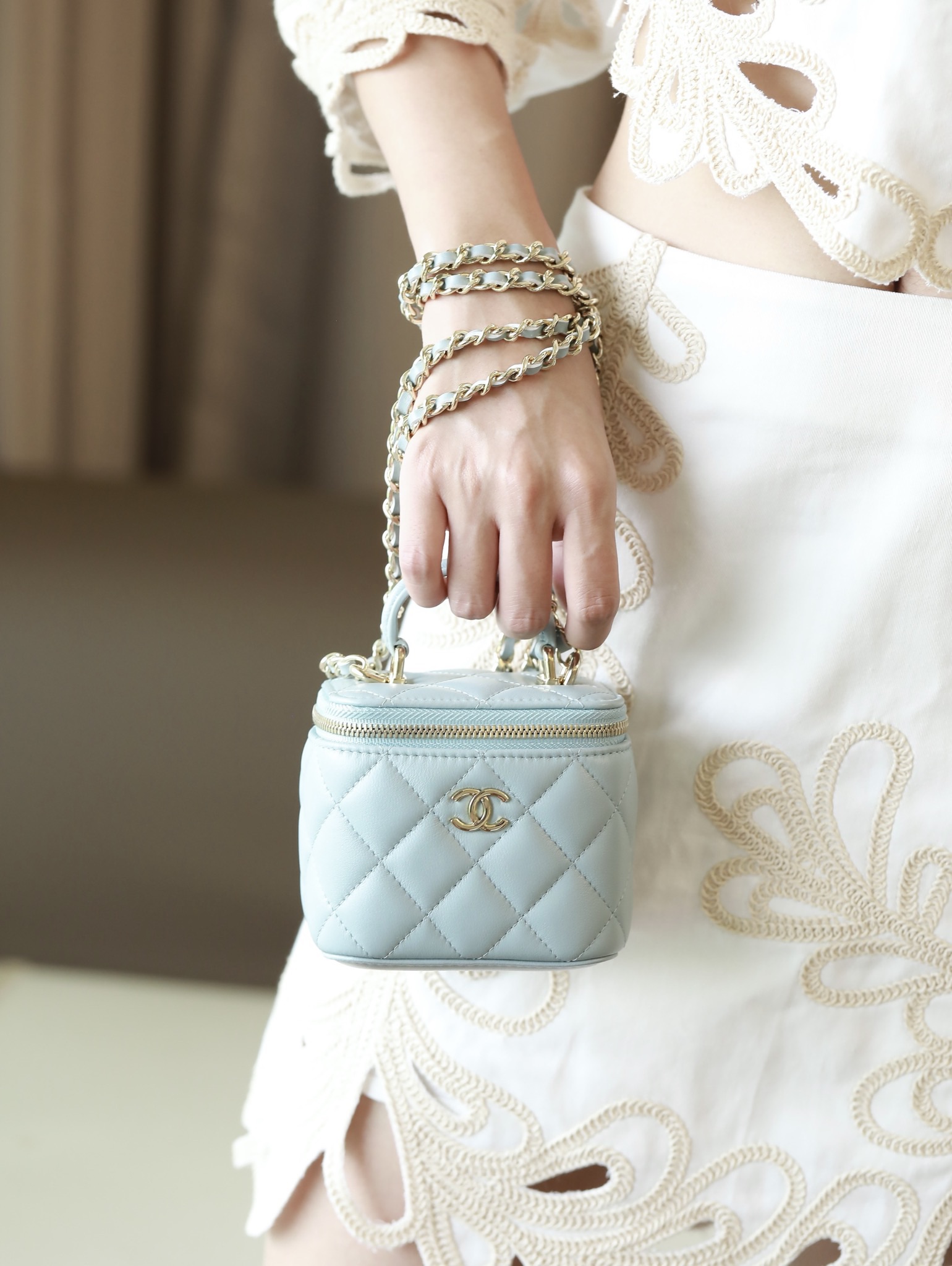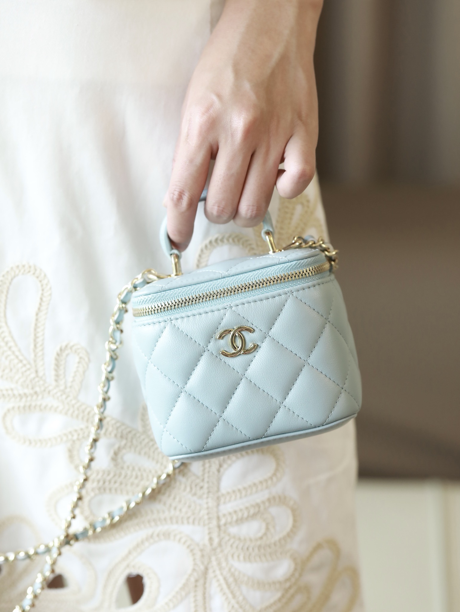 • CHANEL baby bule Lambskin Quilted Mini Vanity Gold Hardware