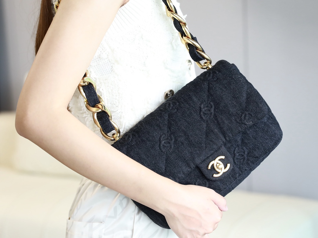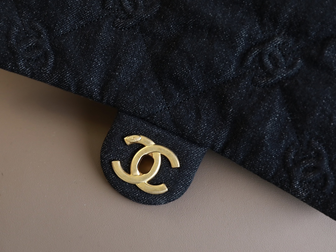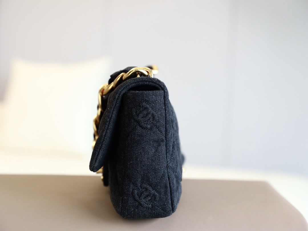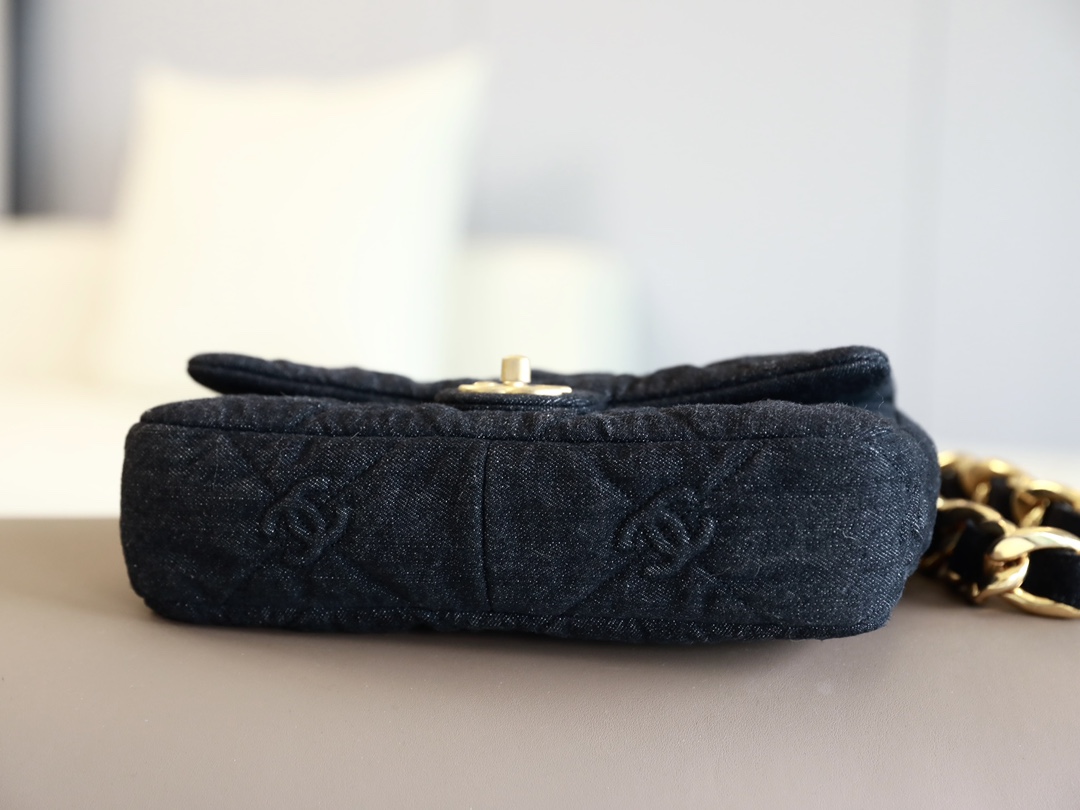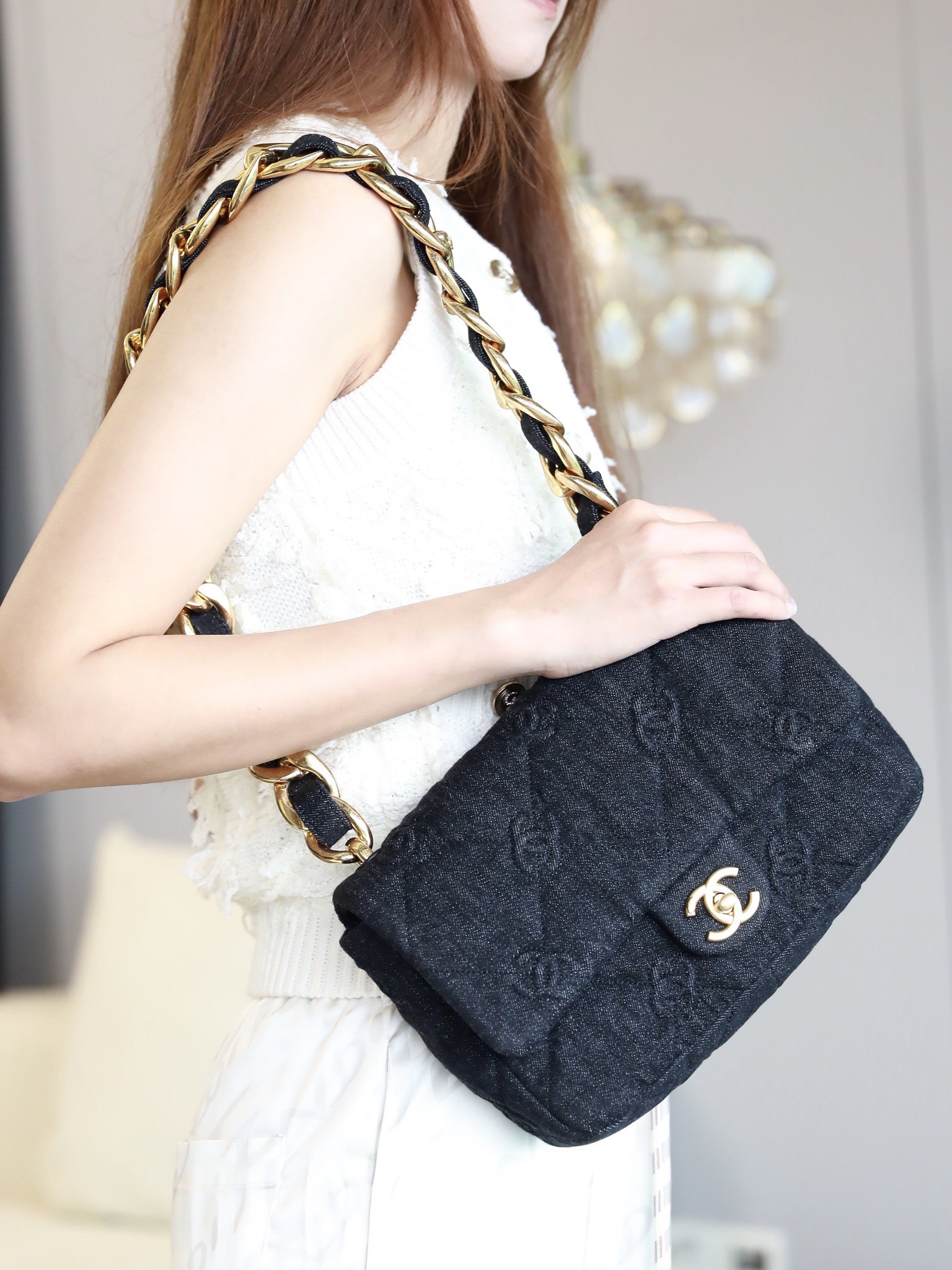 • CHANEL Blue CC Quilted Denim Medium Oversized Chain Flap Bag Gold Hardware