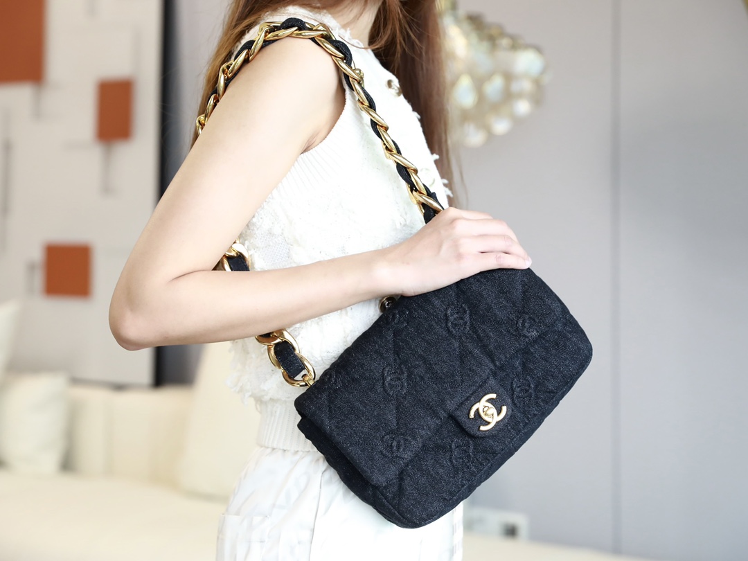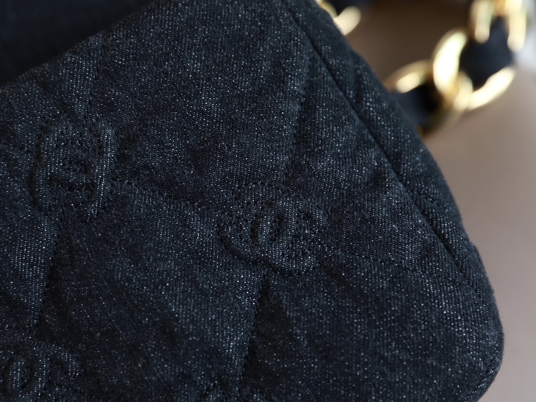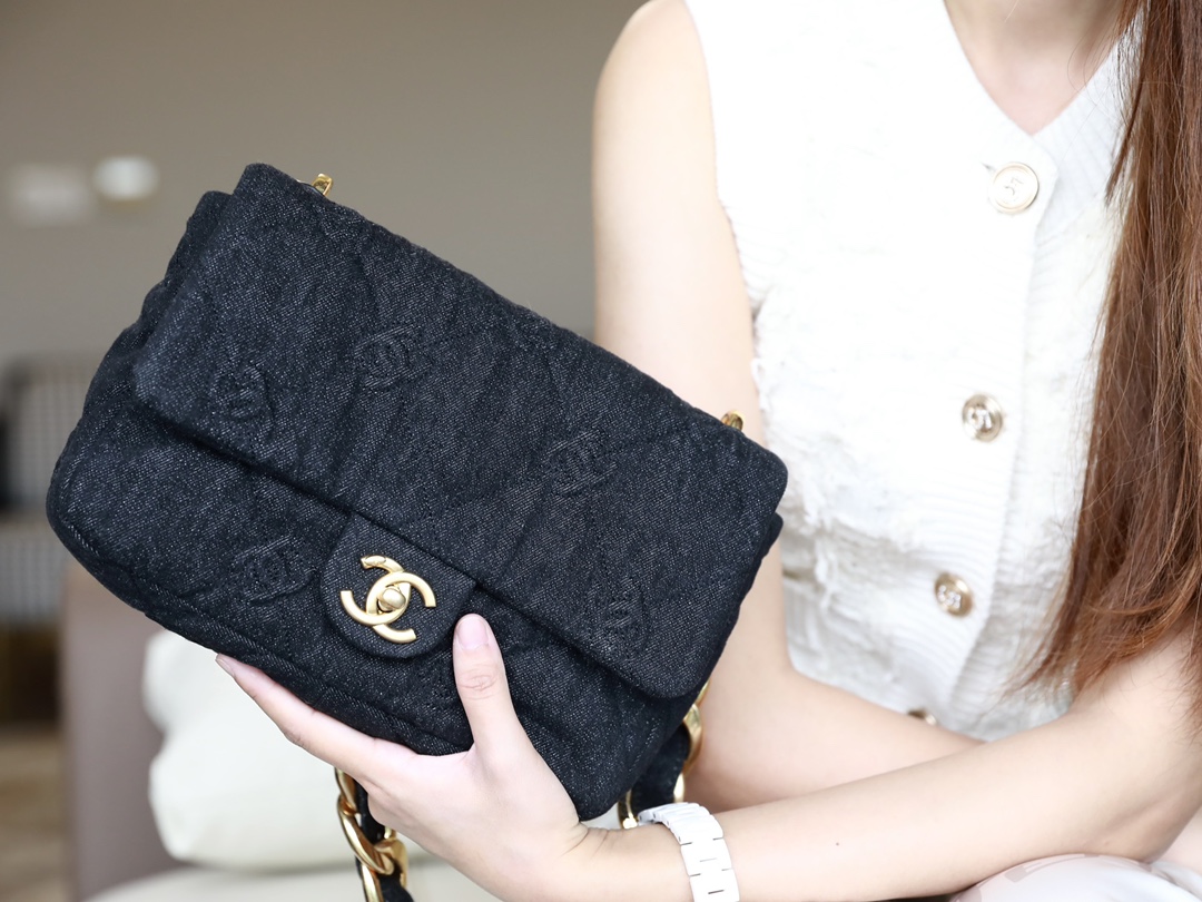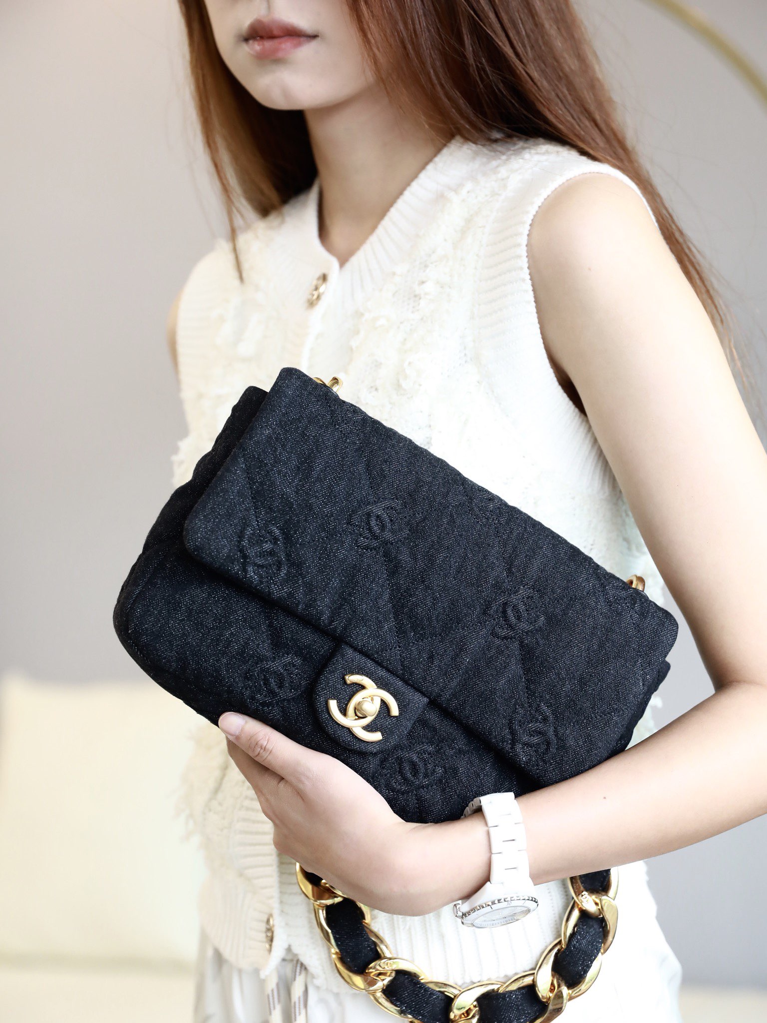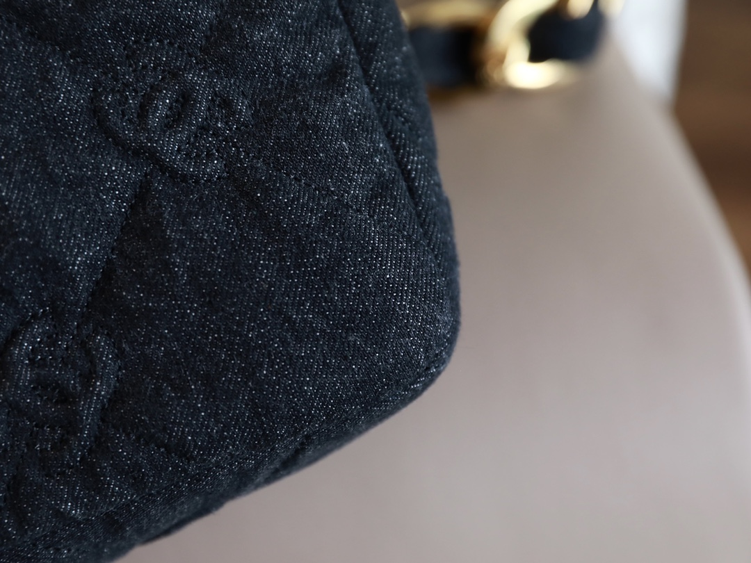 • CHANEL Blue CC Quilted Denim Medium Oversized Chain Flap Bag Gold Hardware