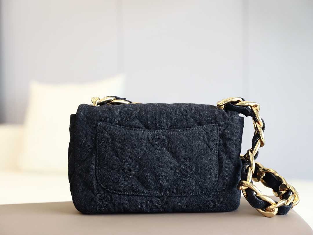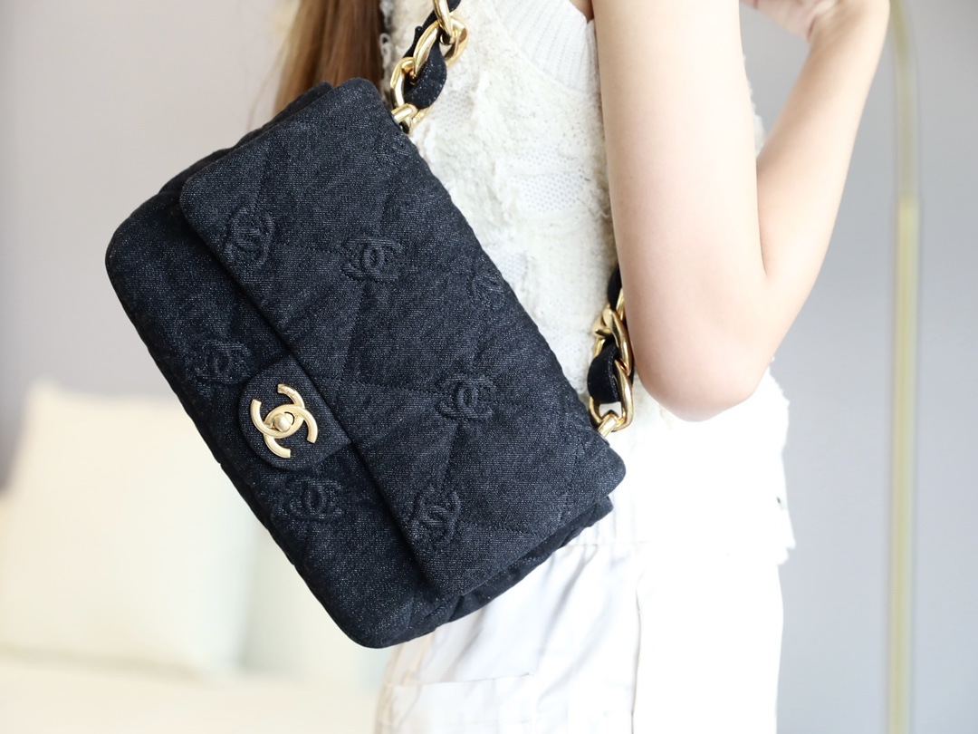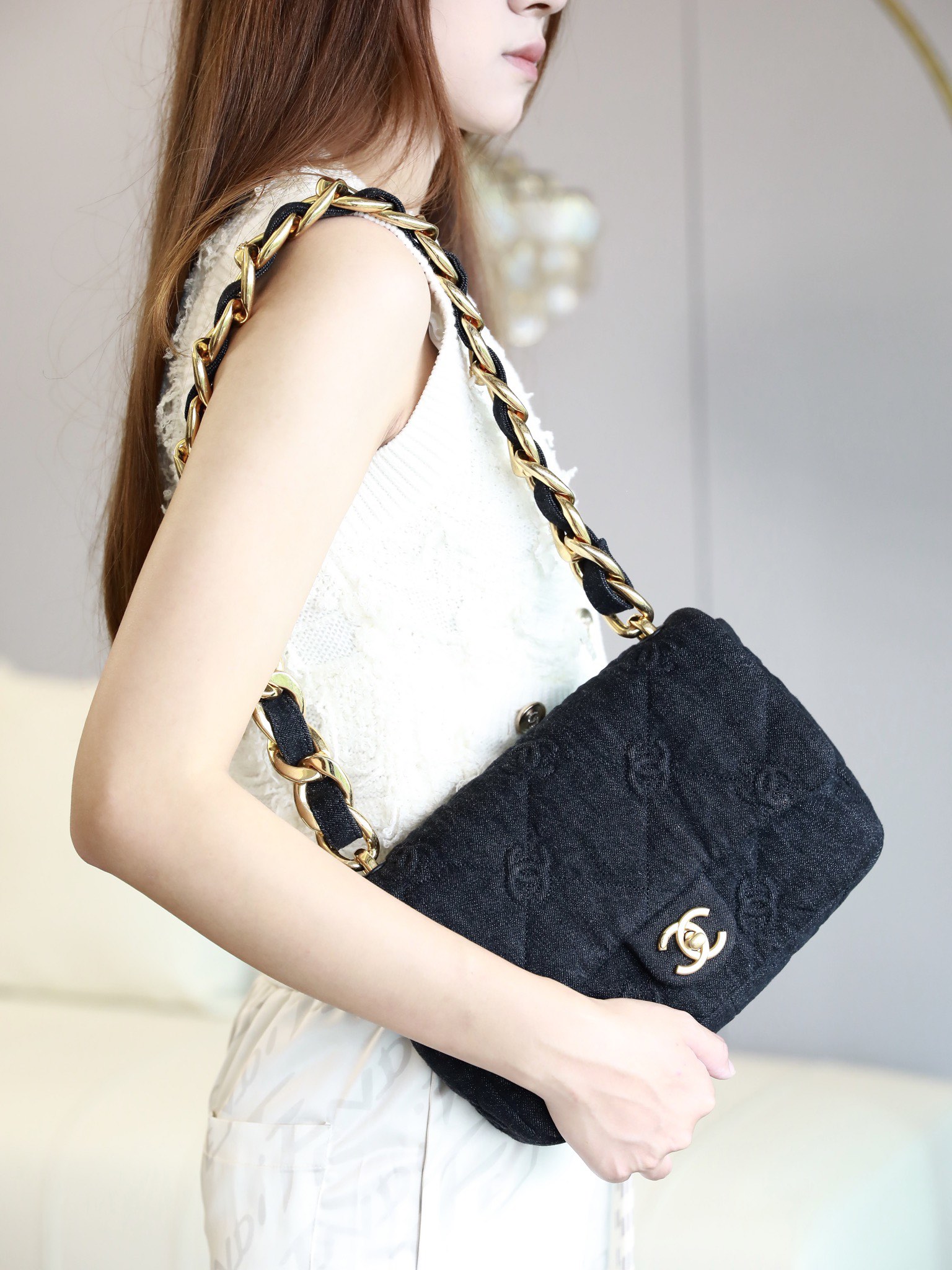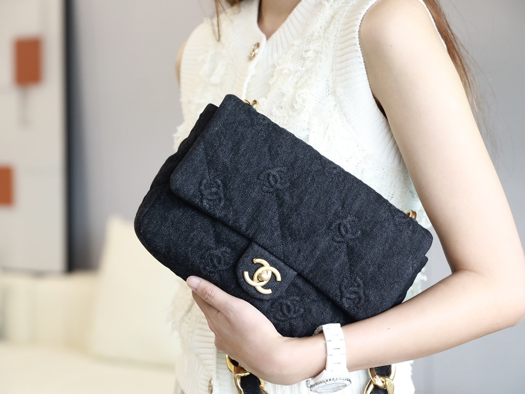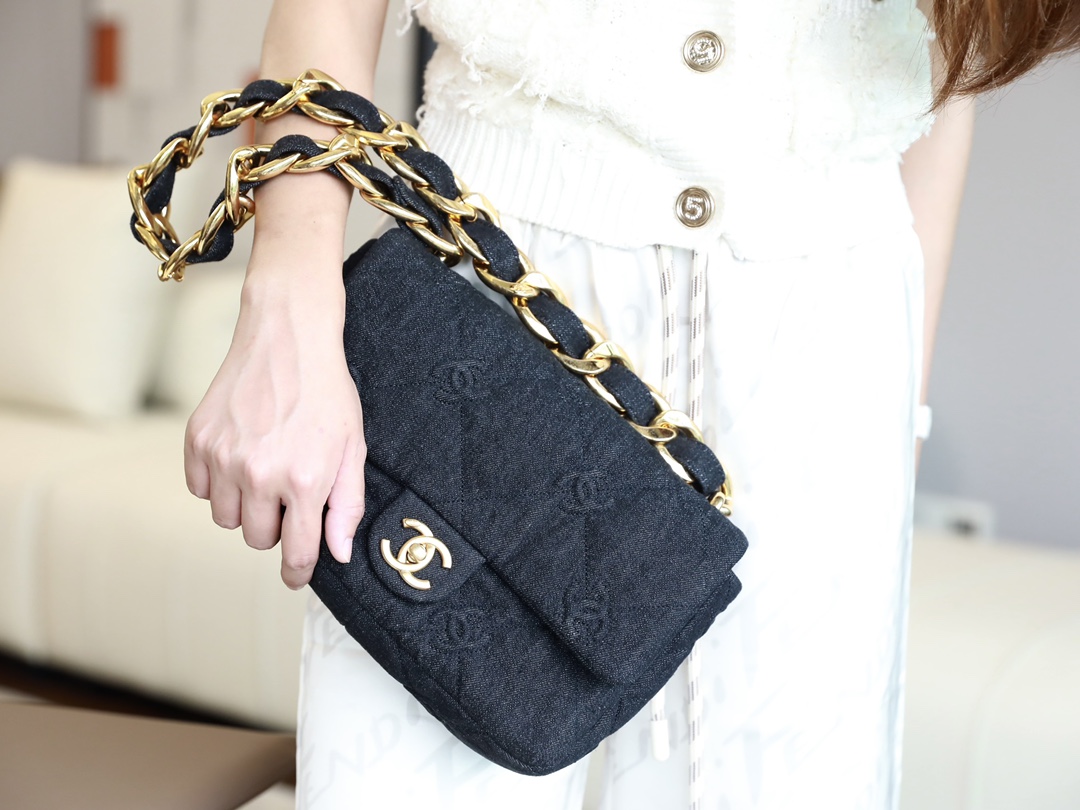 • CHANEL Blue CC Quilted Denim Medium Oversized Chain Flap Bag Gold Hardware