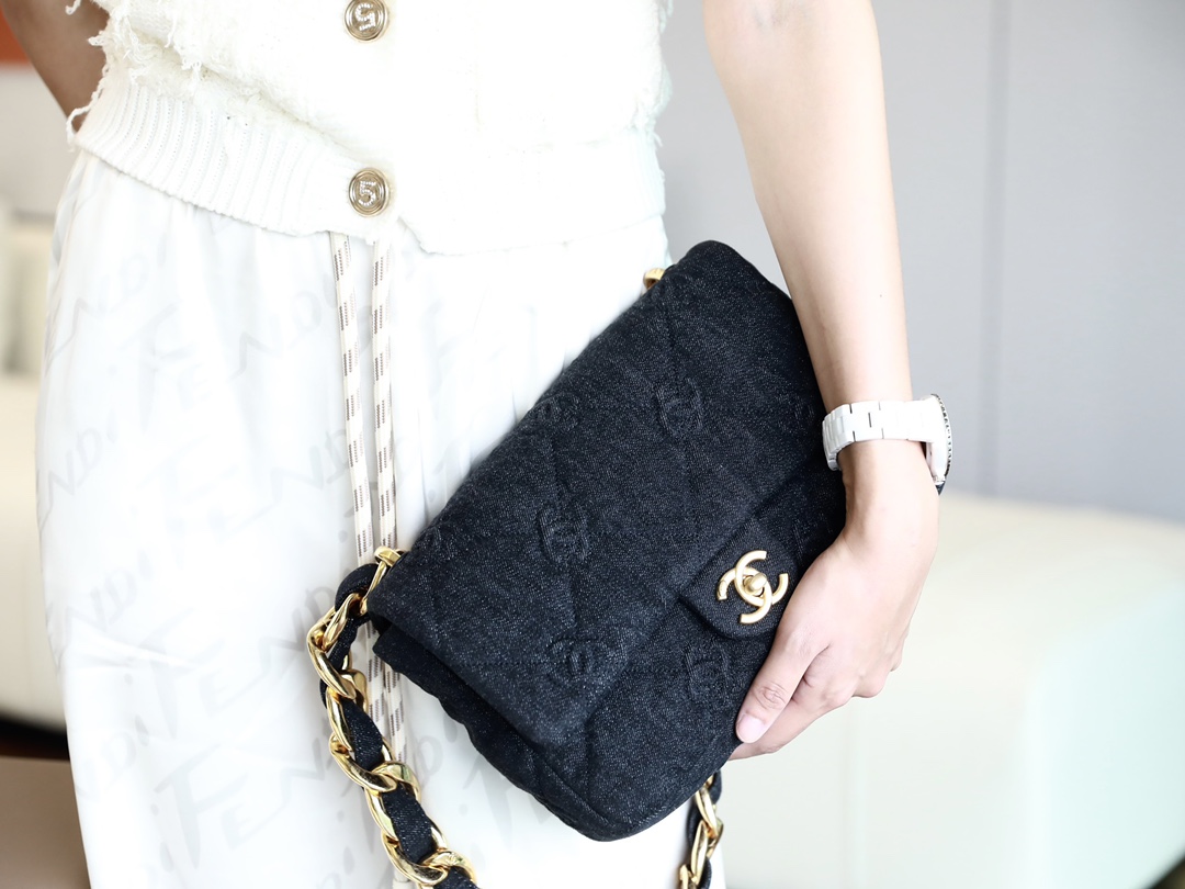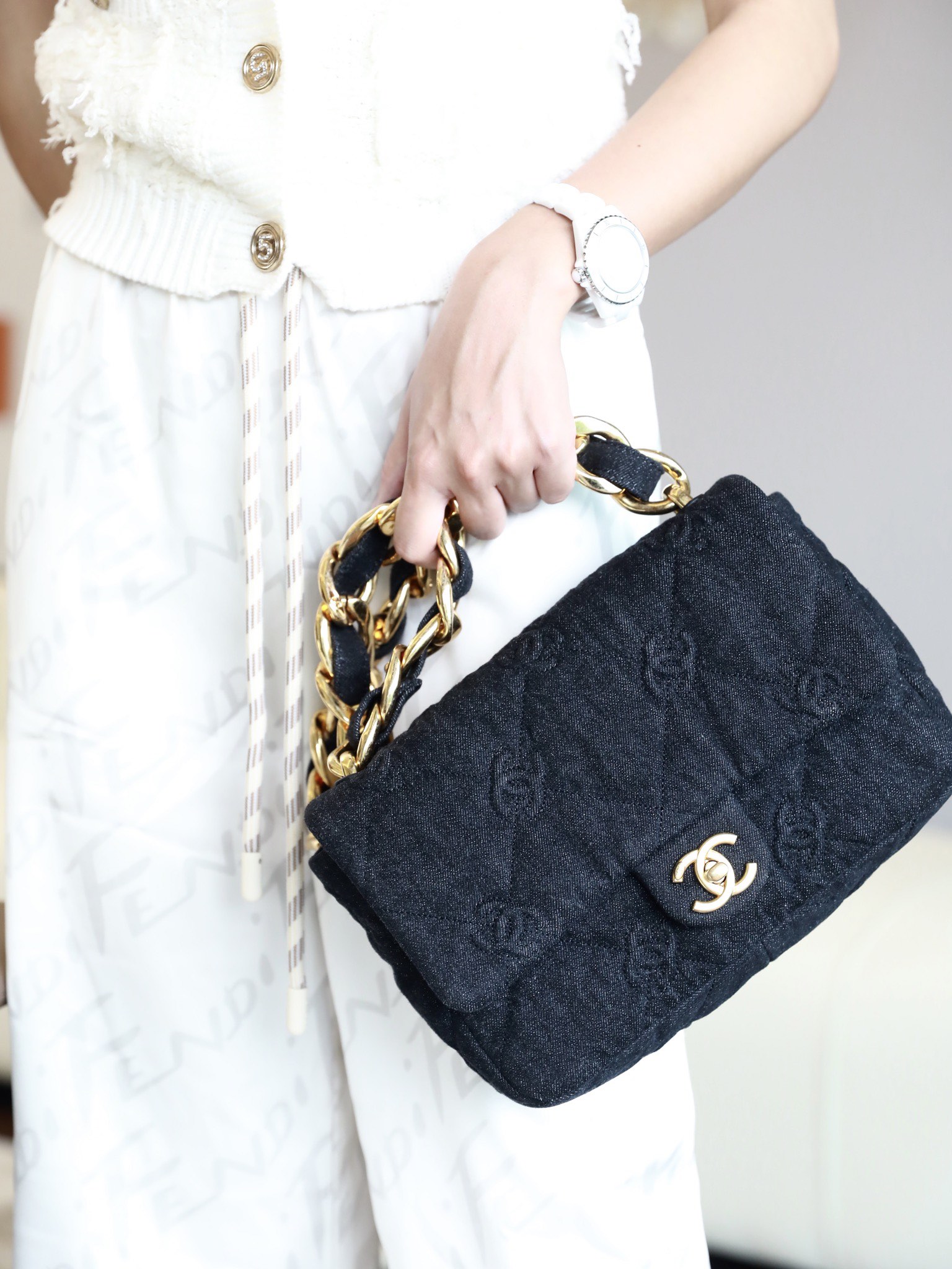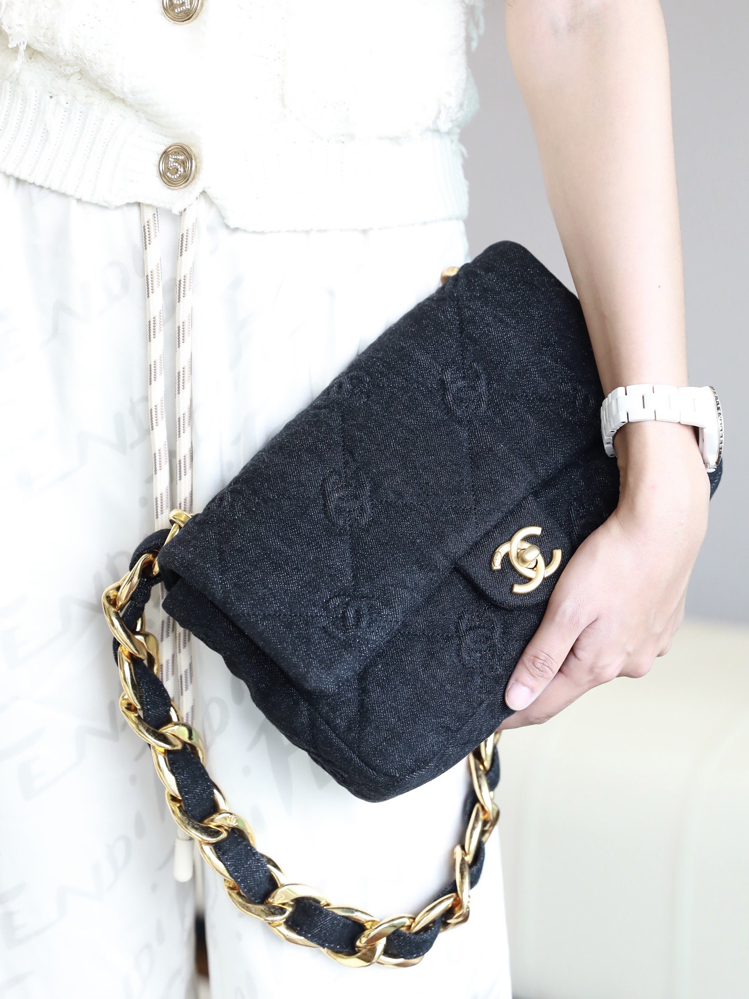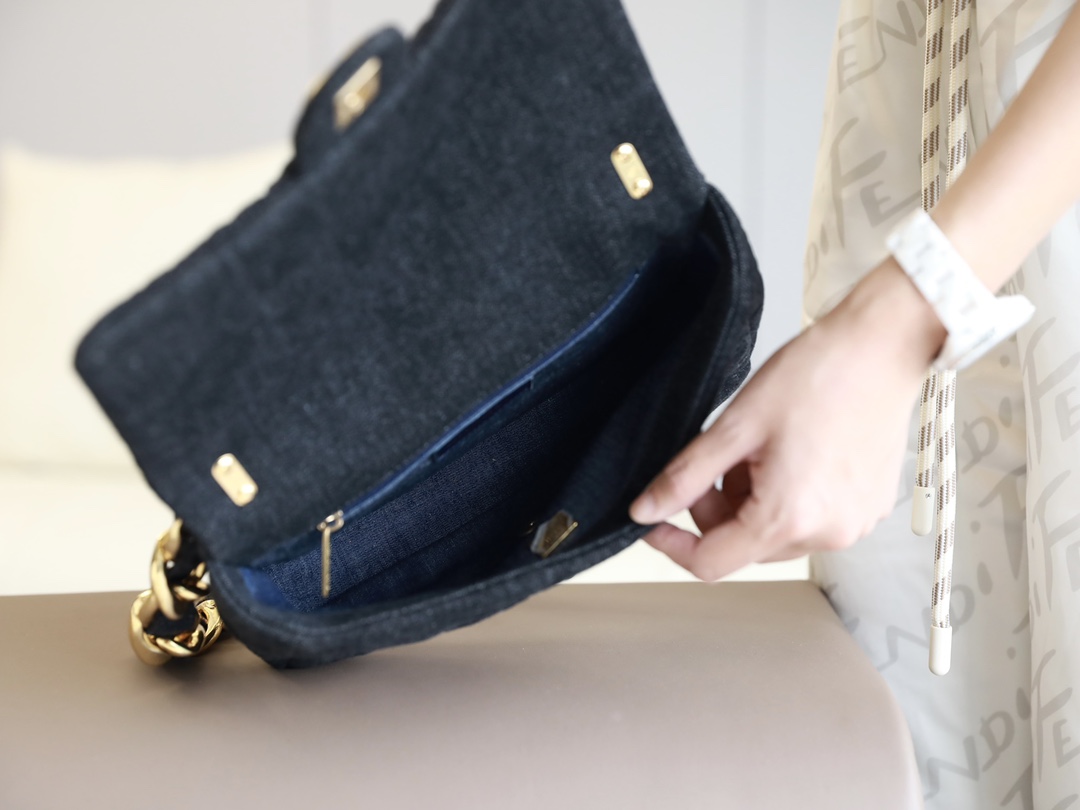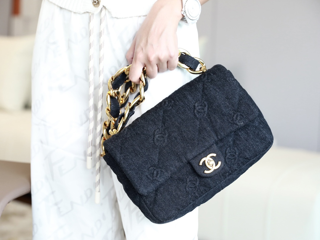 • CHANEL Blue CC Quilted Denim Medium Oversized Chain Flap Bag Gold Hardware