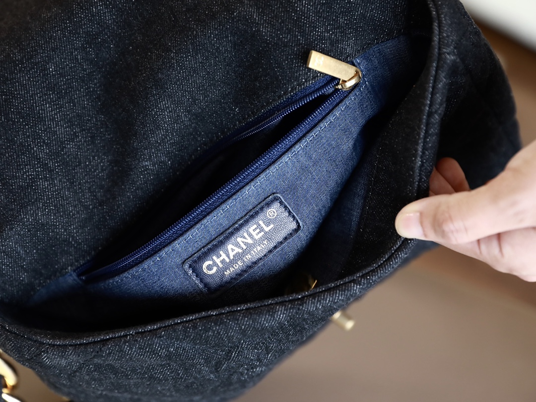 CHANEL Blue CC Quilted Denim Medium Oversized Chain Flap Bag Gold Hardware