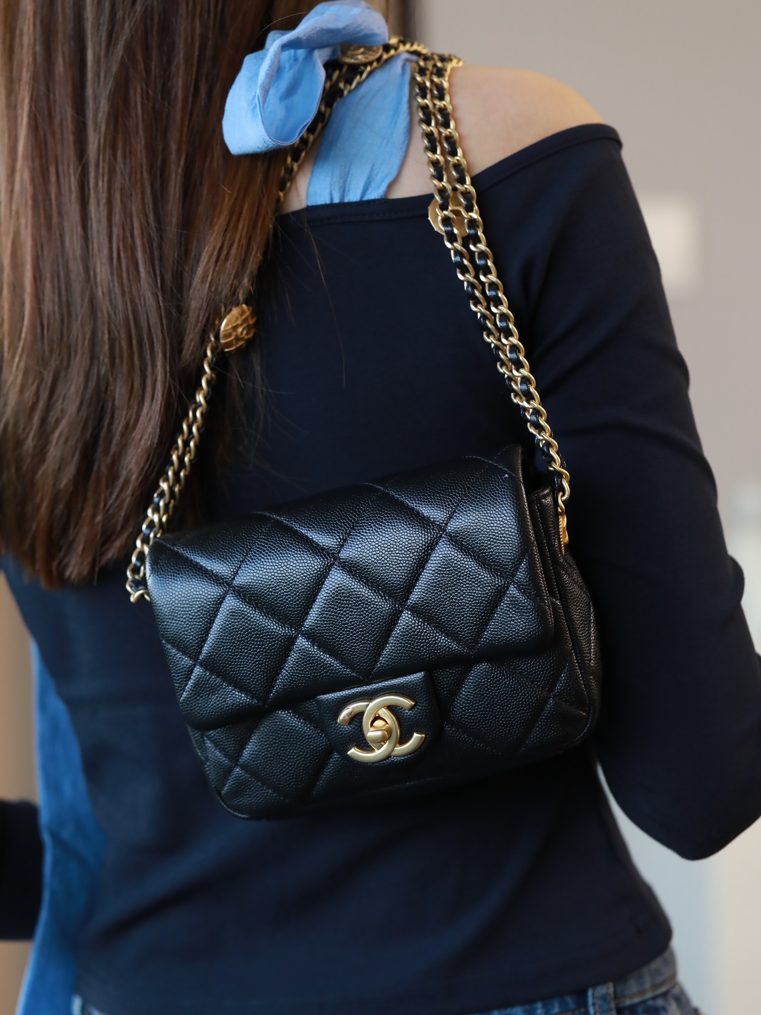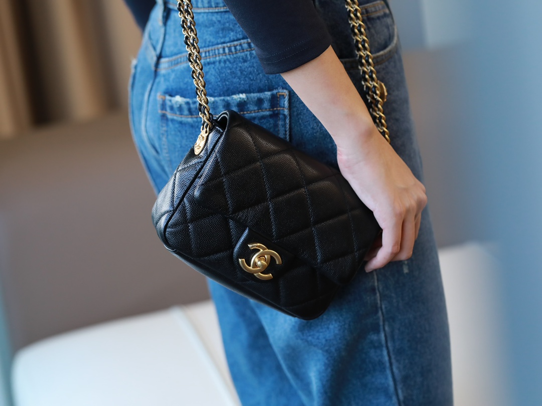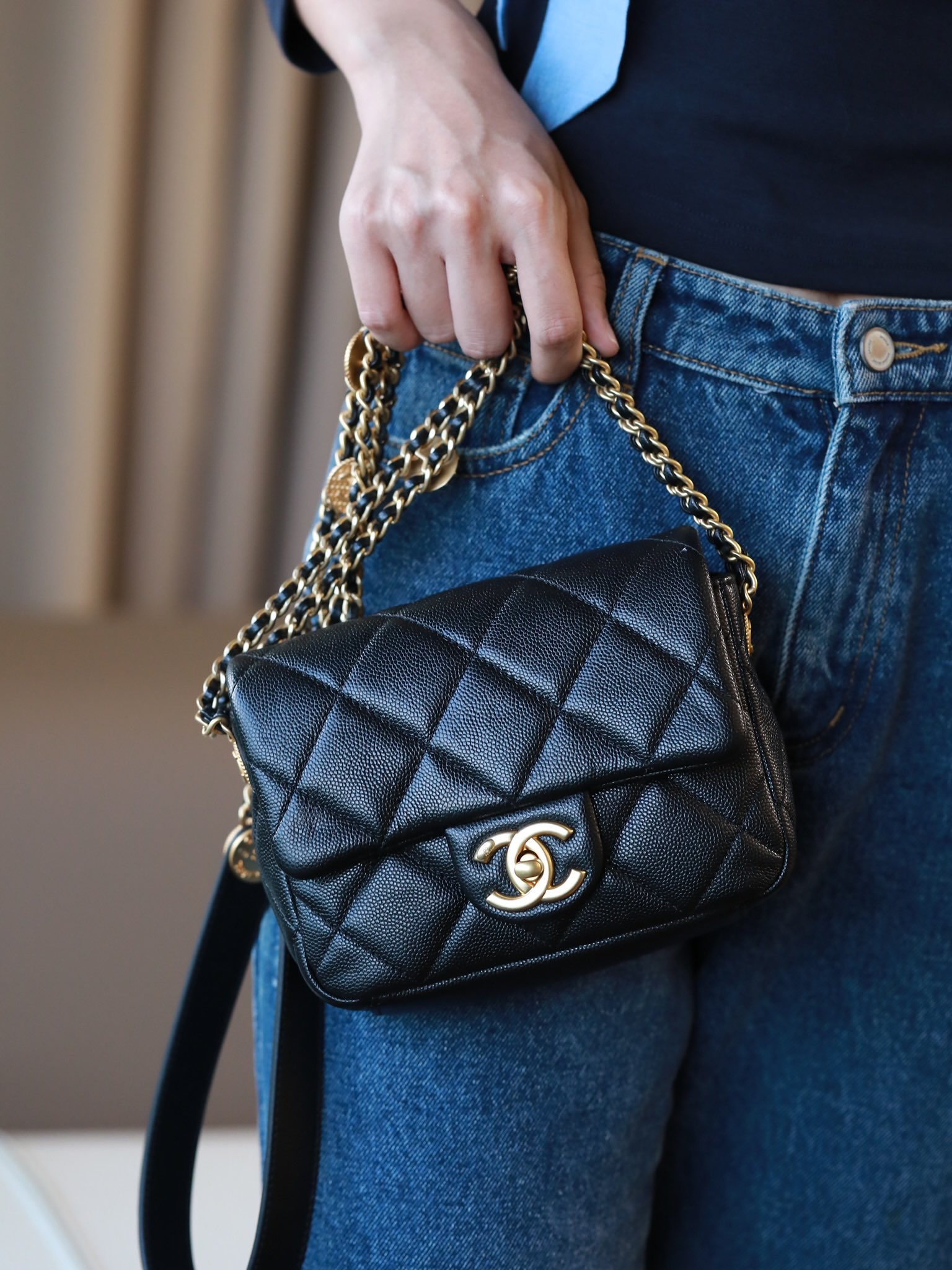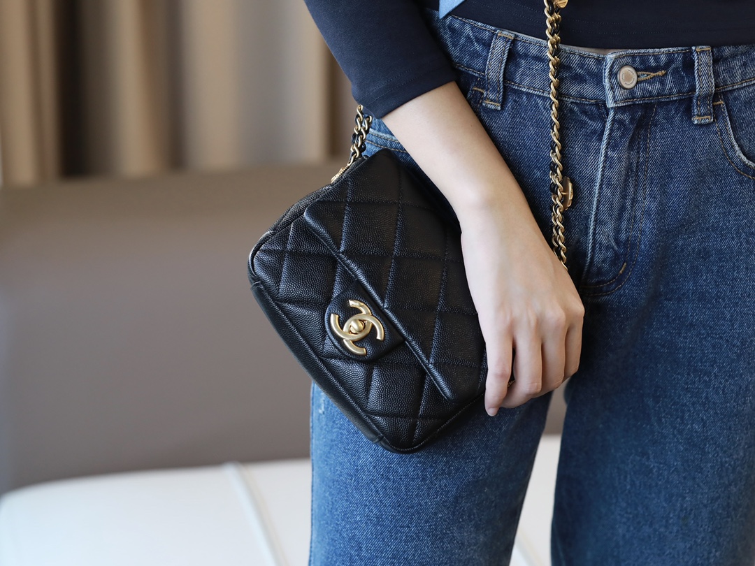 • CHANEL Caviar Quilted Mini Chain Soul Flap black