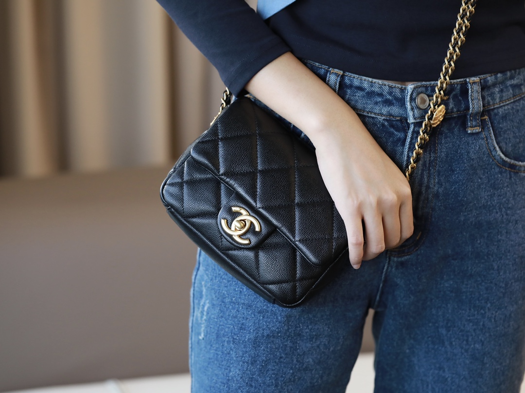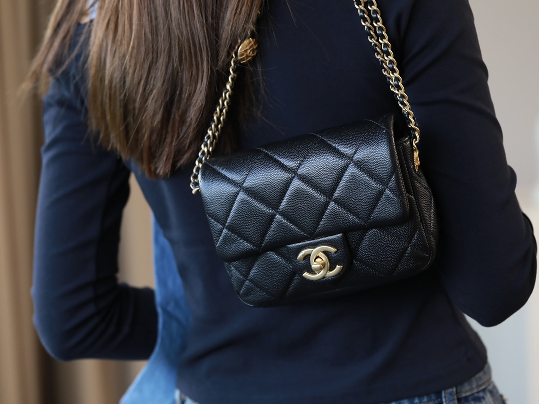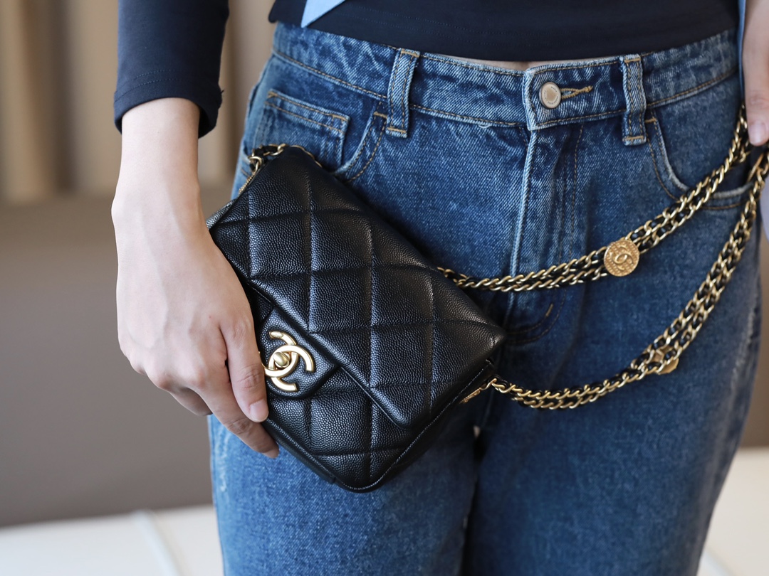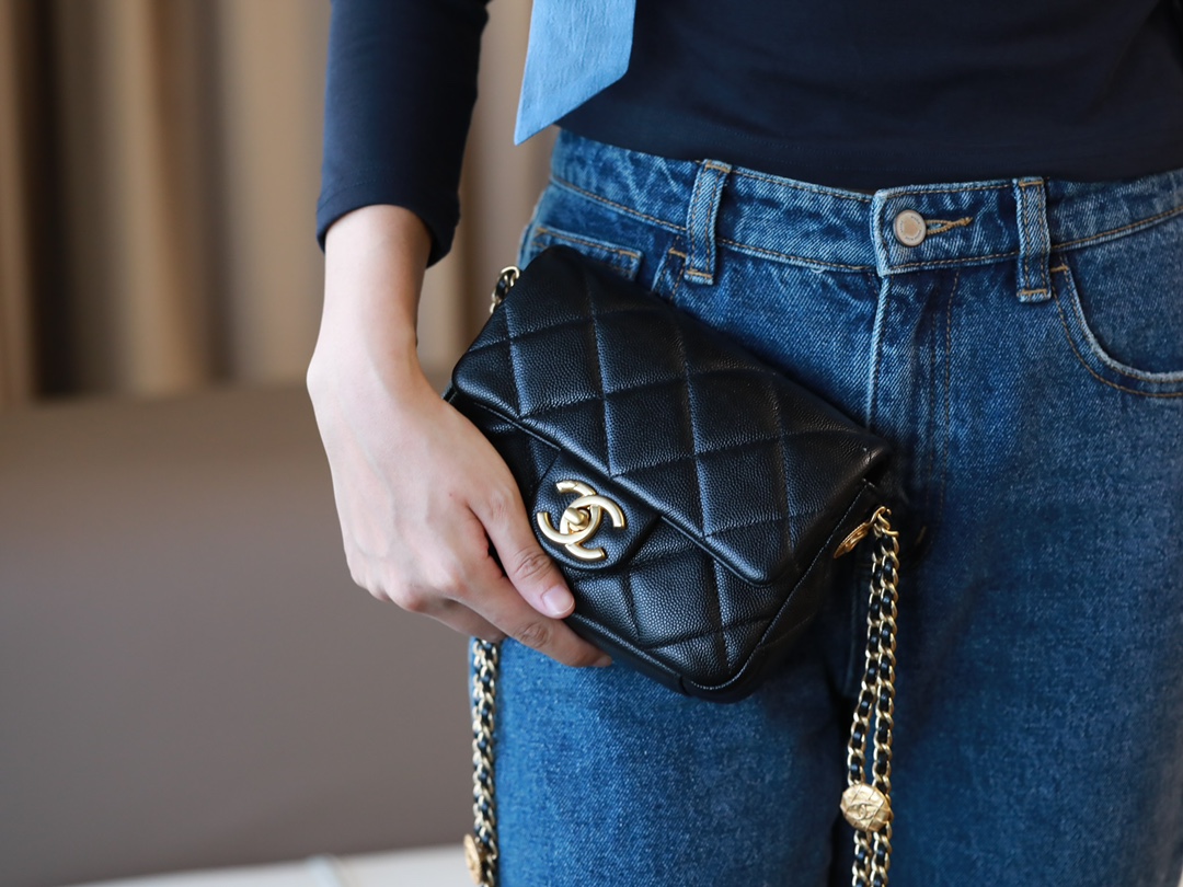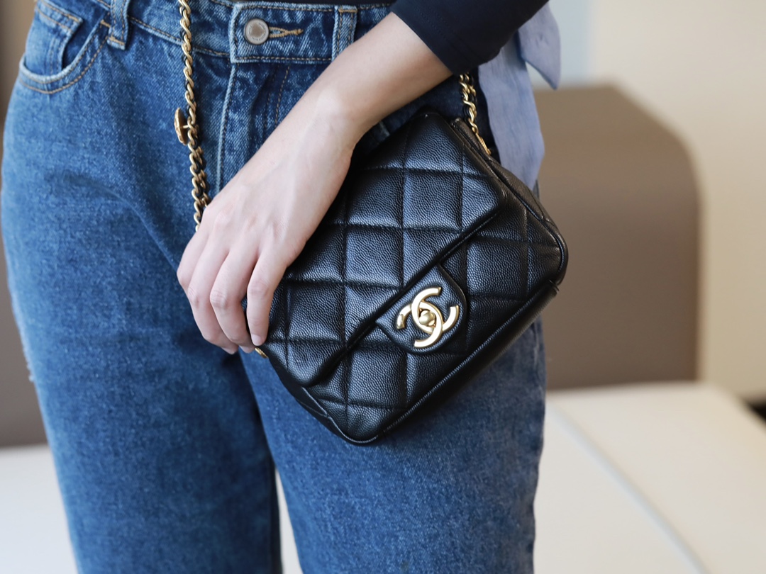• CHANEL Caviar Quilted Mini Chain Soul Flap black