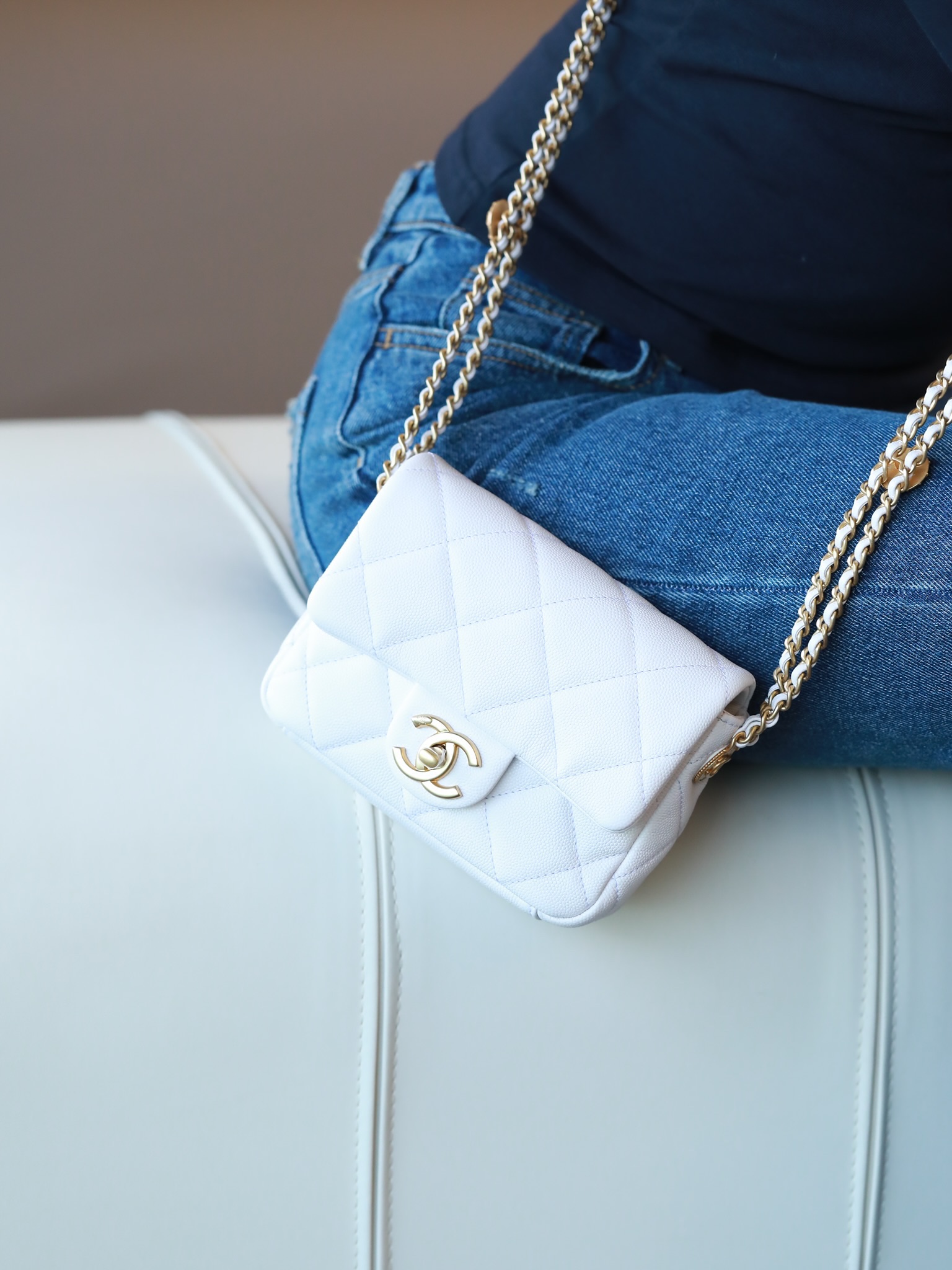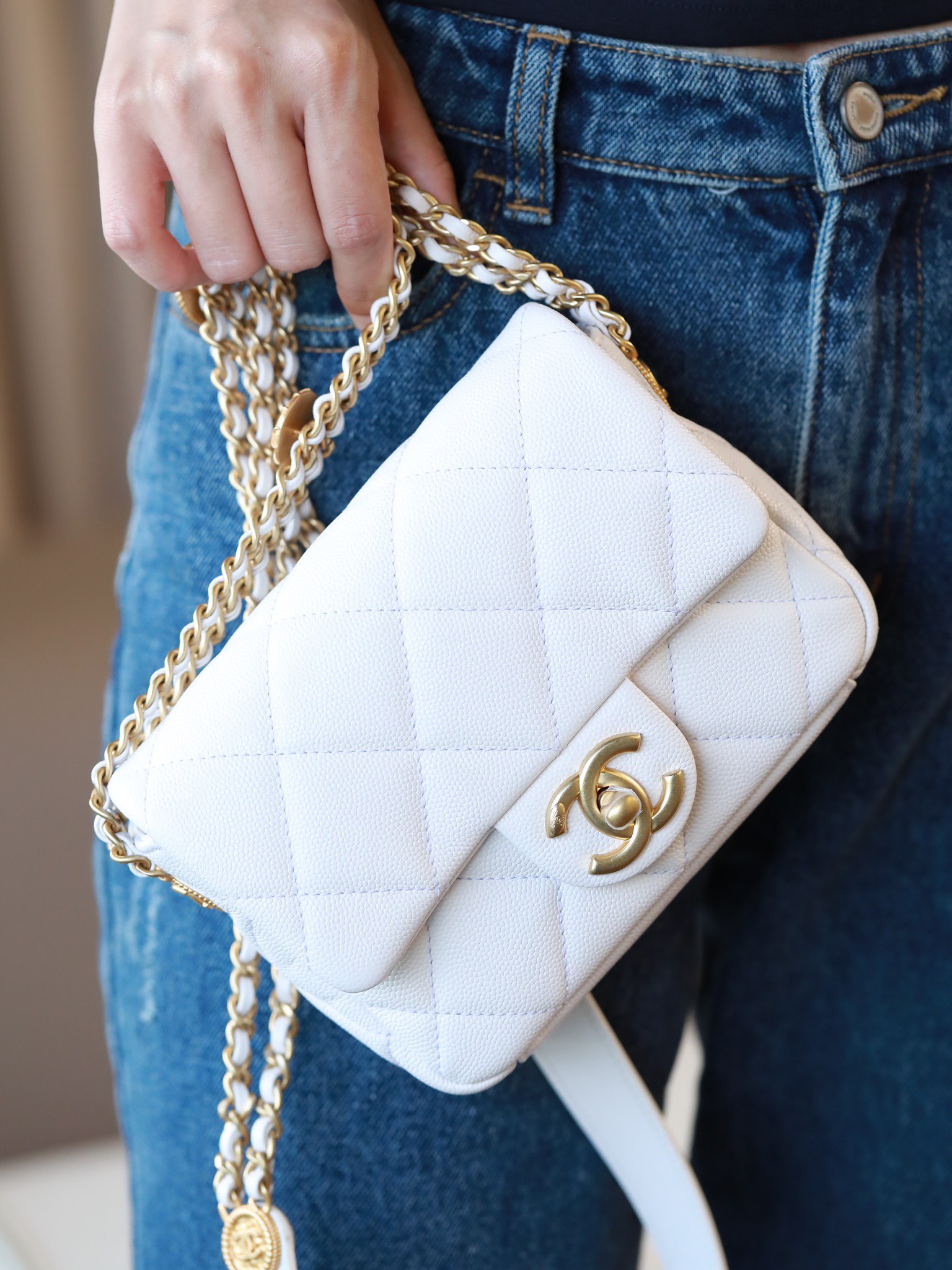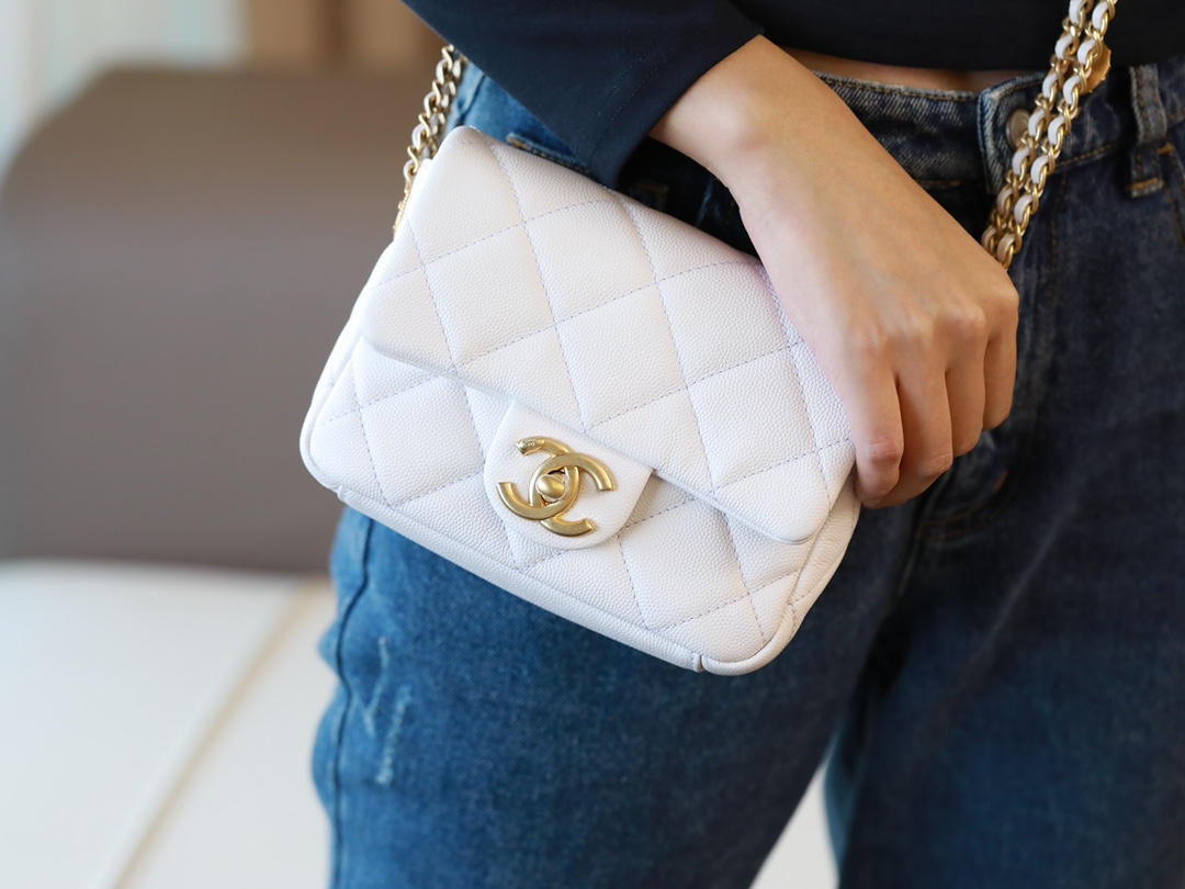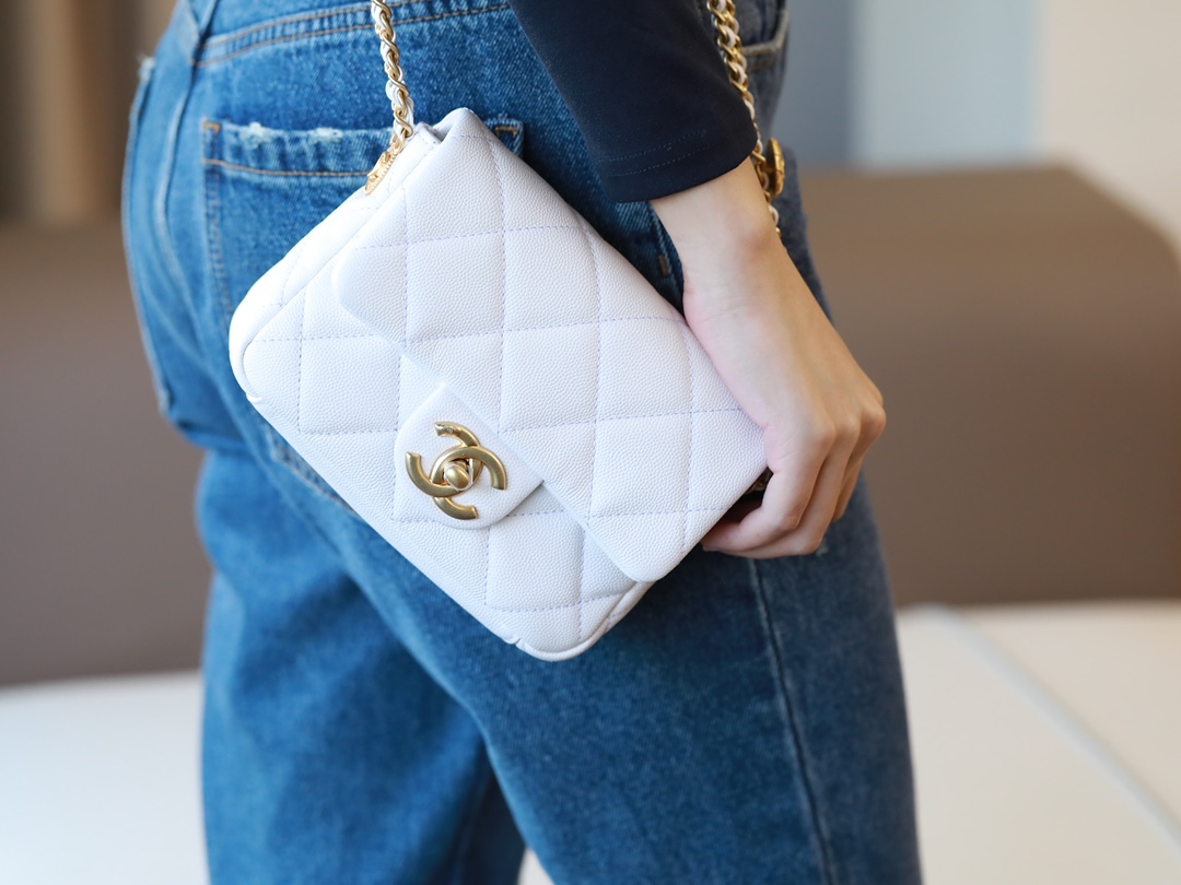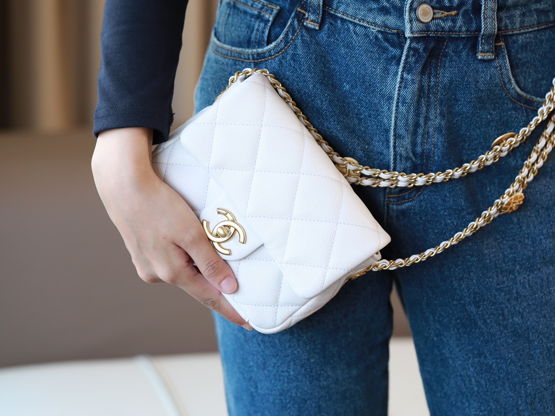 • CHANEL Caviar Quilted Mini Chain Soul Flap White