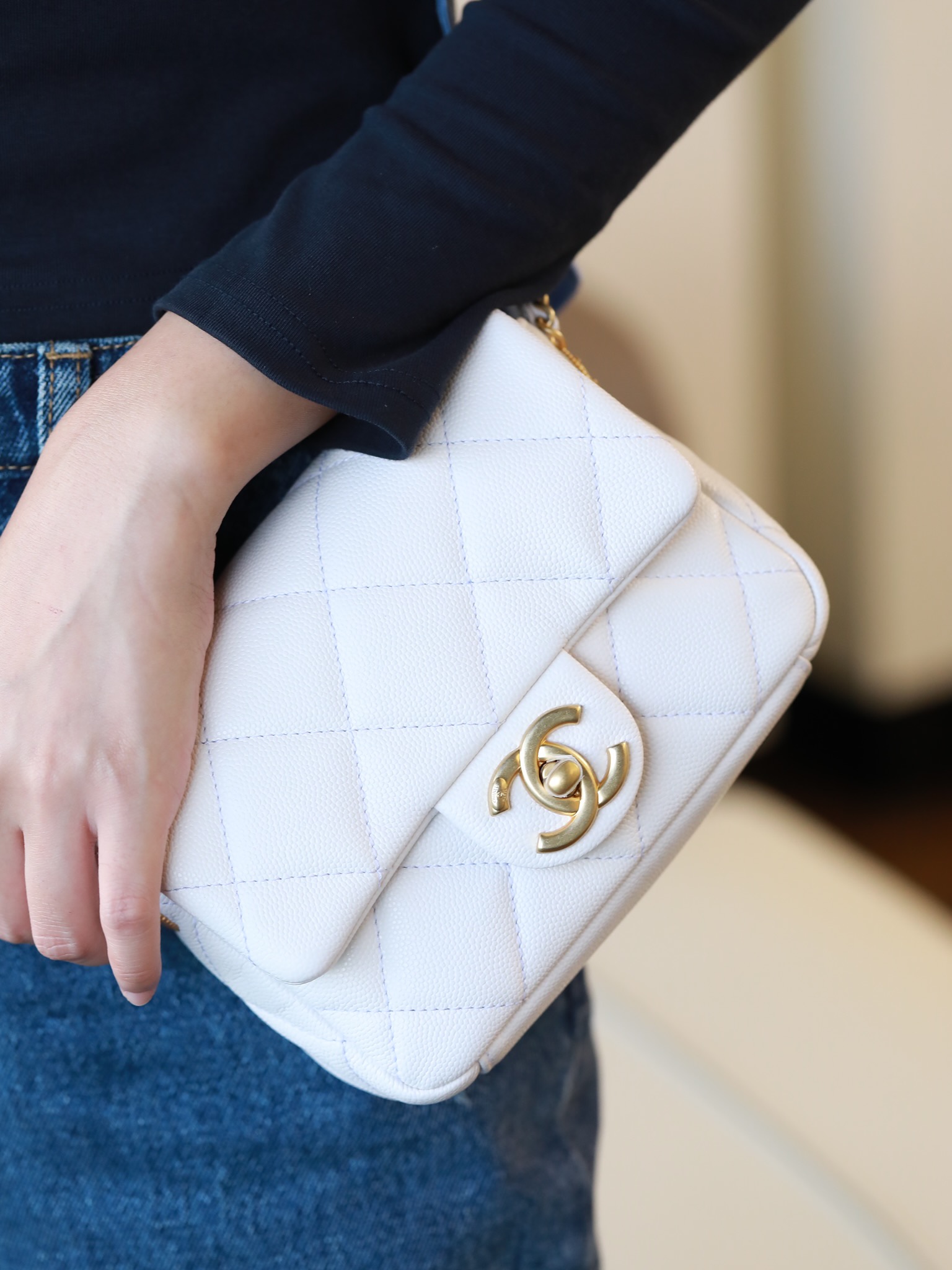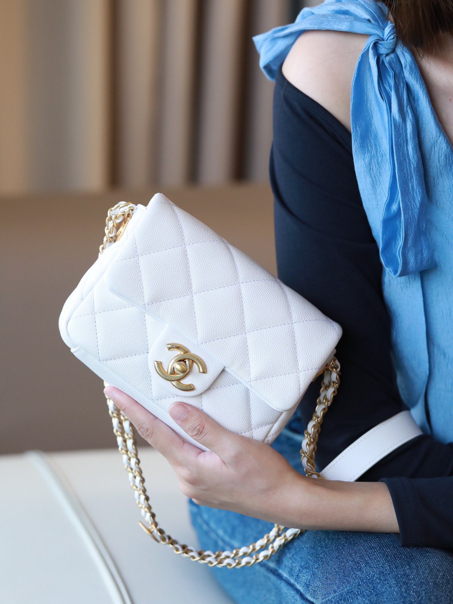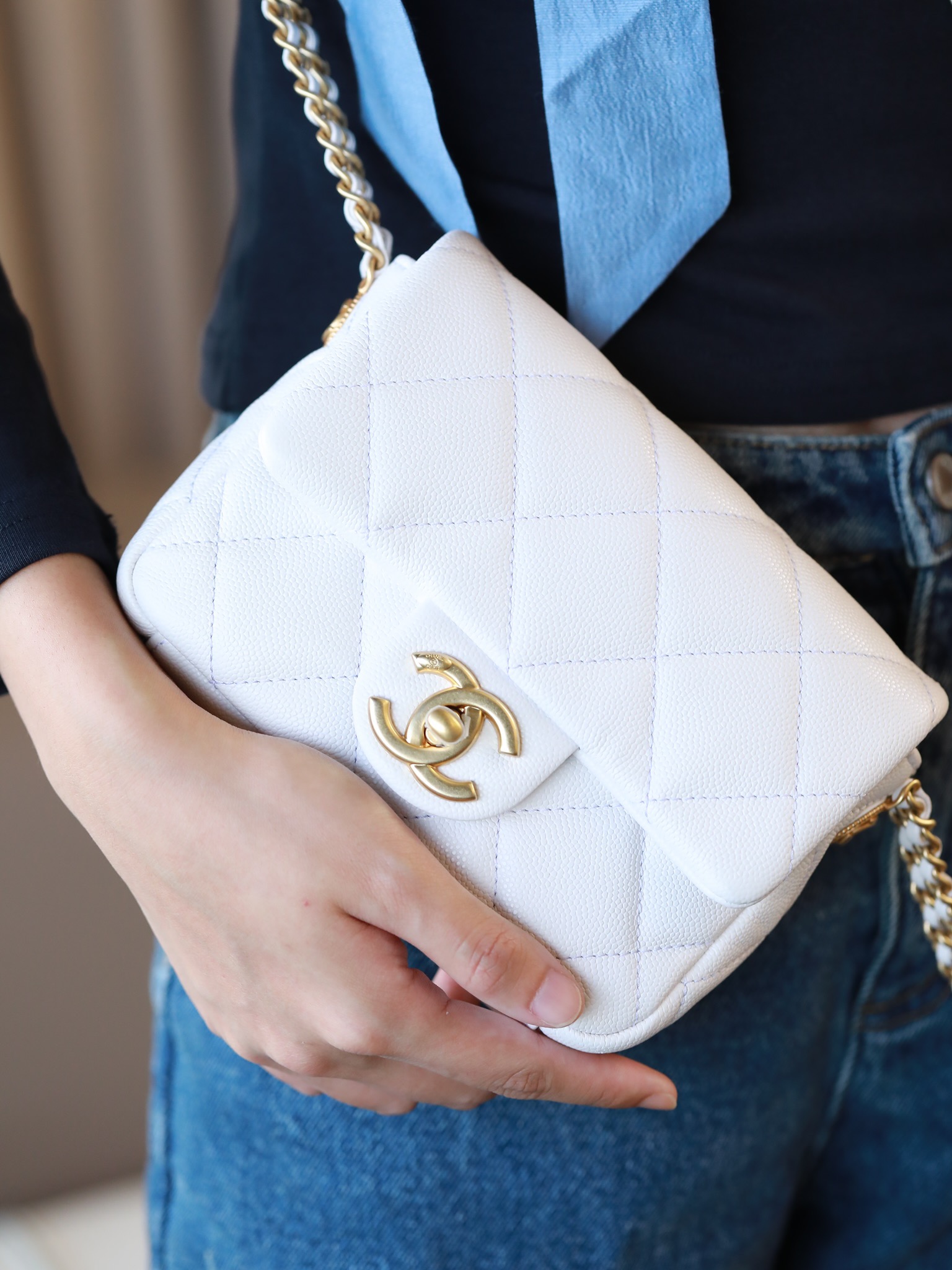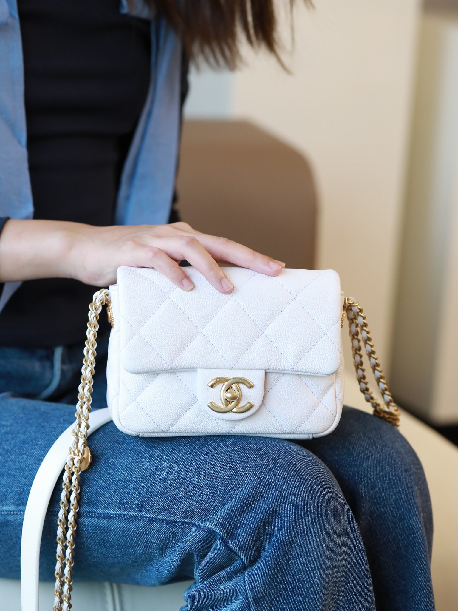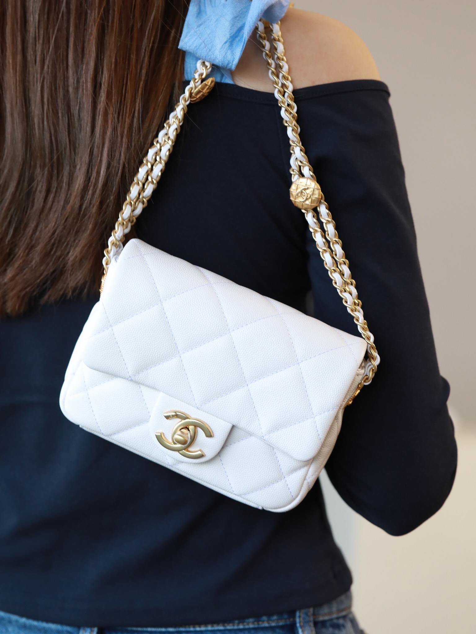 • CHANEL Caviar Quilted Mini Chain Soul Flap White