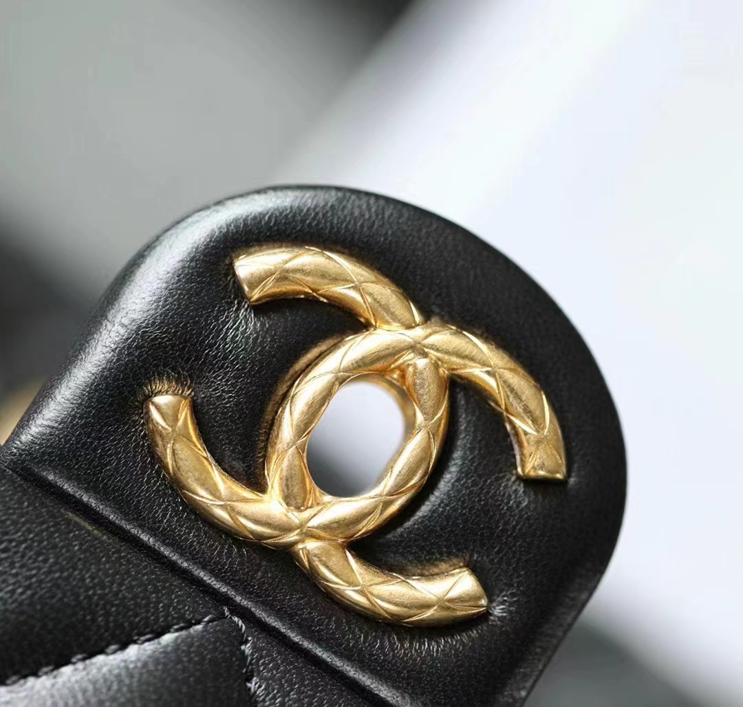 • Chanel Classic Handbag Cloudy Pearly Goatskin & Gold-Tone Metal Light black 22CM