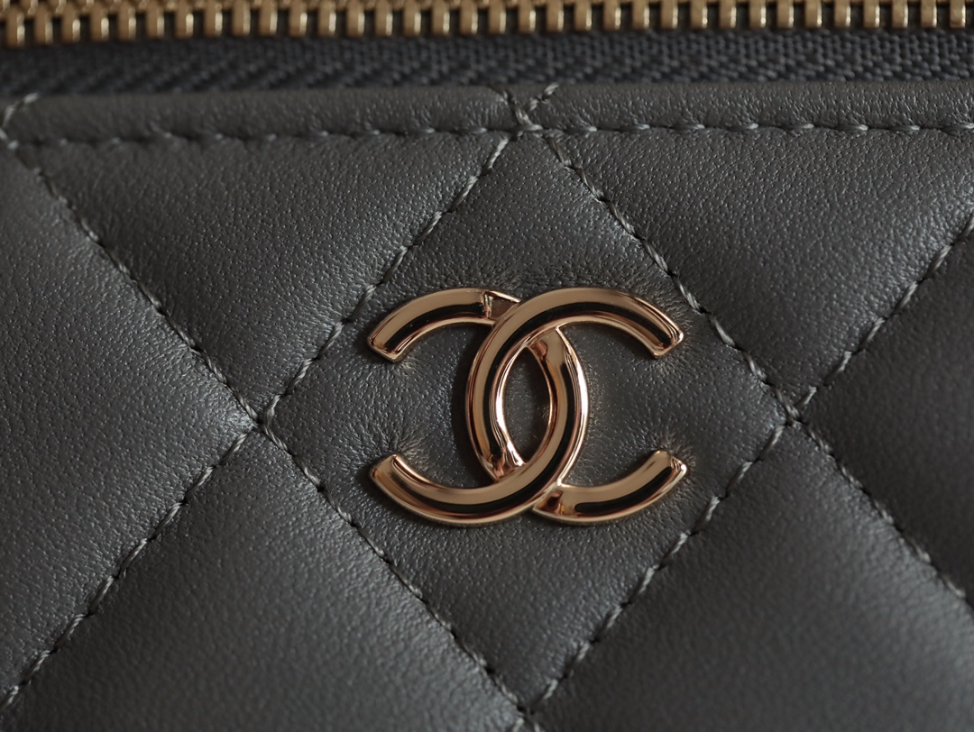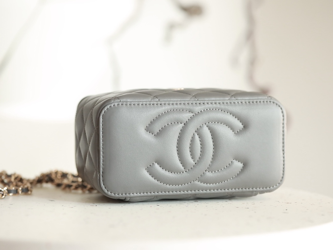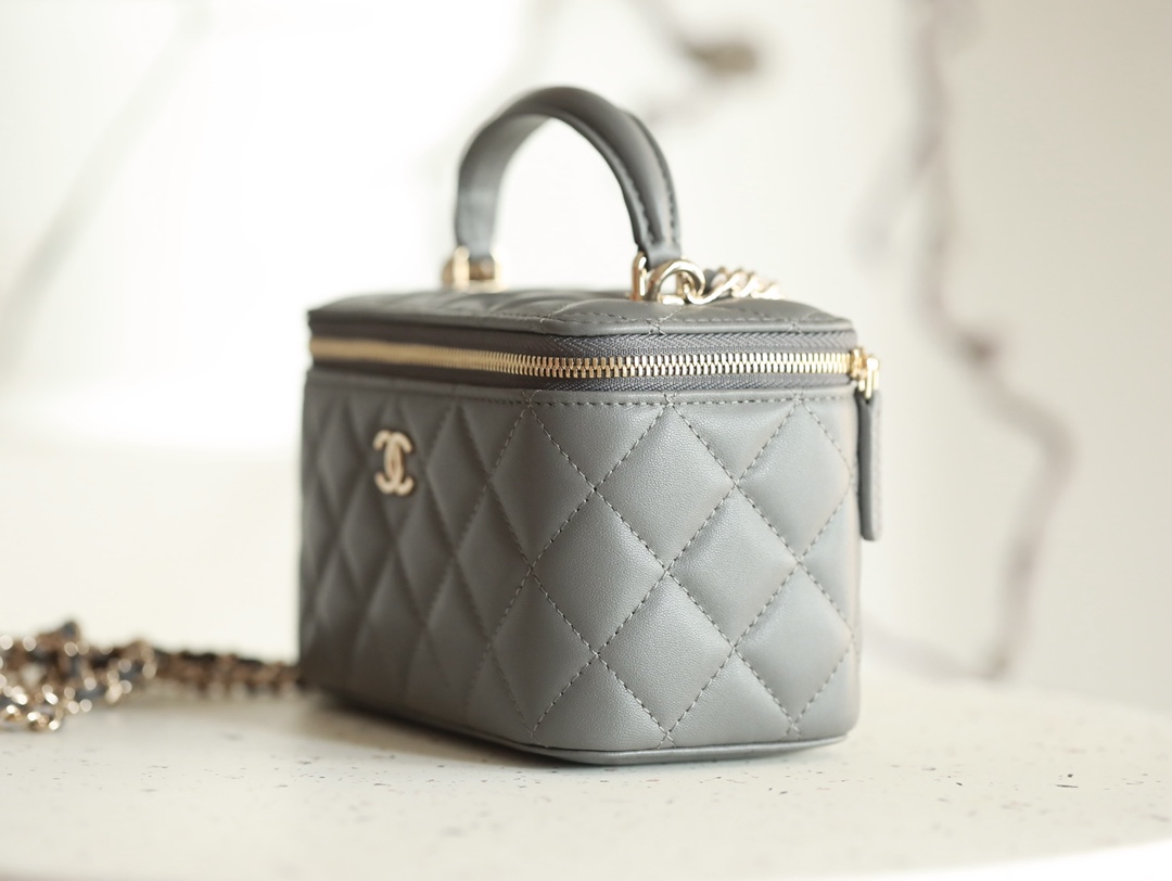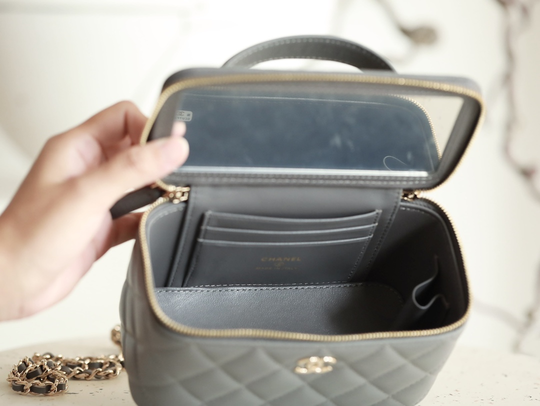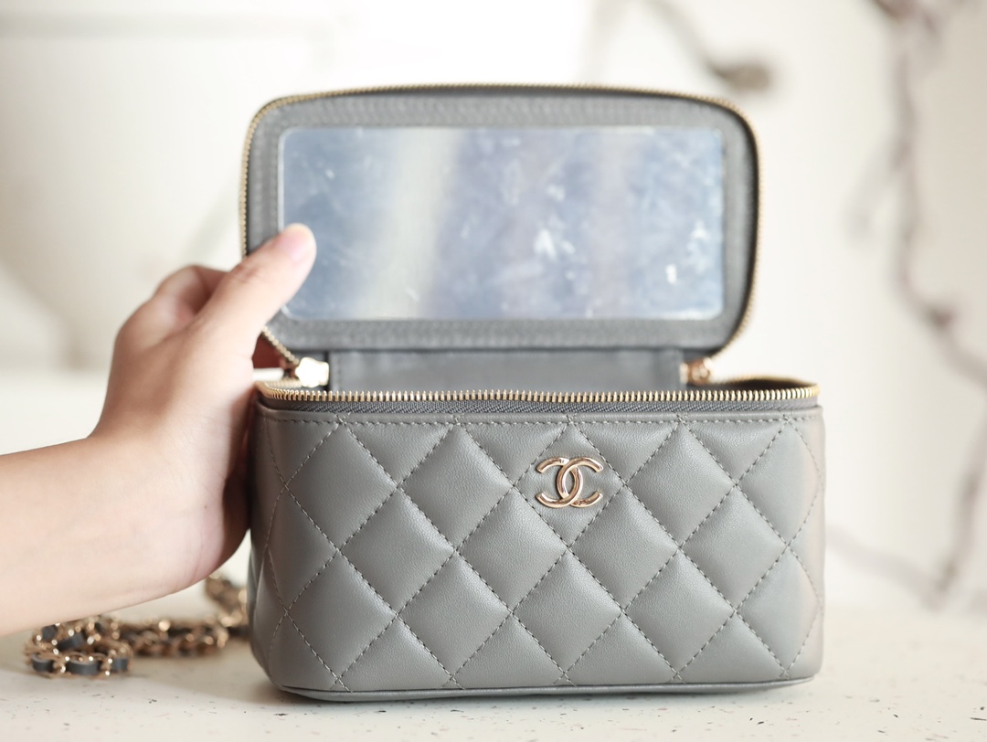 CHANEL Classic long box Vanity Case beige gray Lambskin Gold Hardware