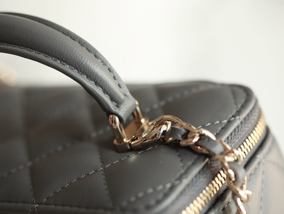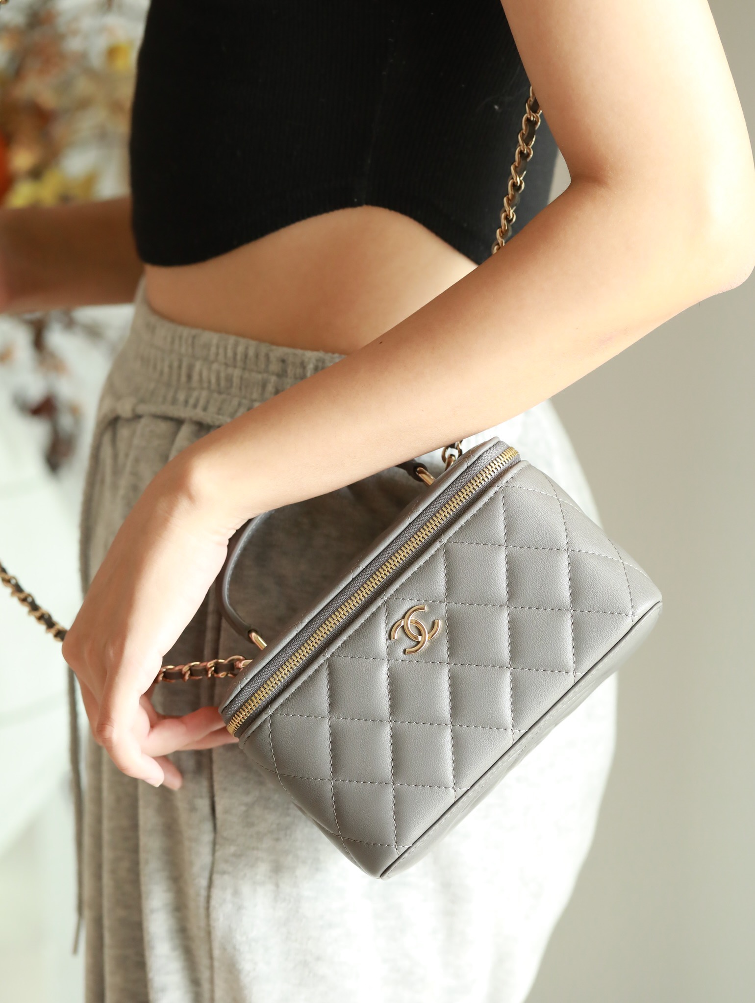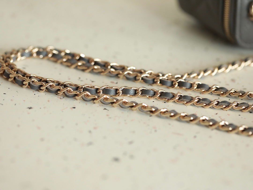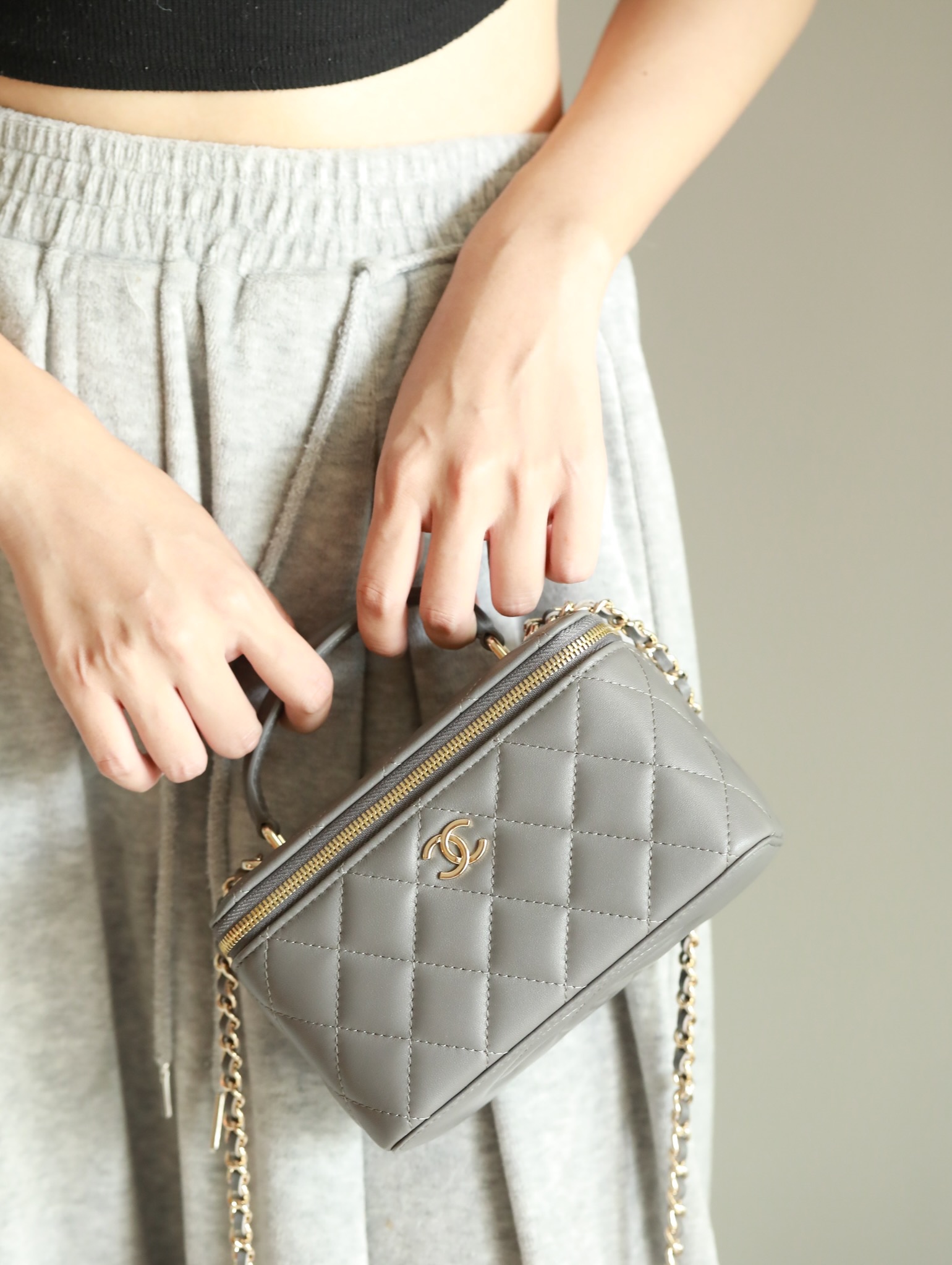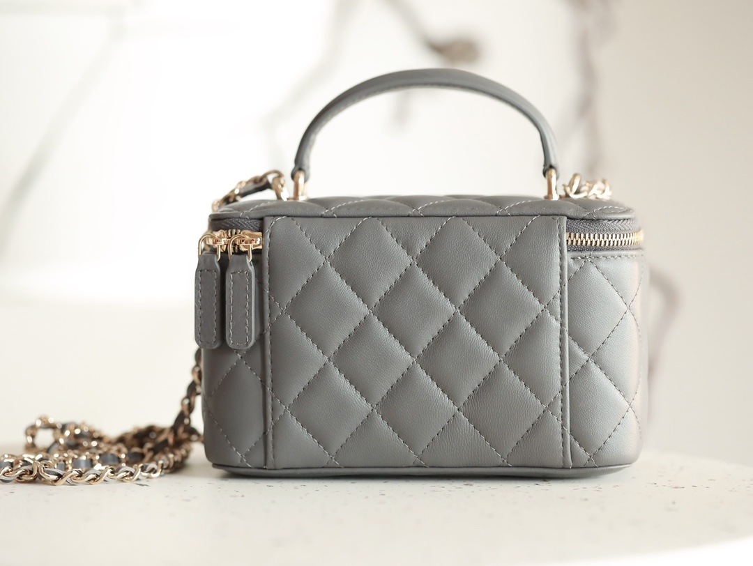 CHANEL Classic long box Vanity Case beige gray Lambskin Gold Hardware