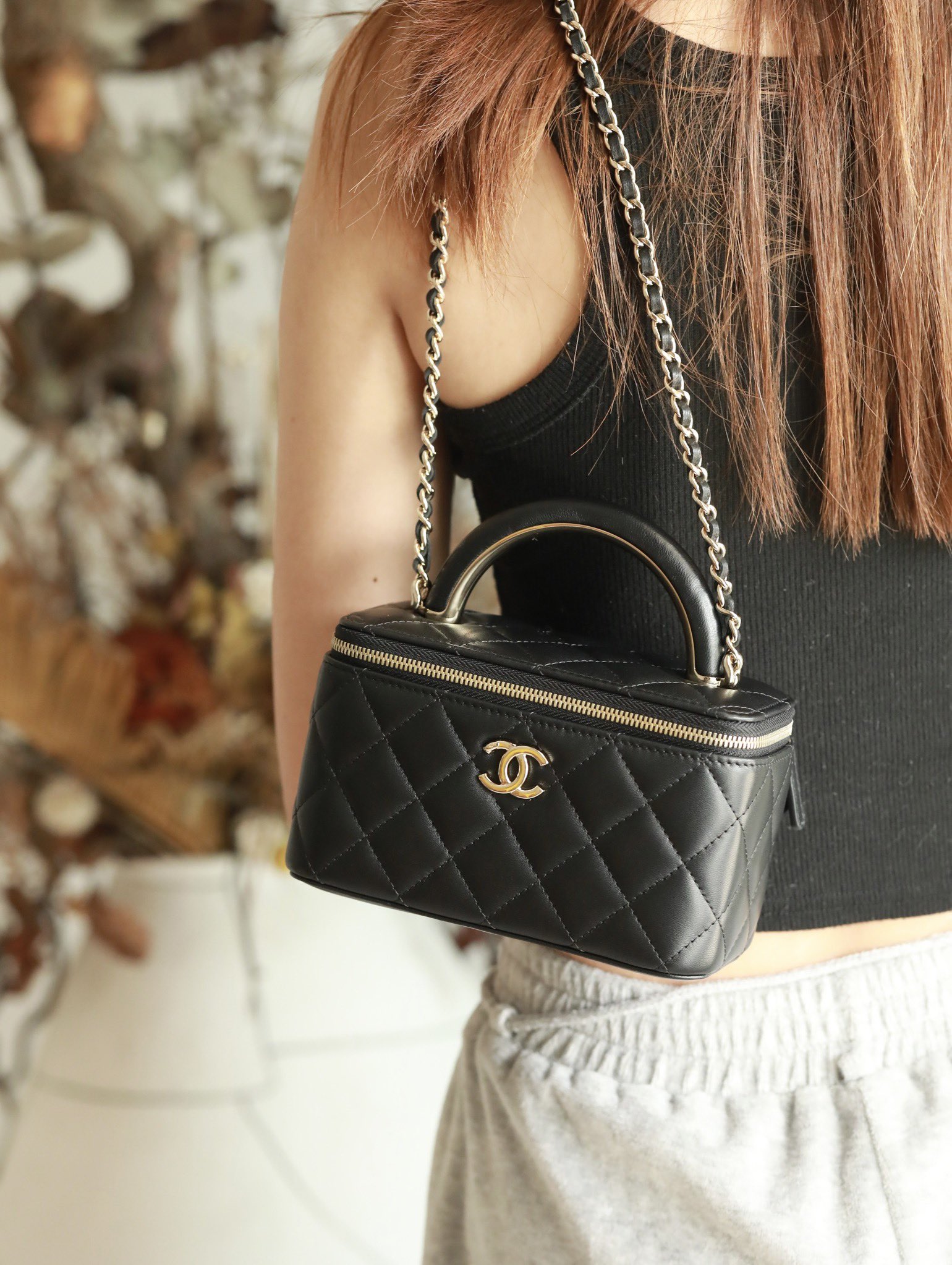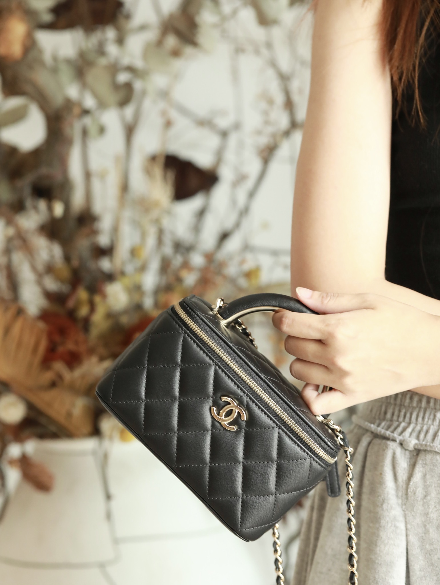 CHANEL Classic long box Vanity Case black Lambskin Gold Hardware