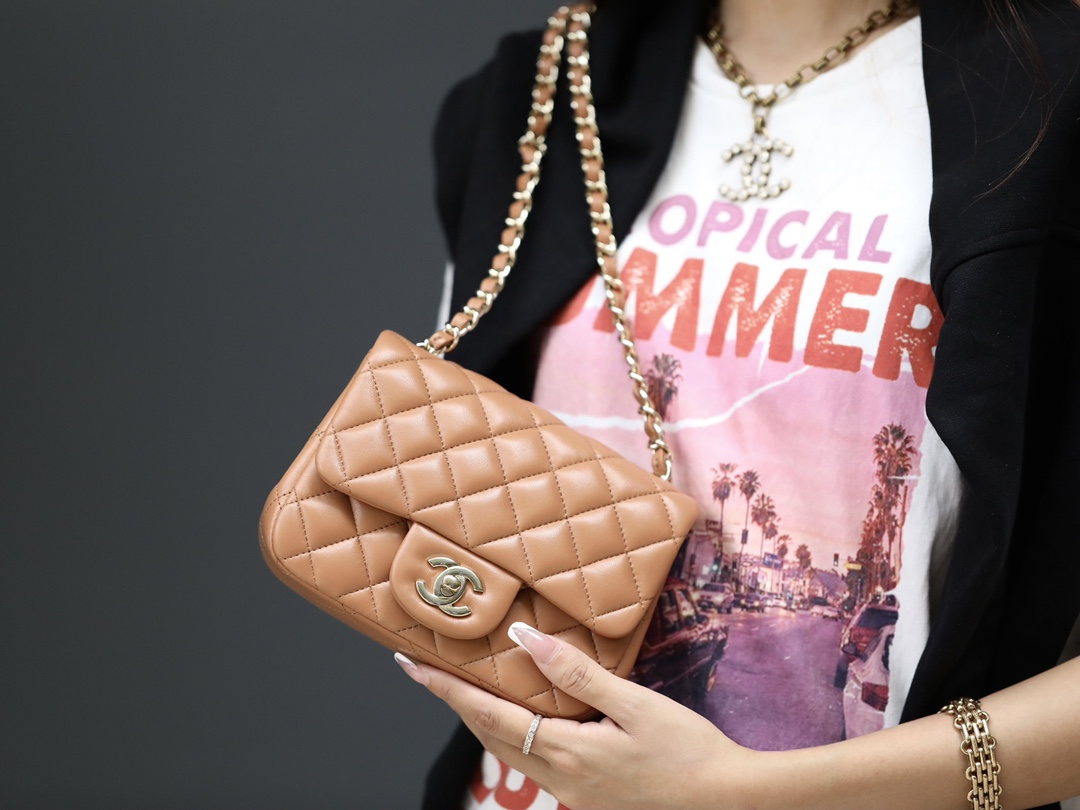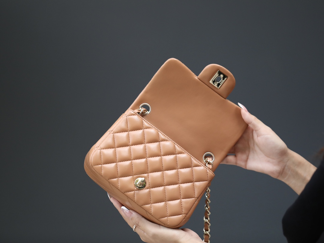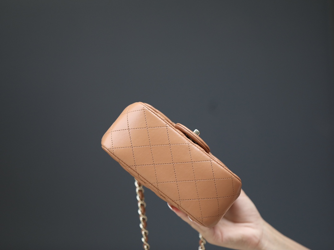 CHANEL Classic Mini Square, Caramel Lambskin with Gold Hardware