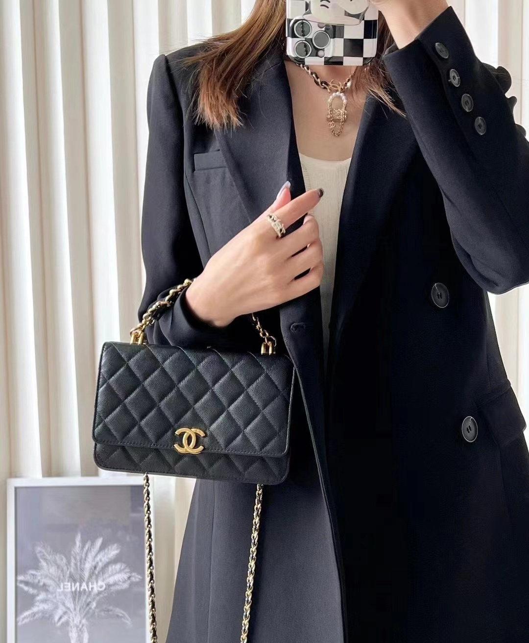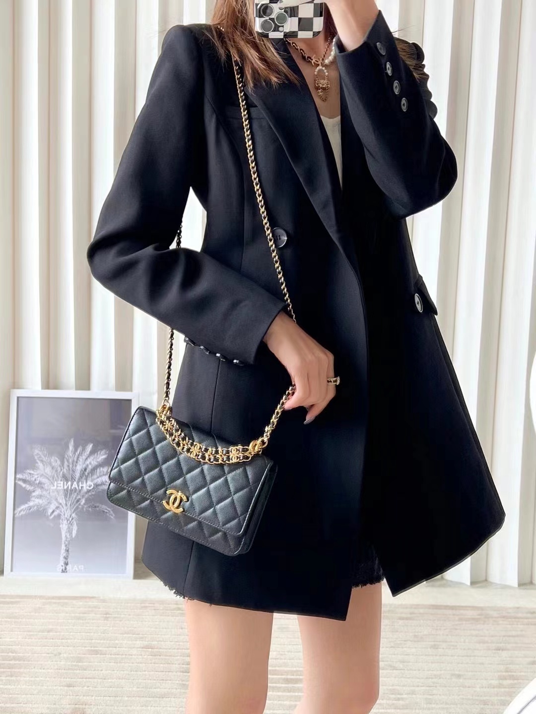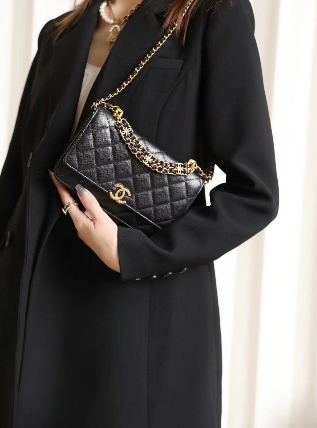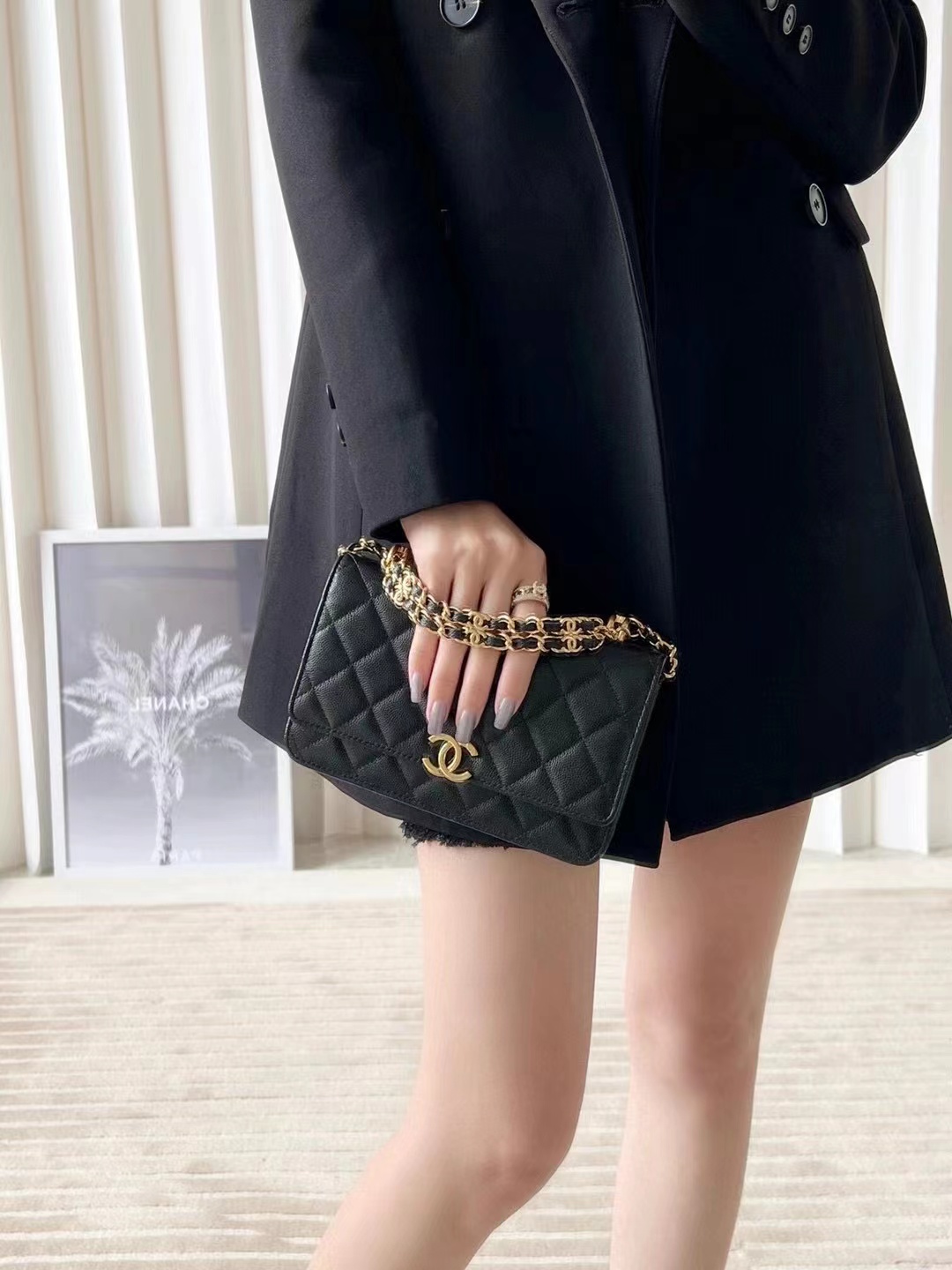 • CHANEL Classic Wallet on Chain Grained Shiny Calfskin & Gold-Tone Metal black