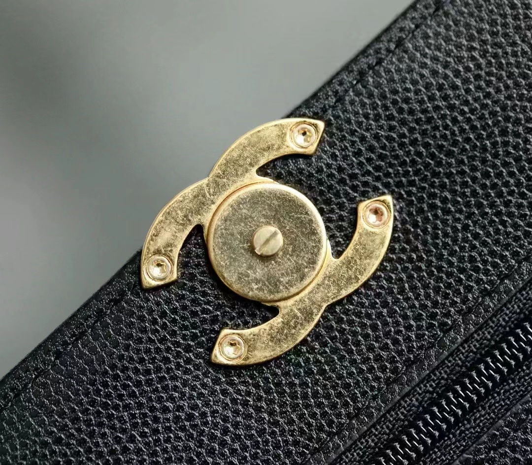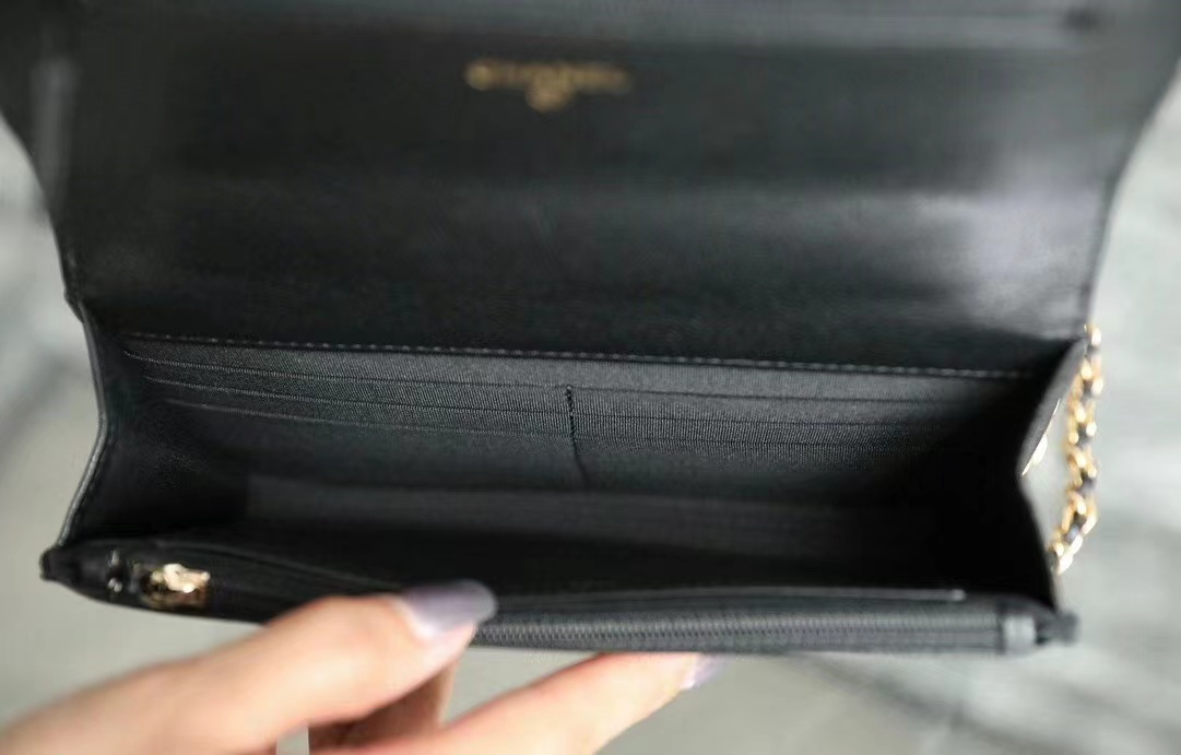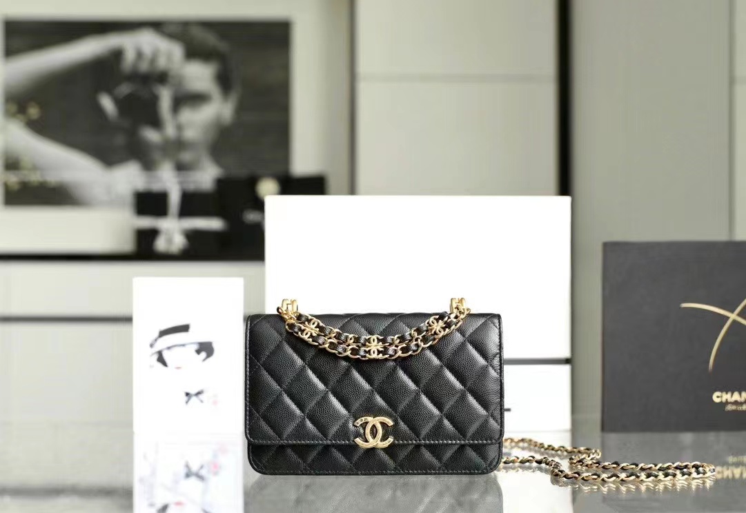 CHANEL Classic Wallet on Chain Grained Shiny Calfskin & Gold-Tone Metal black