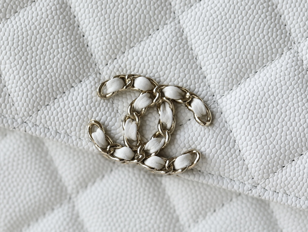 CHANEL Clutch with Chain Grained Shiny Calfskin & Gold-Tone Metal White