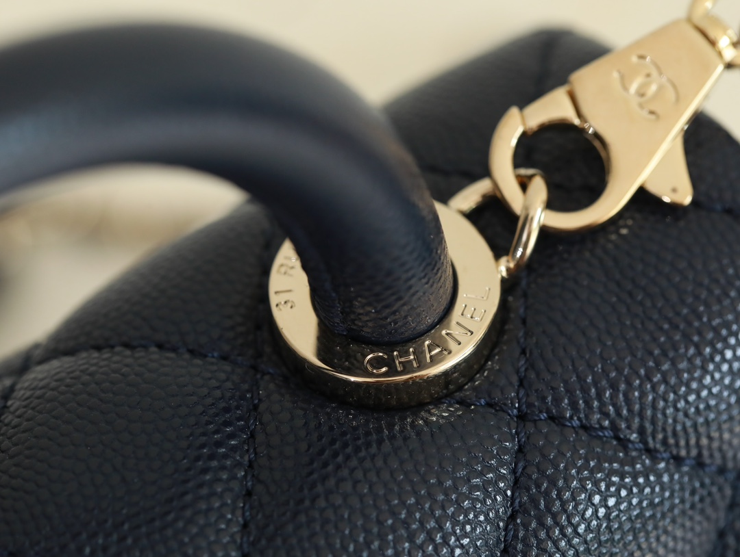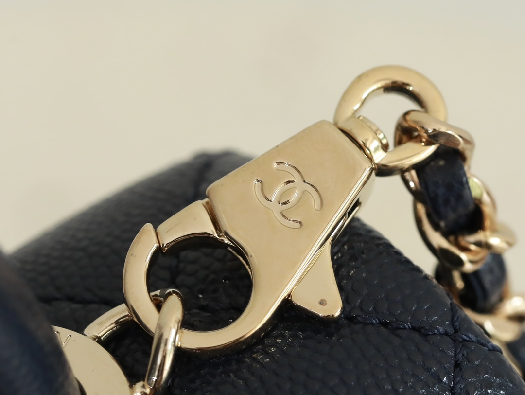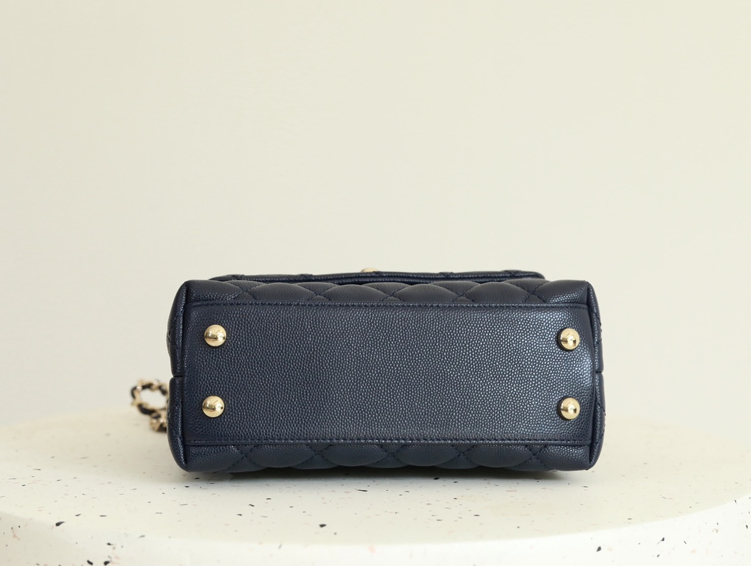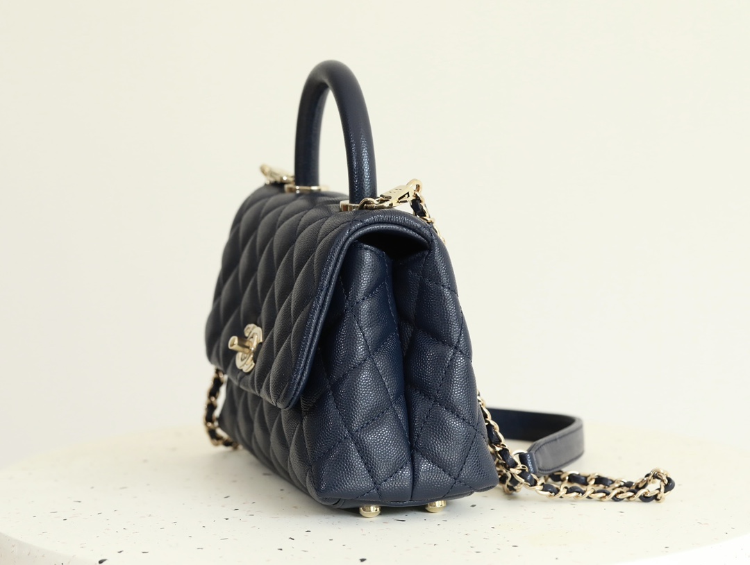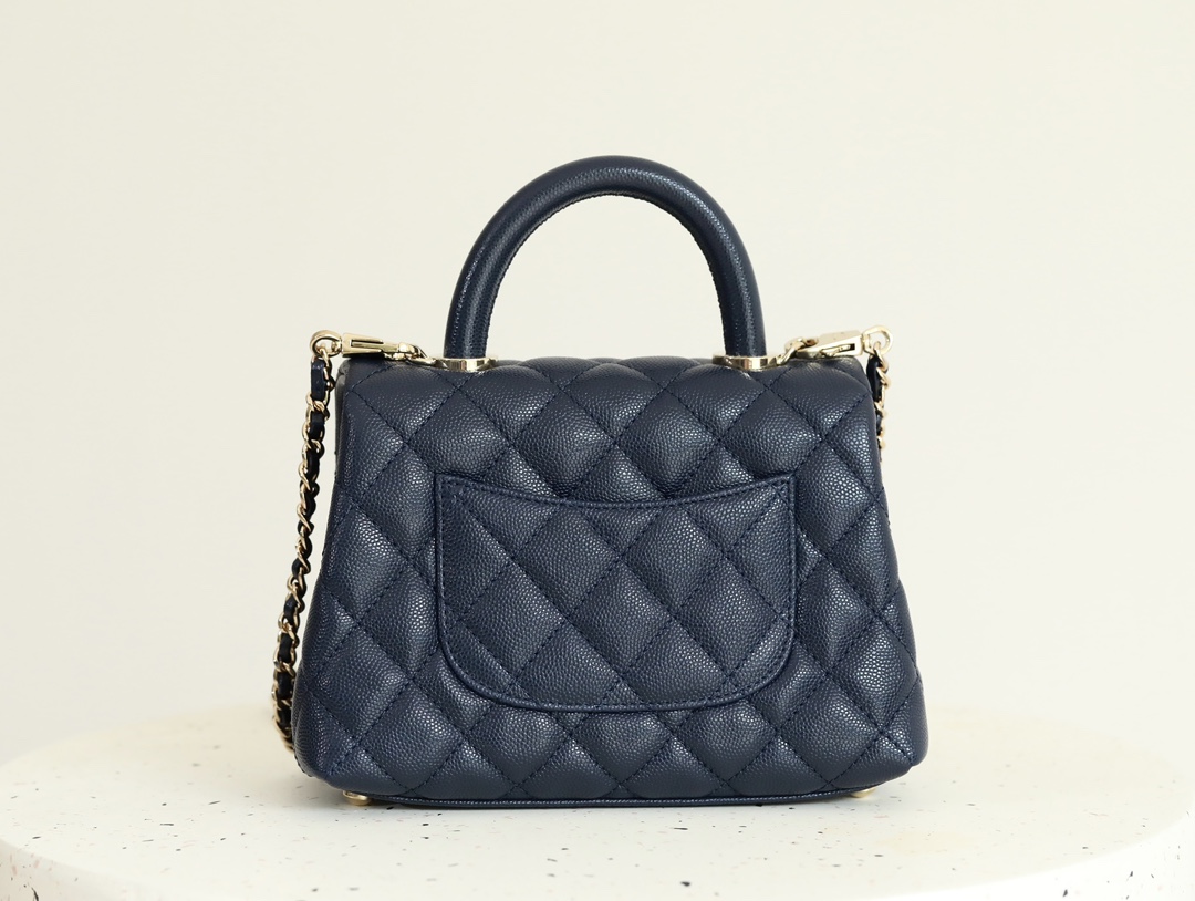 • CHANEL Coco Handle Flap Quilted Caviar Gold-tone Mini blue